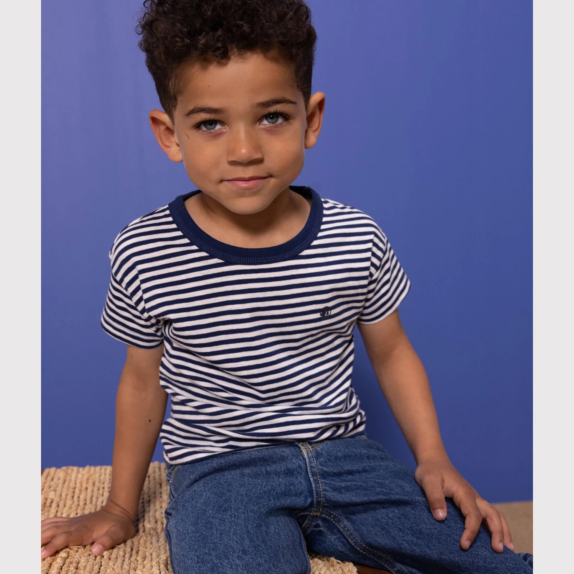 男童藏青色条纹棉T恤