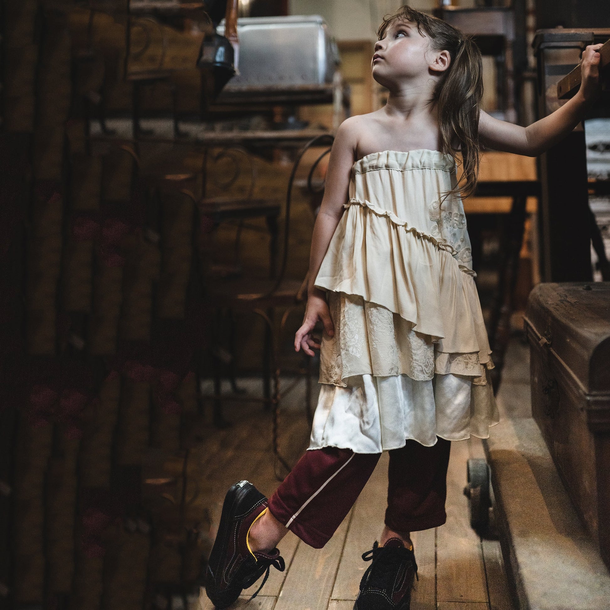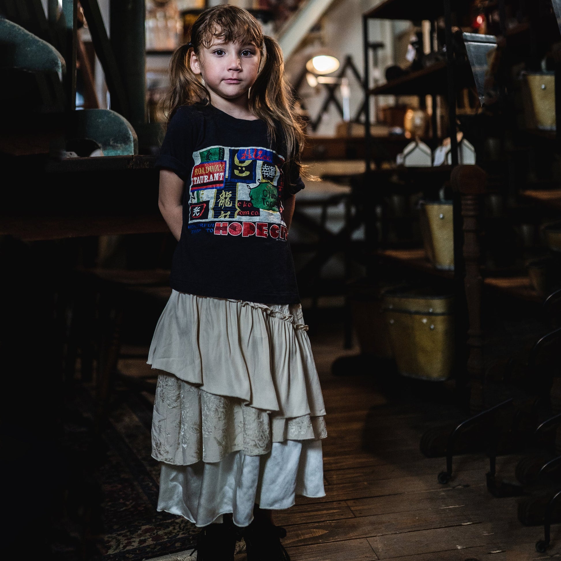女童白色分层荷叶边短裙