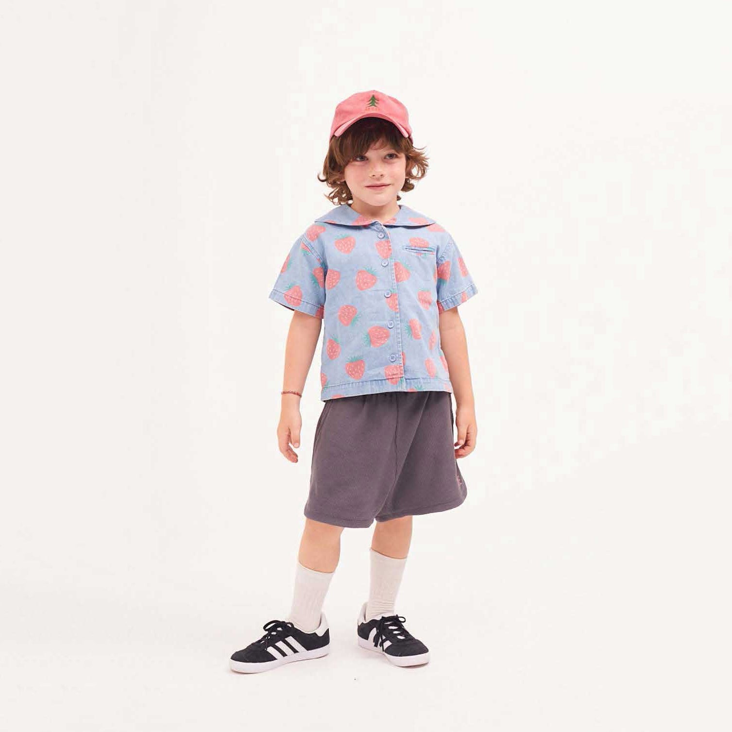 儿童蓝色印花牛仔衬衫