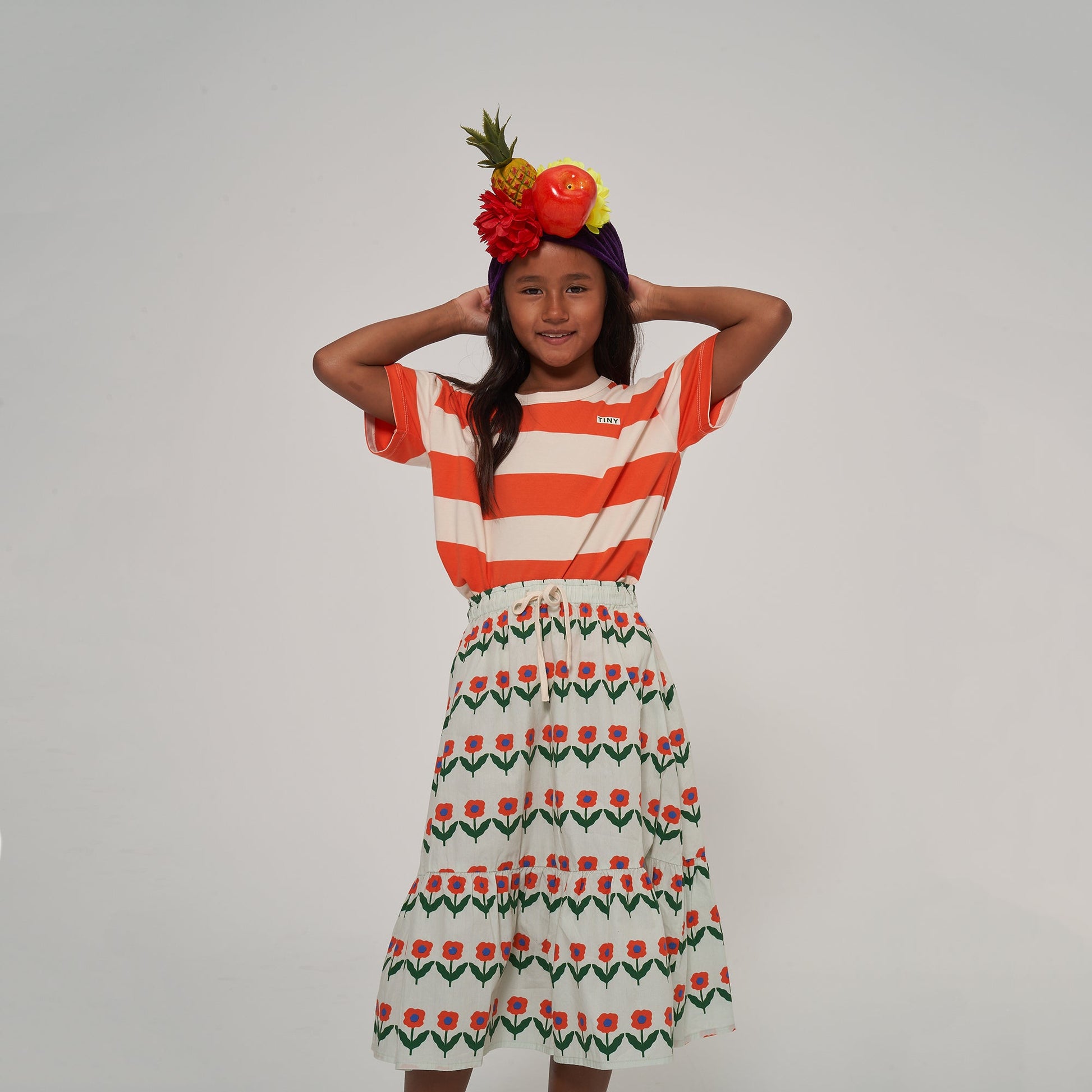 儿童橙色条纹棉T恤