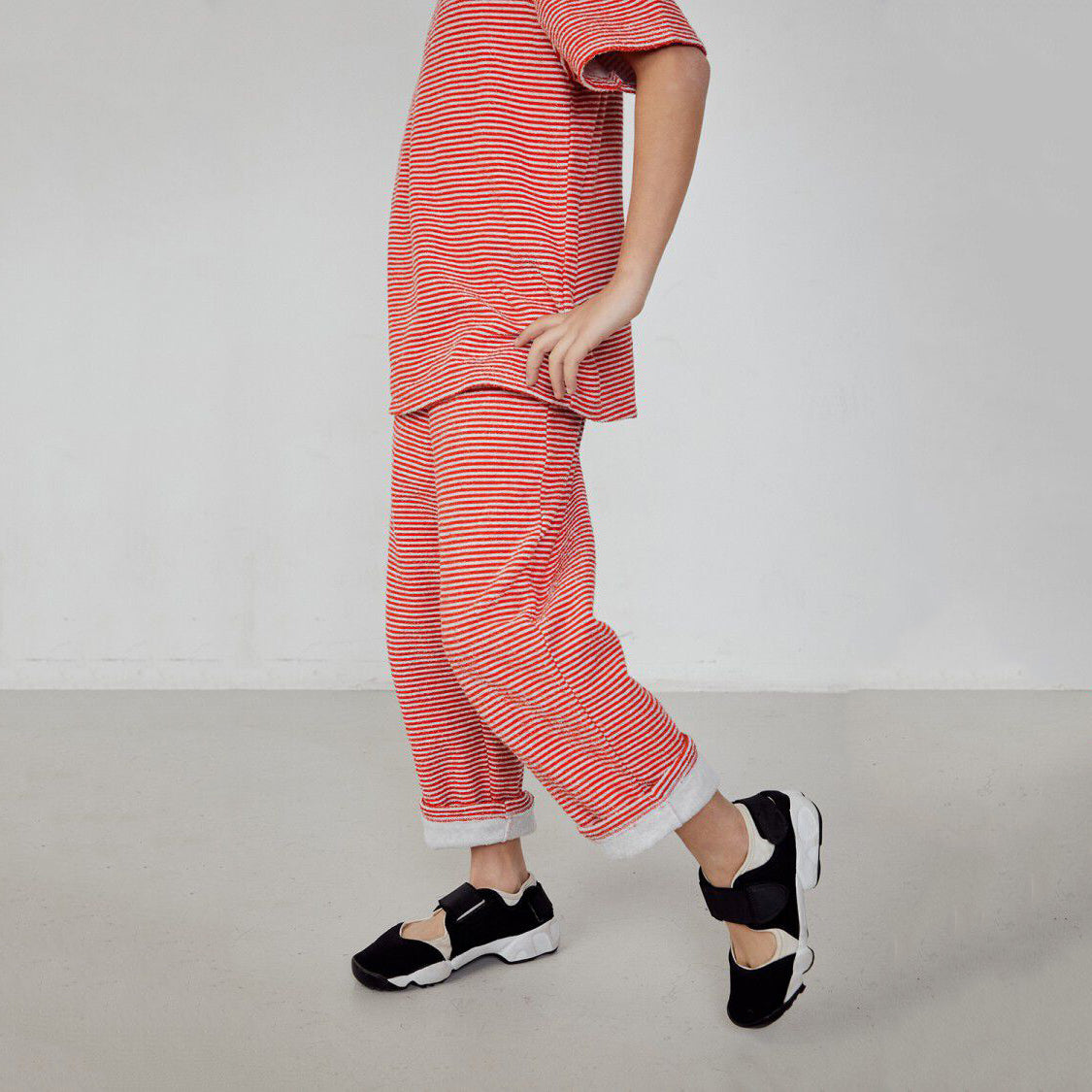 儿童红色条纹棉长裤
