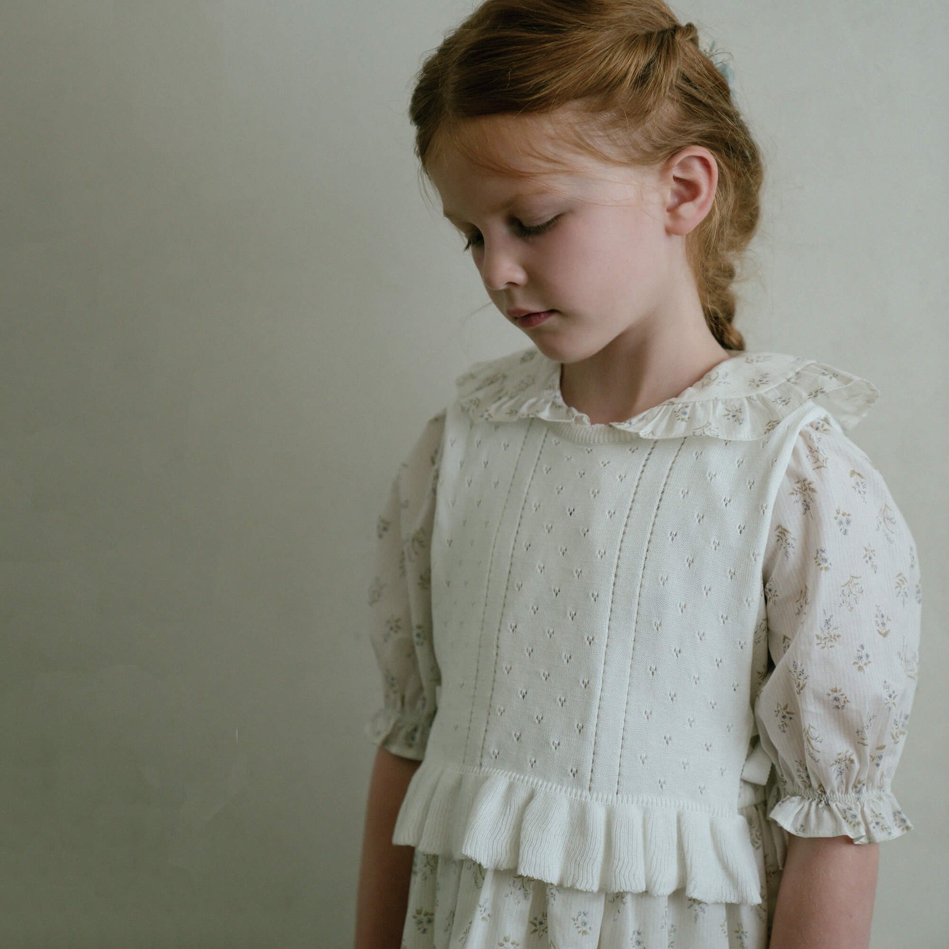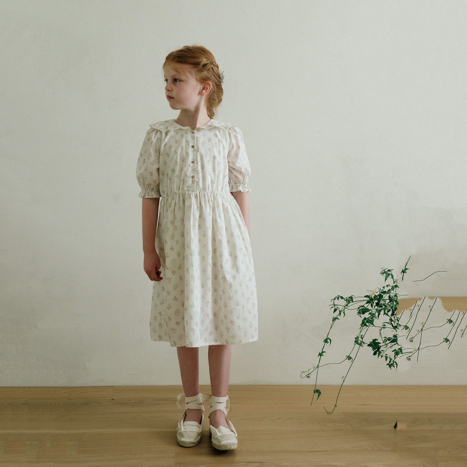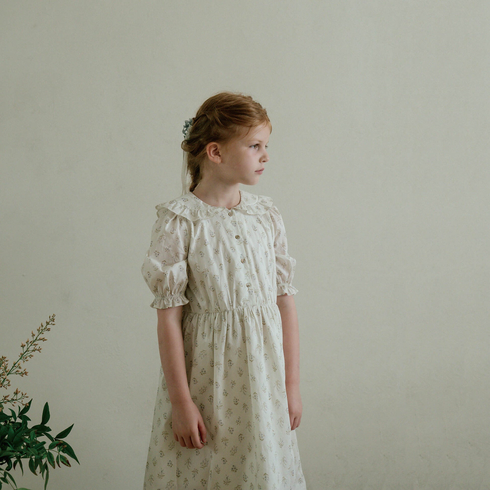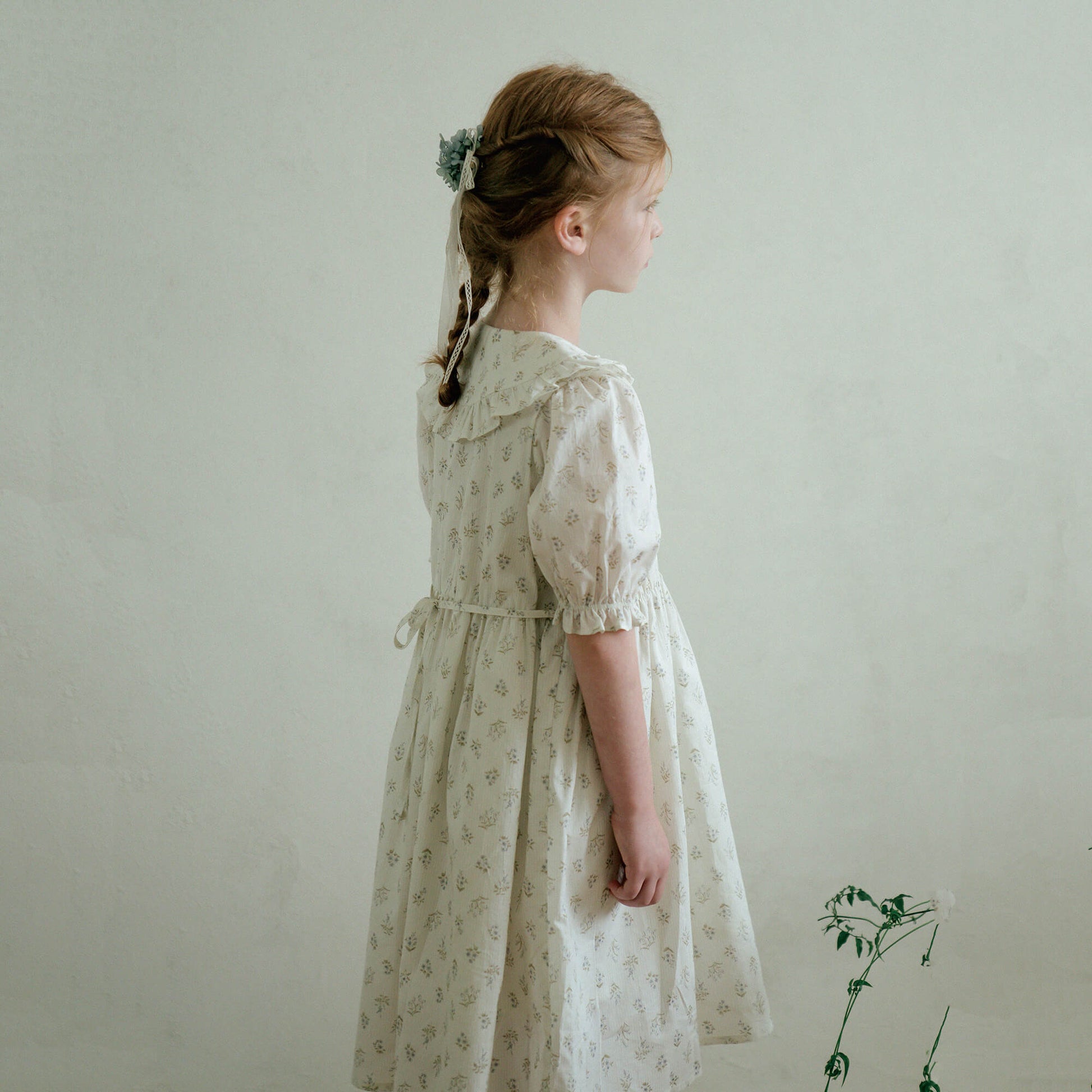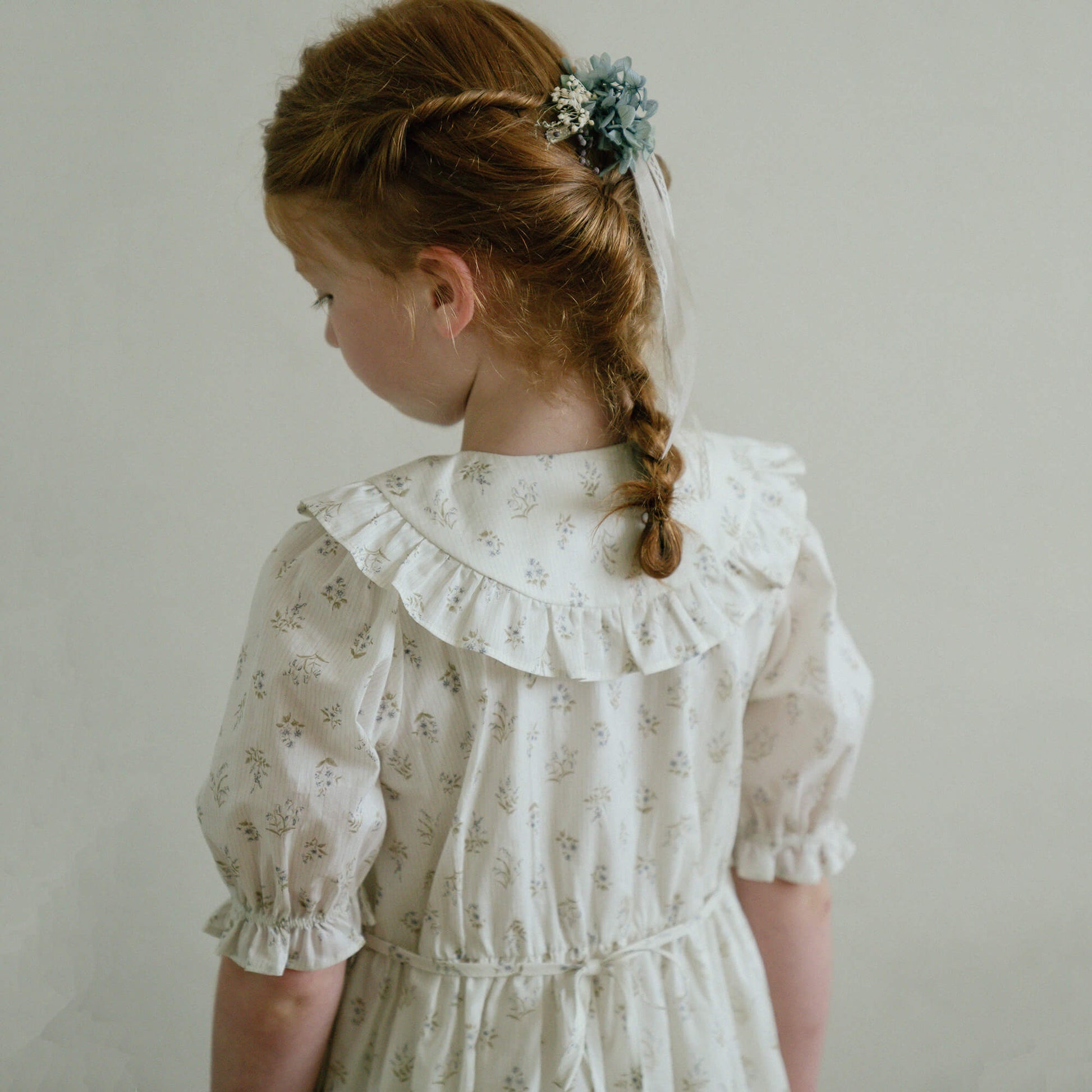 女童蓝色碎花棉连衣裙