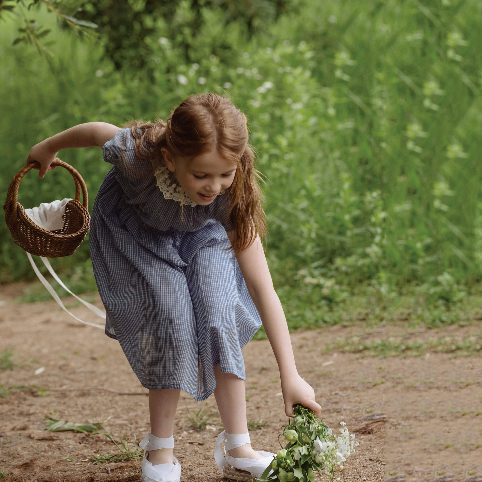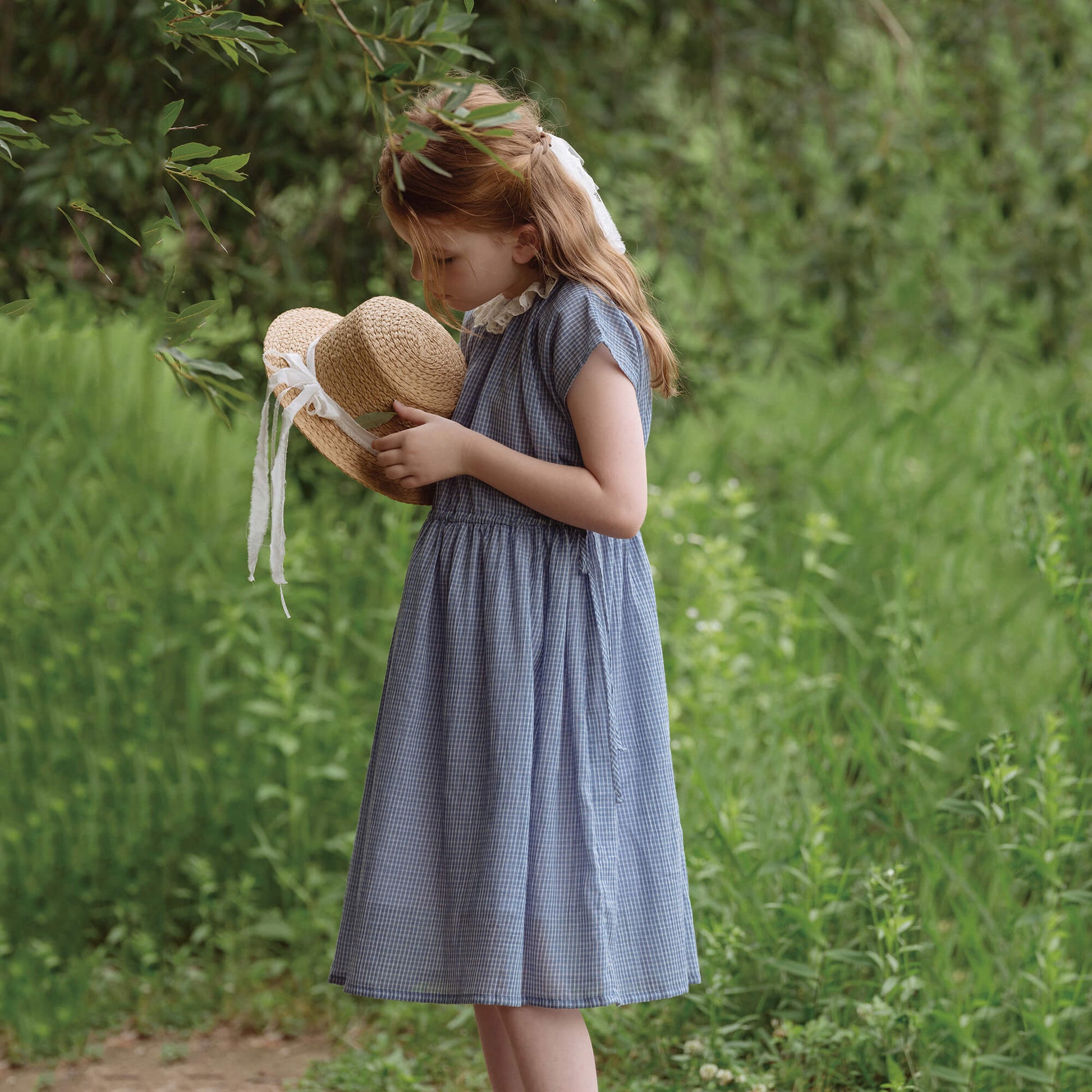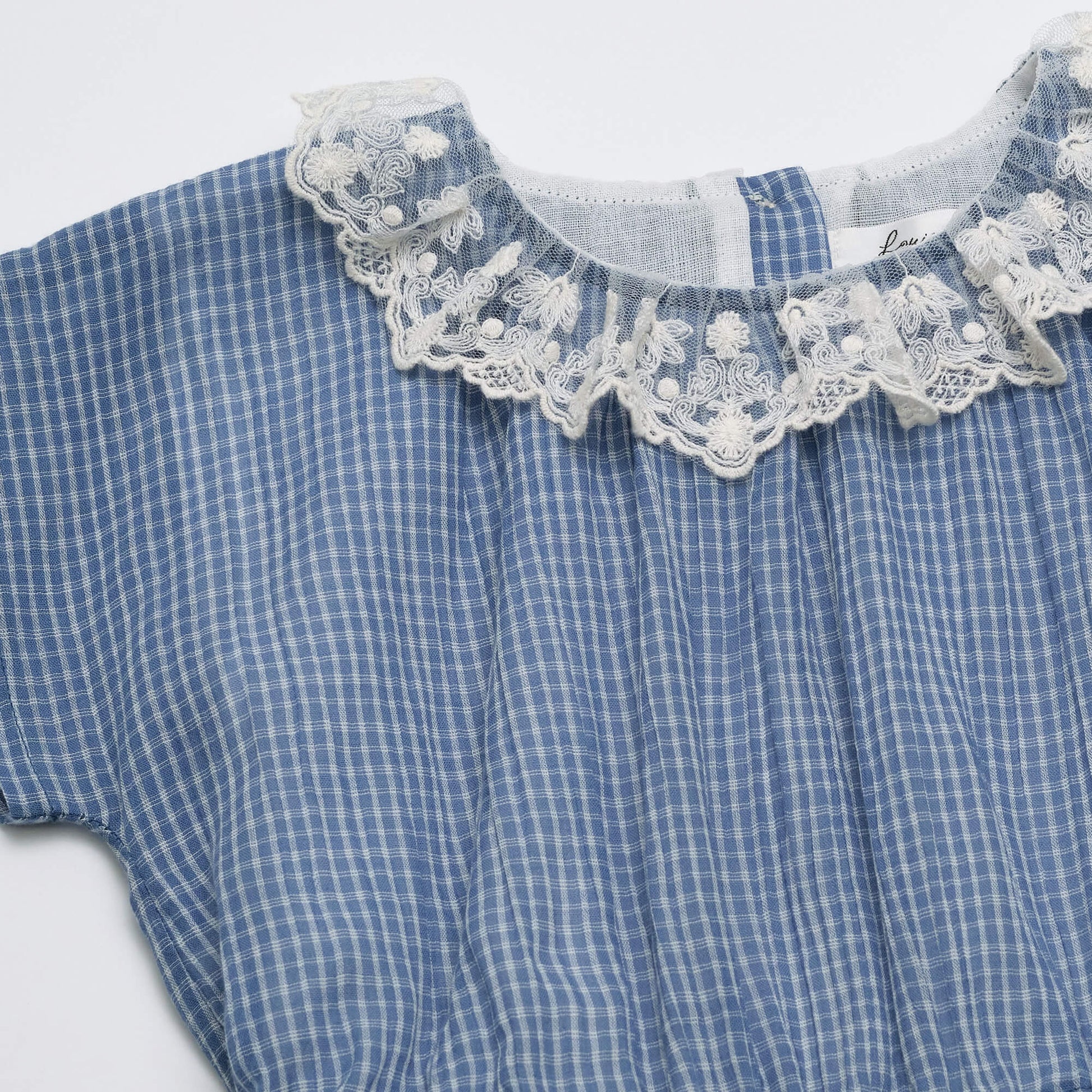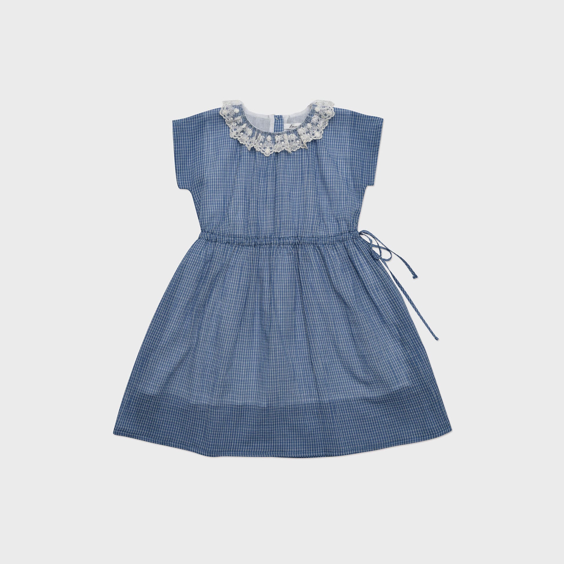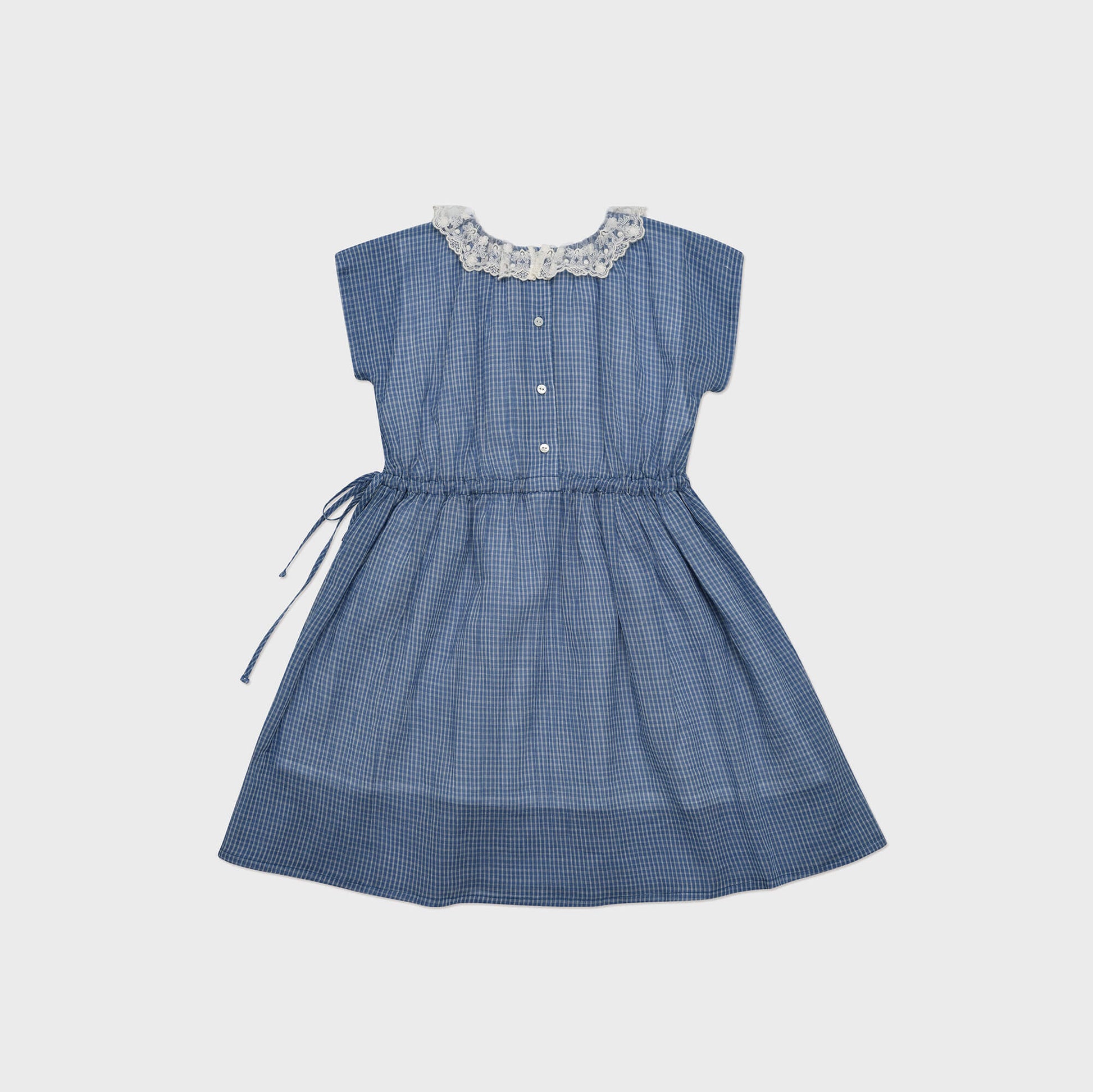 女童蓝色格子棉连衣裙