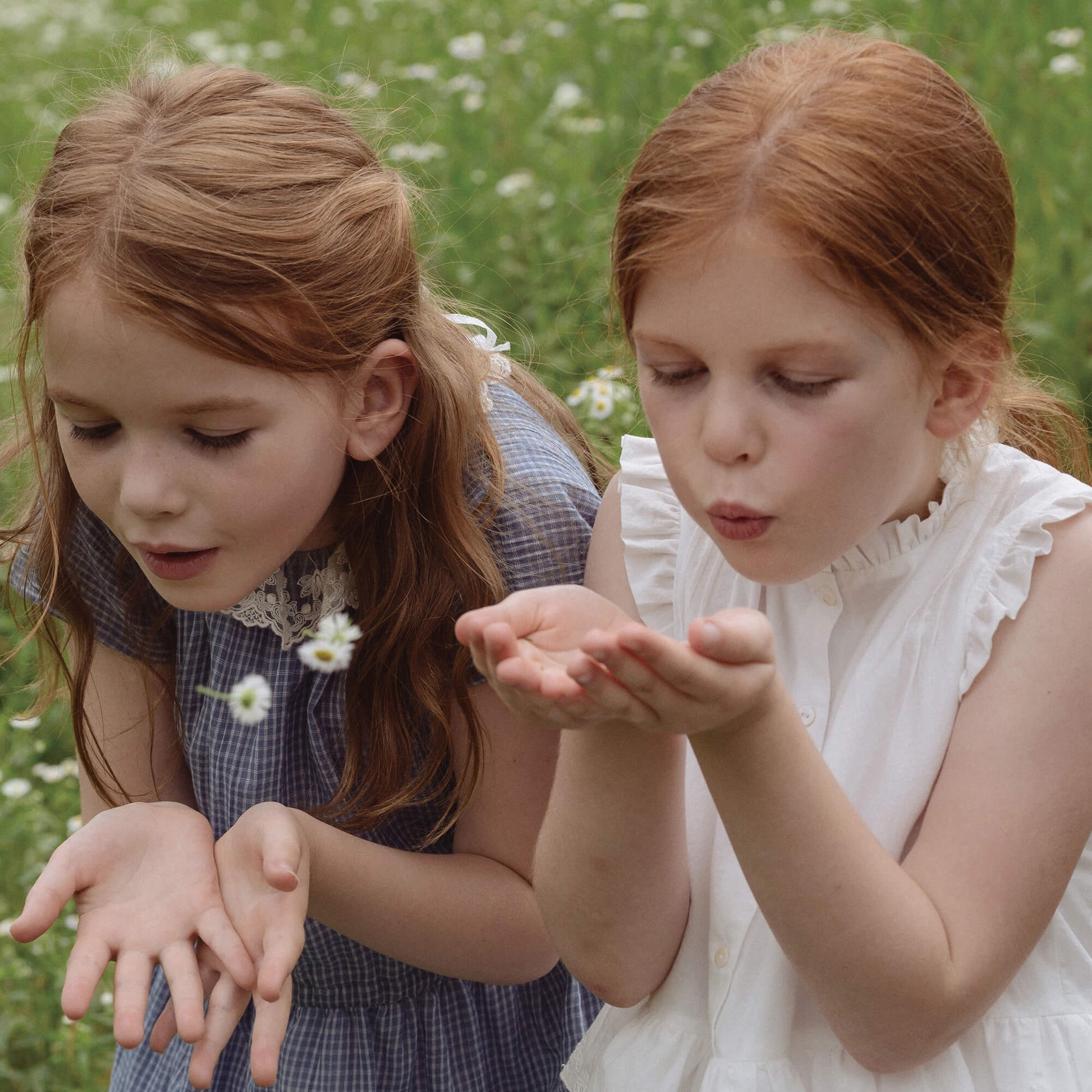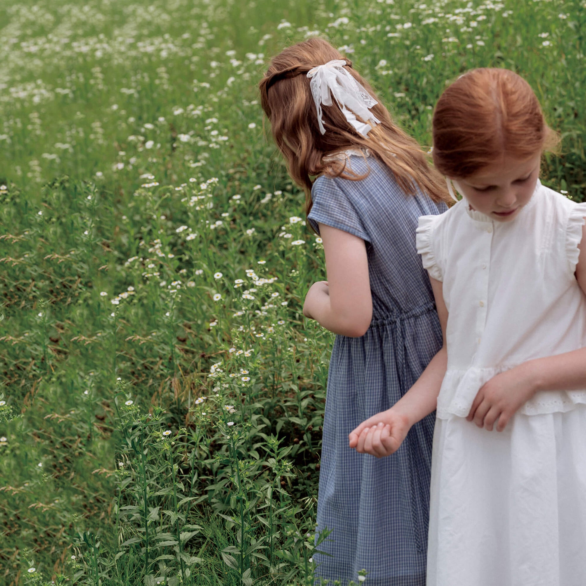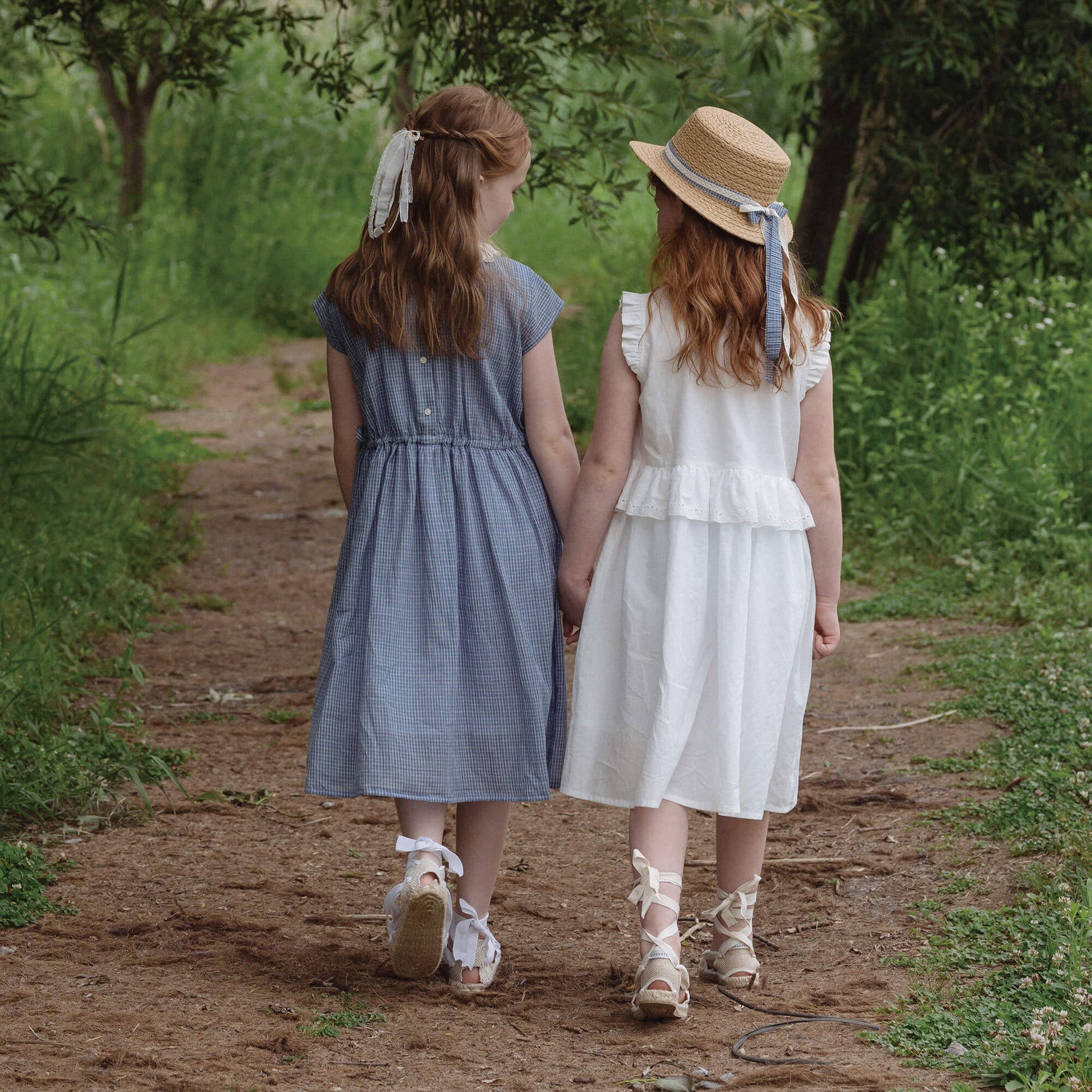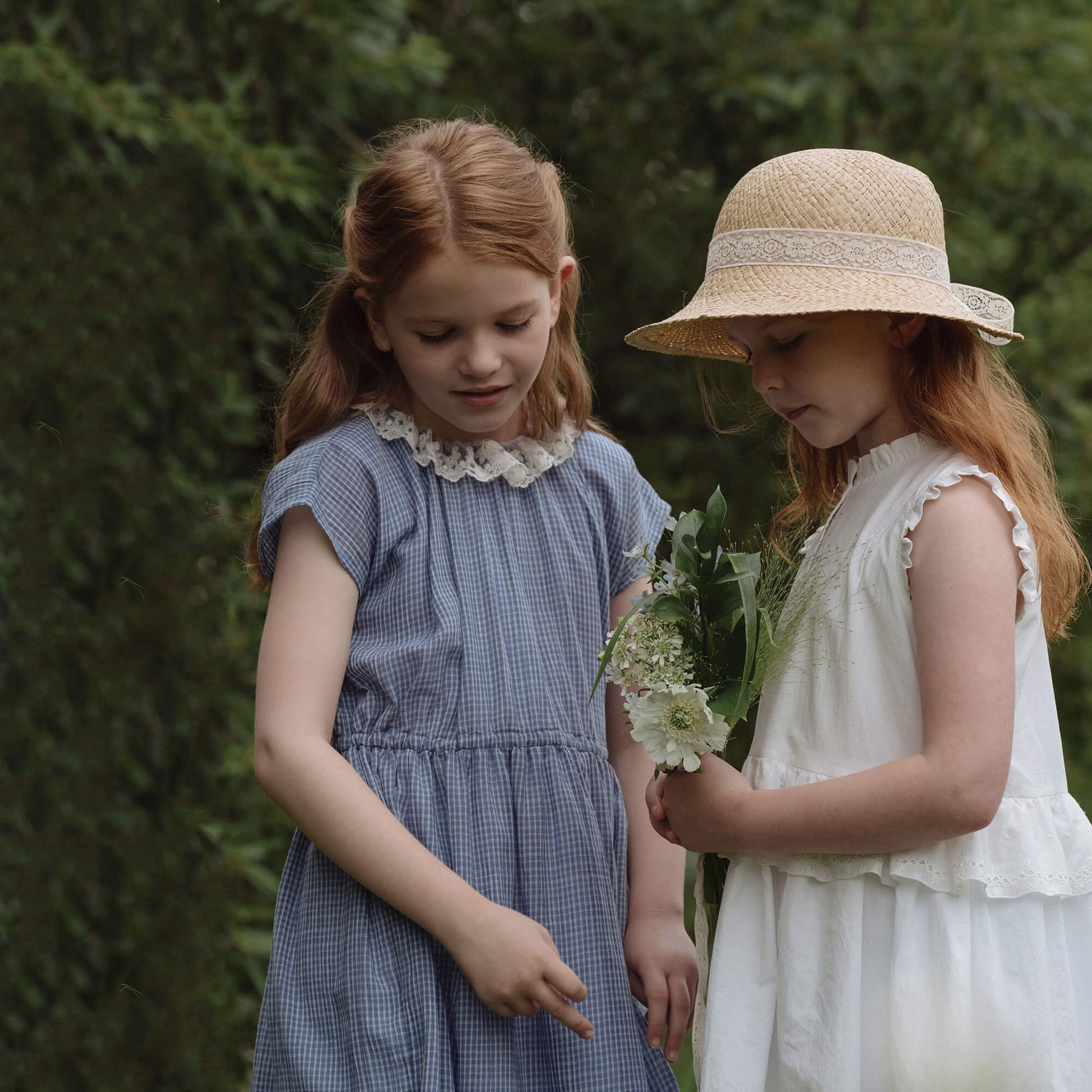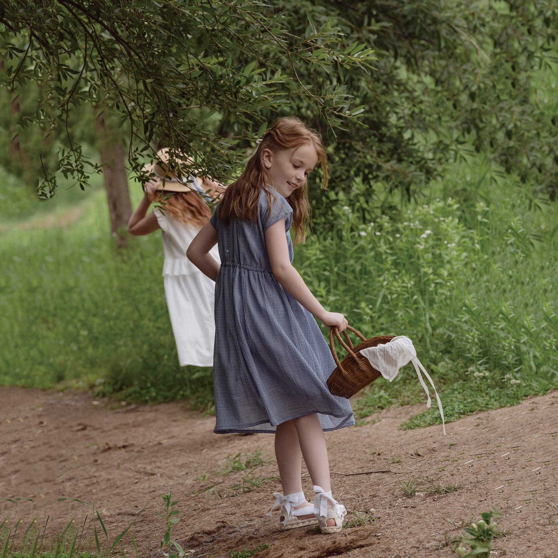 女童蓝色格子棉连衣裙
