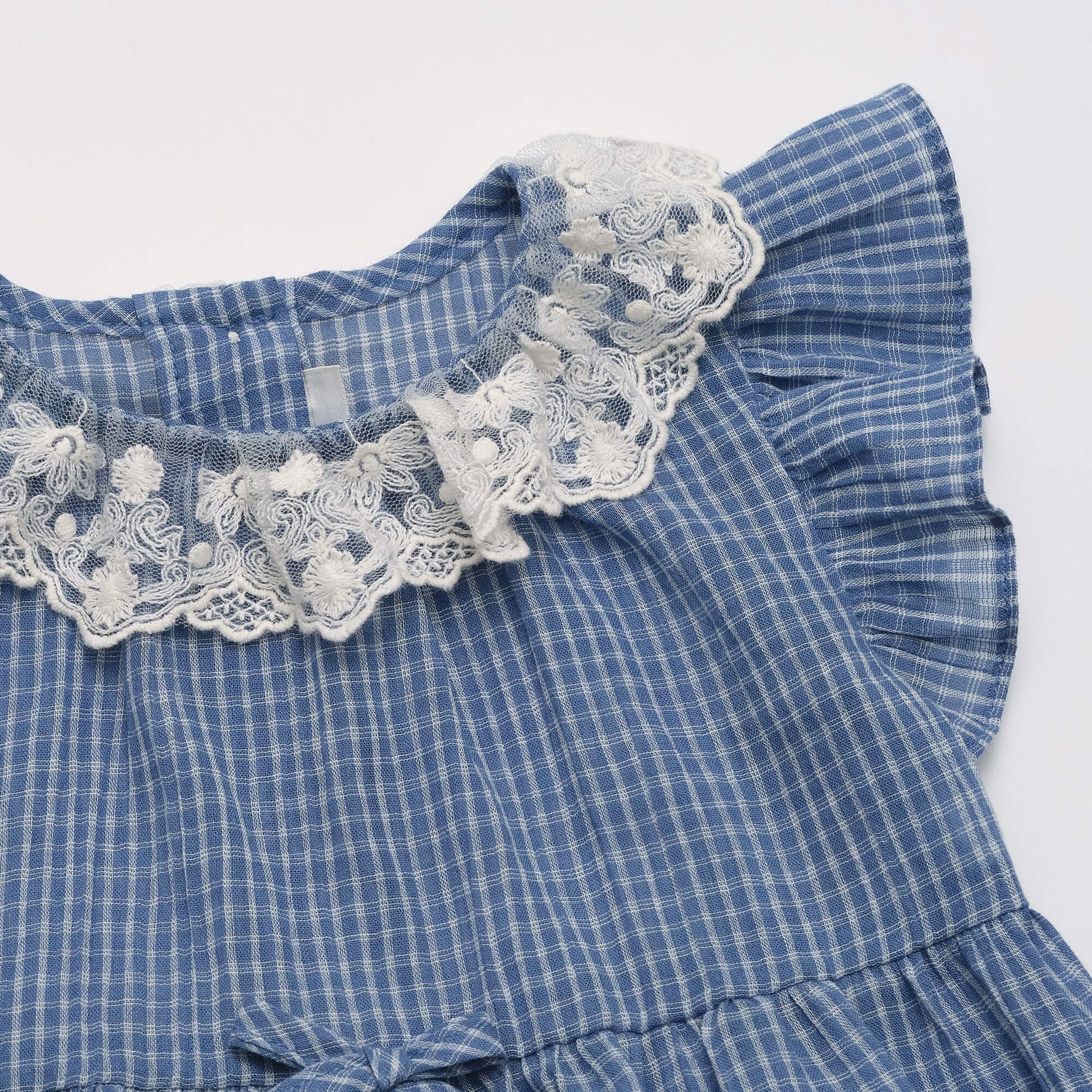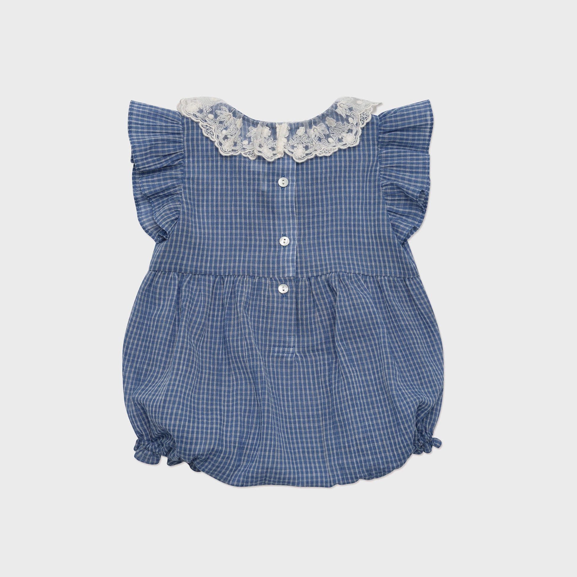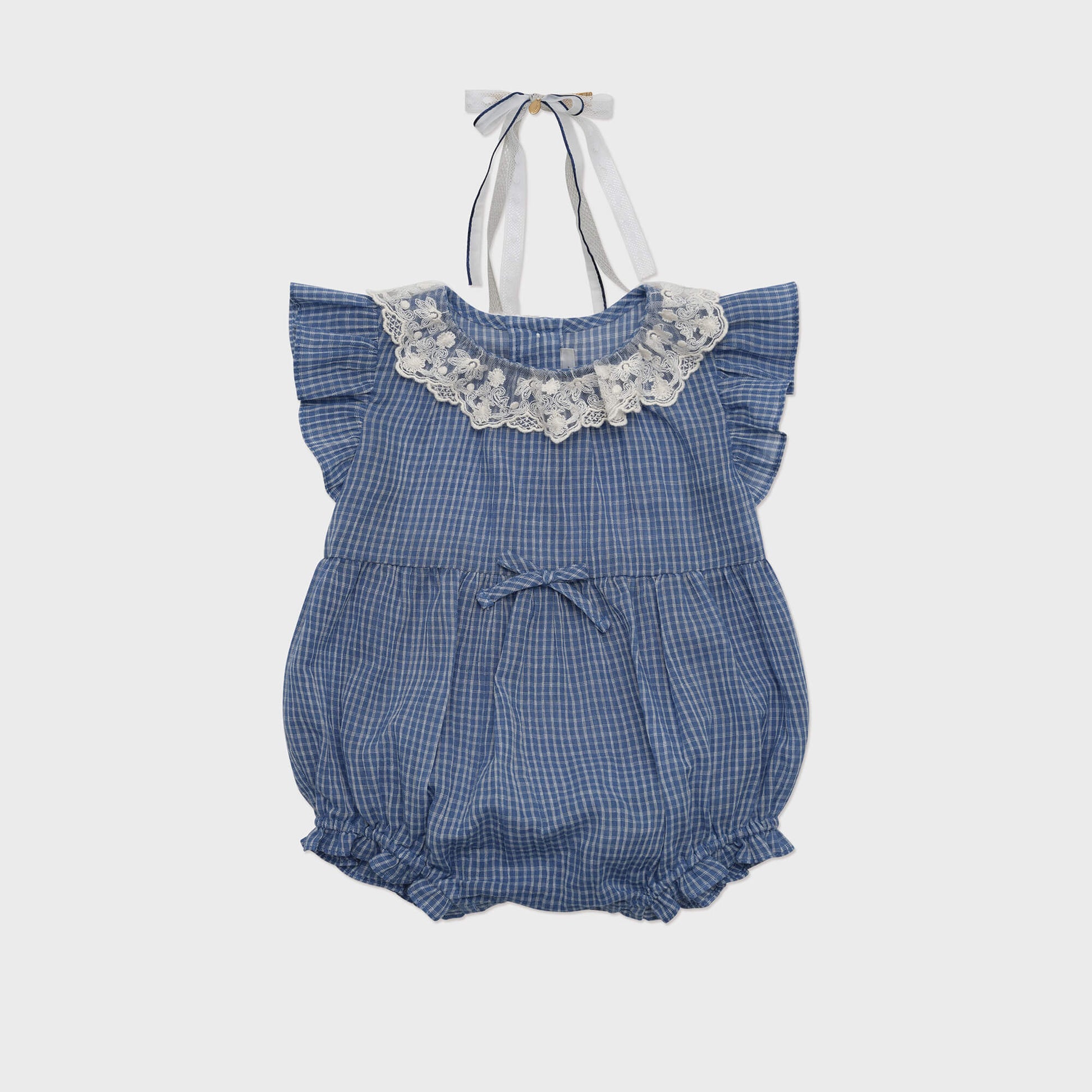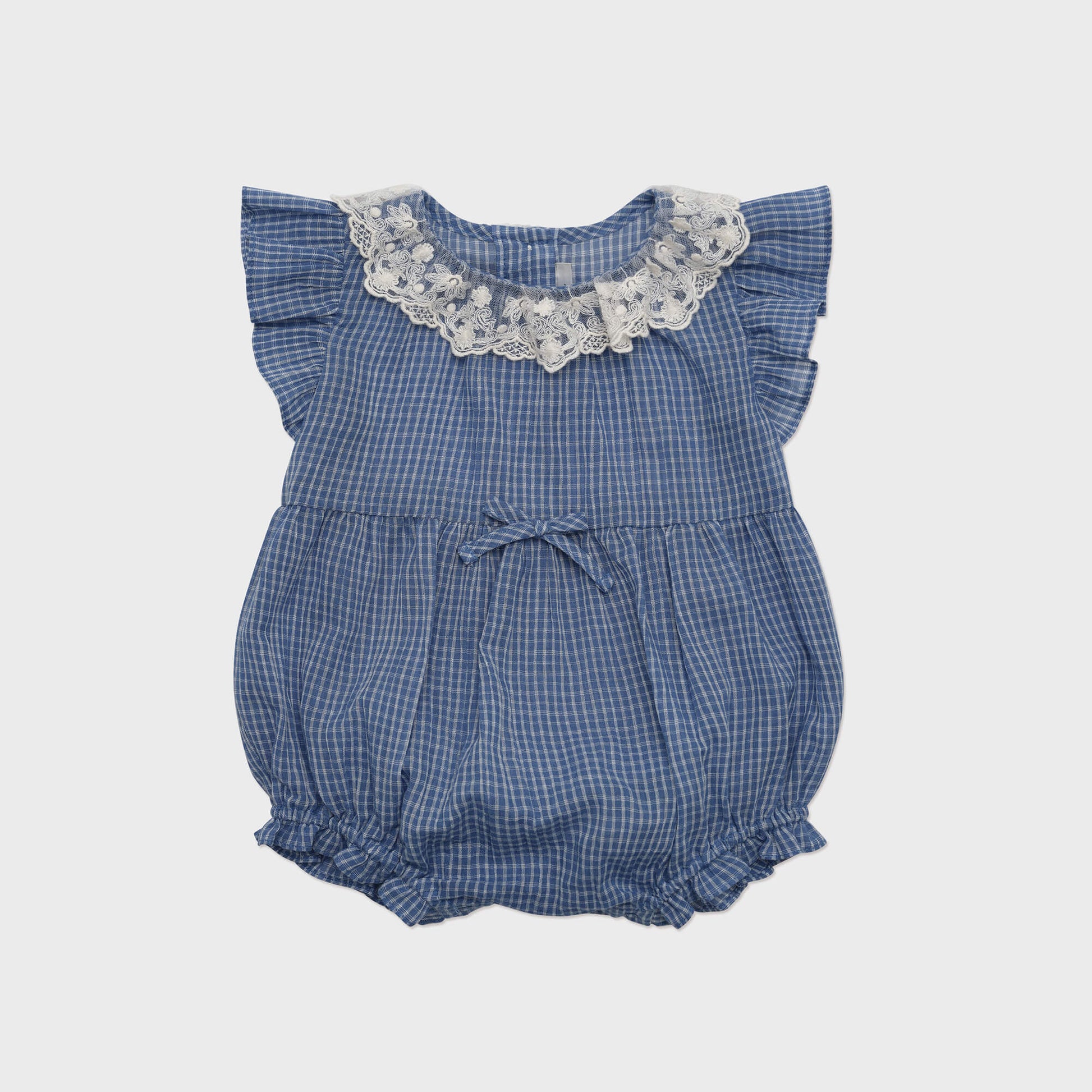女婴蓝色格子棉连体衣