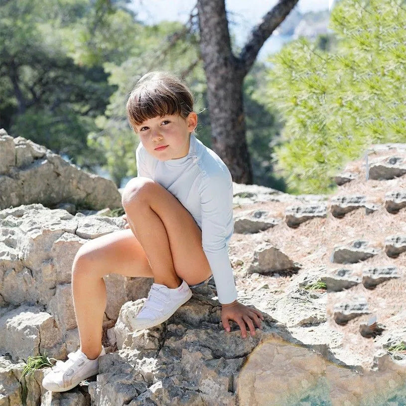 儿童浅蓝色防晒游泳T恤(UPF50+)