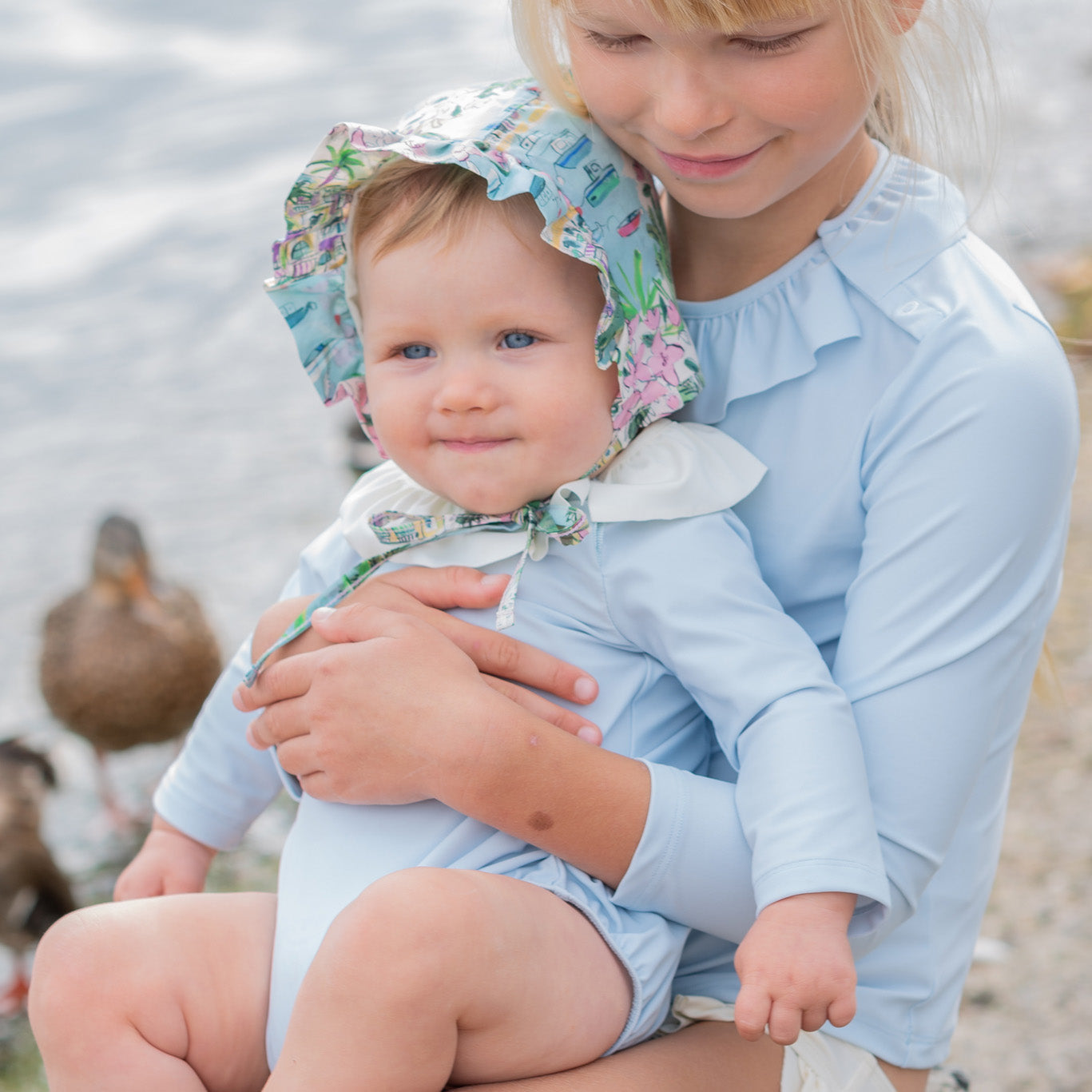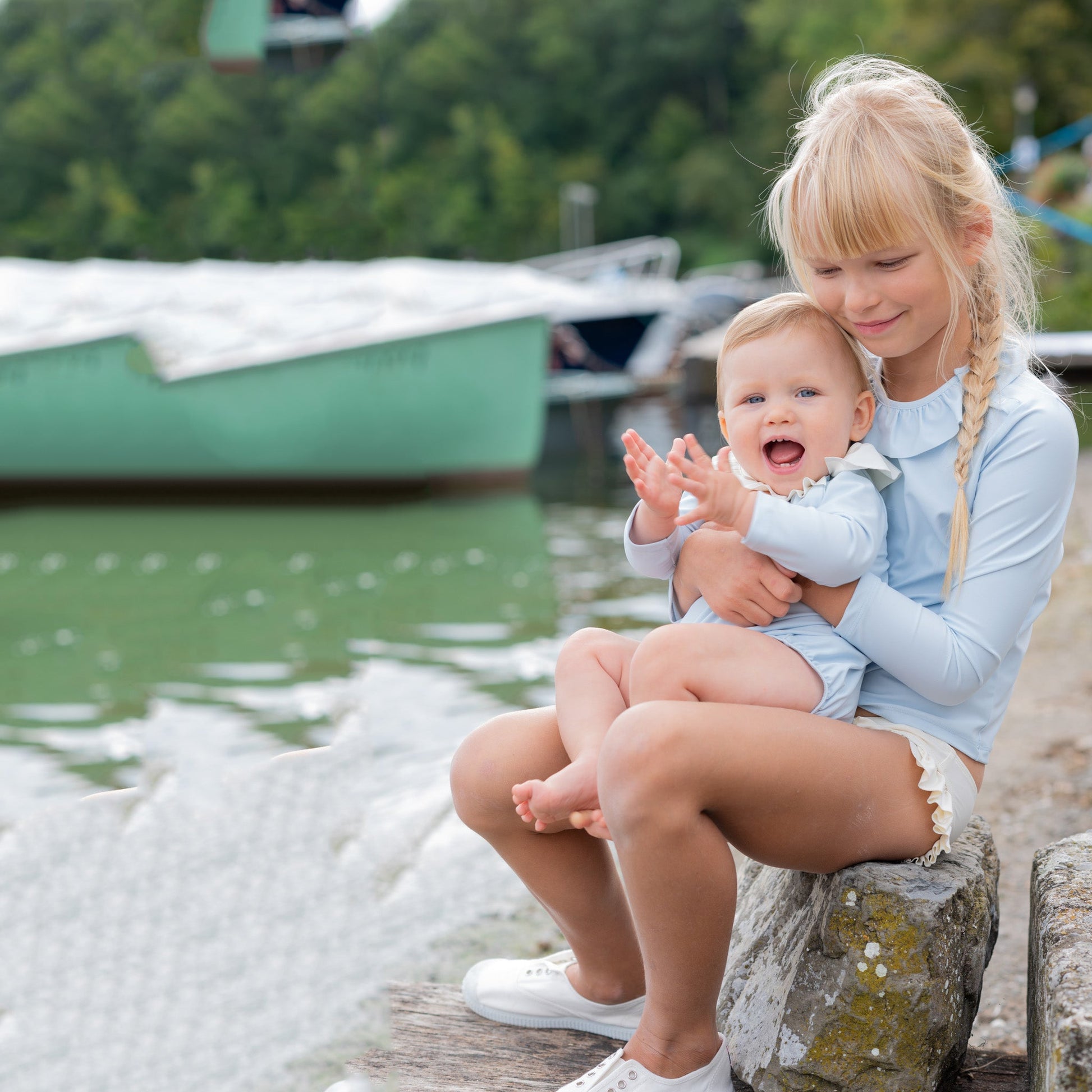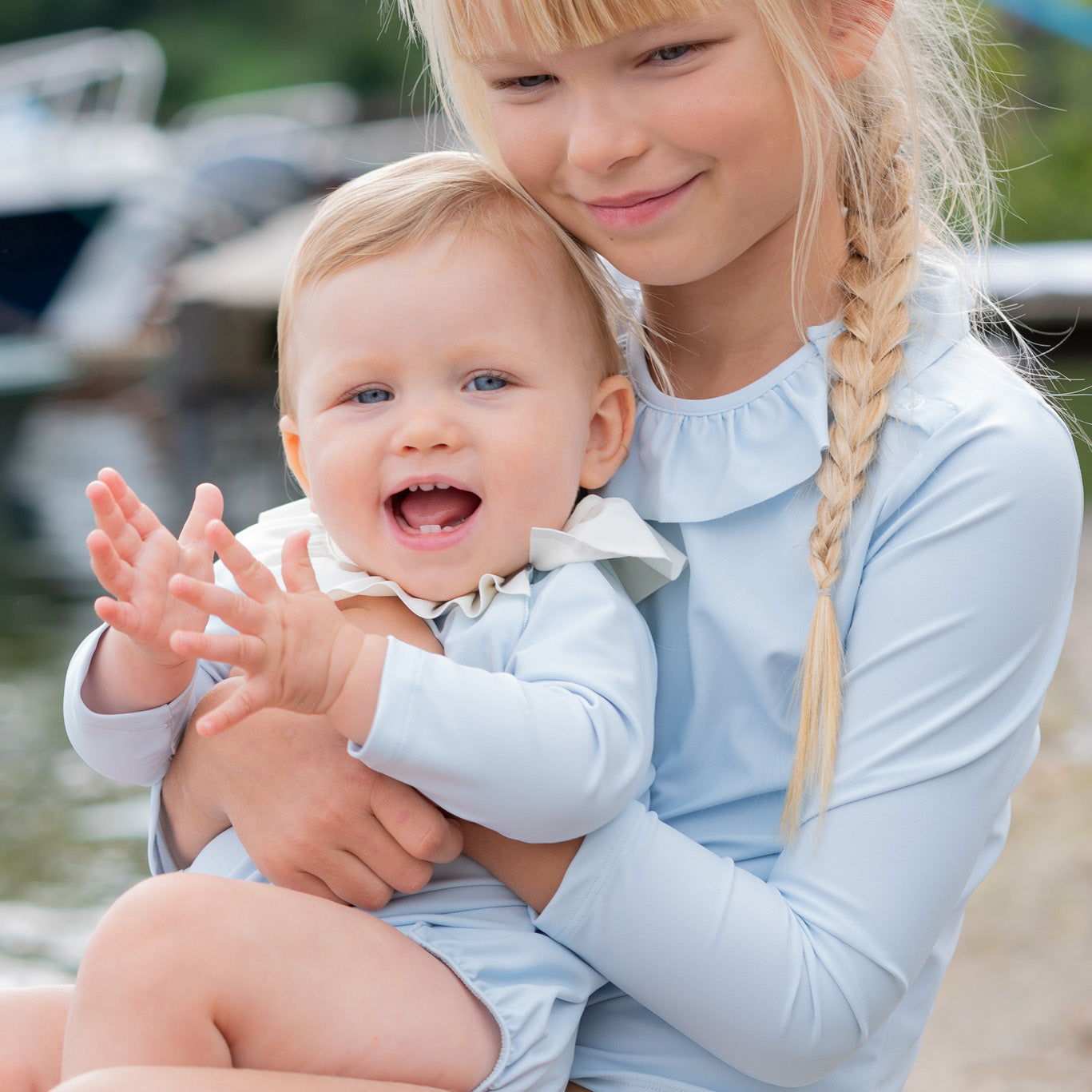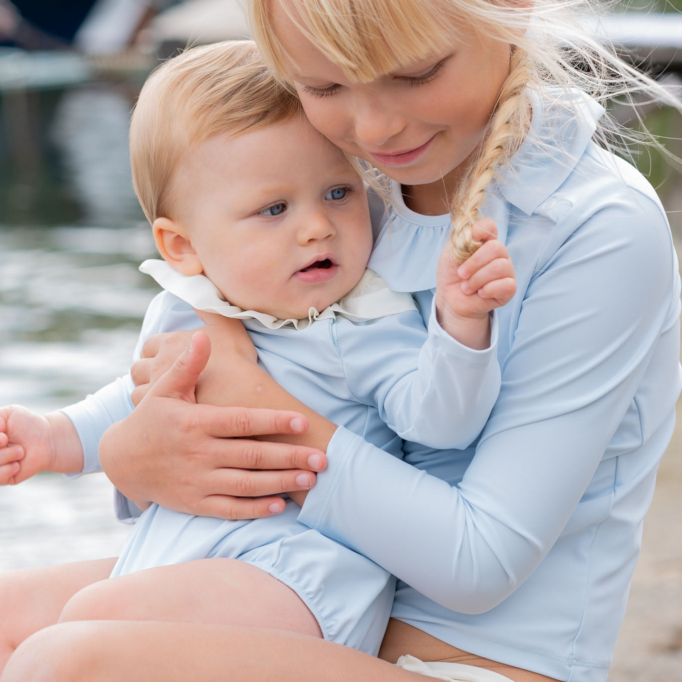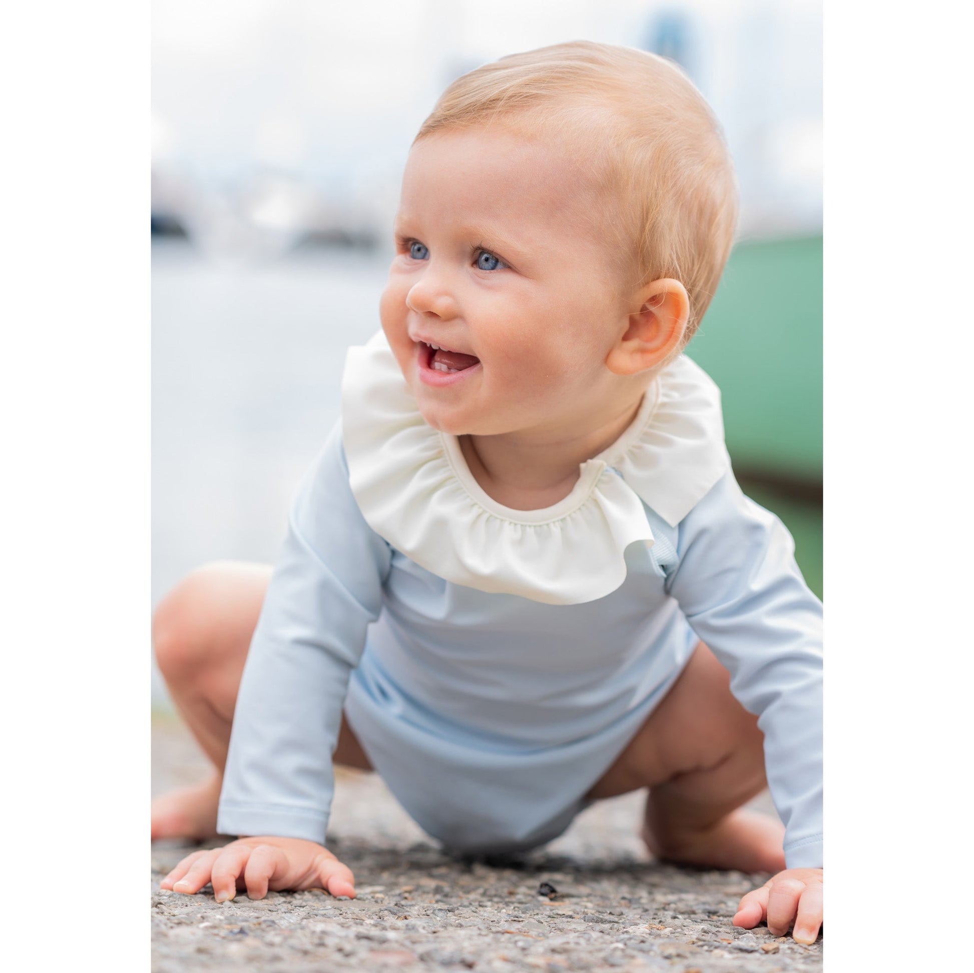 女婴浅蓝色防晒游泳连体衣(UPF50+)