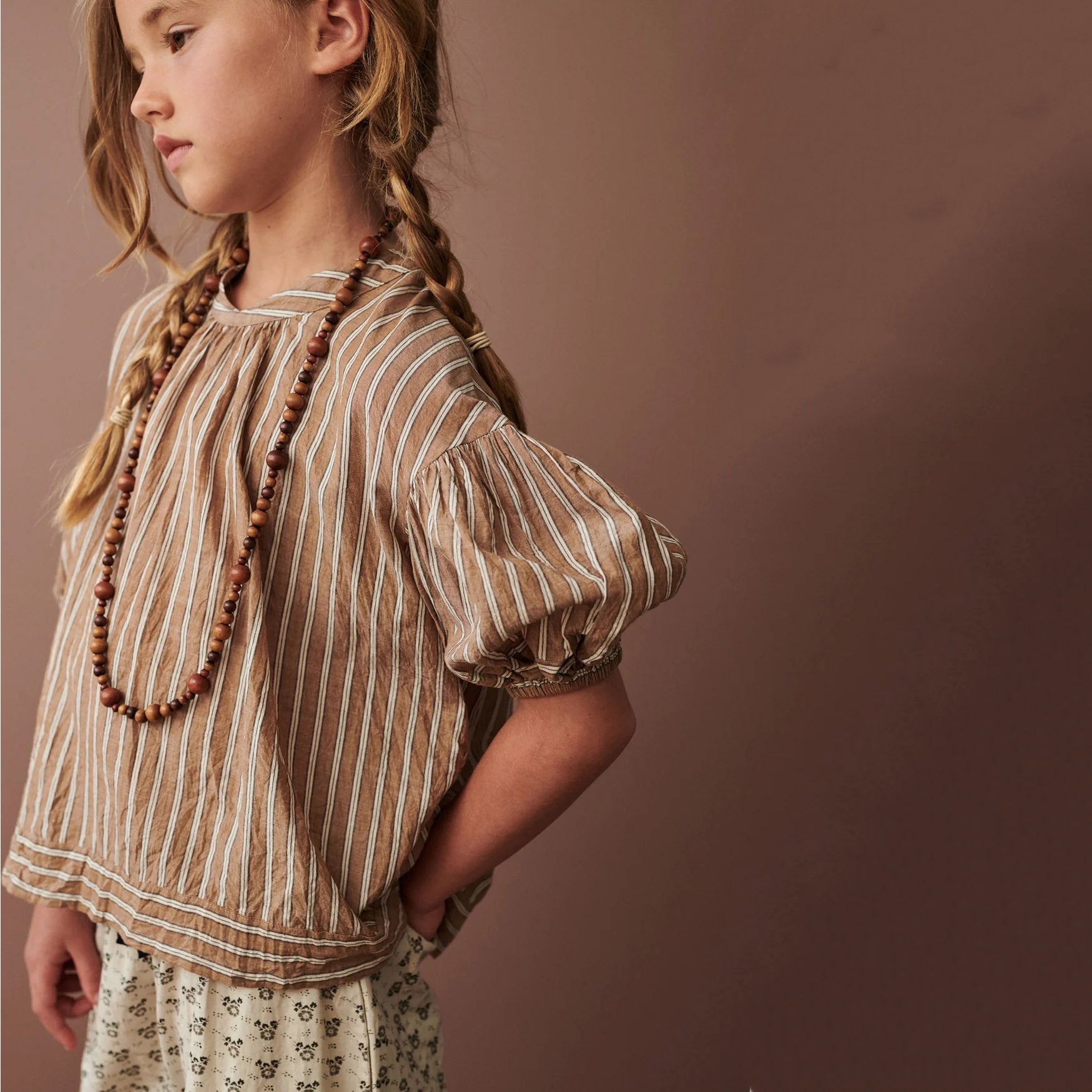 女童米色条纹棉衬衫