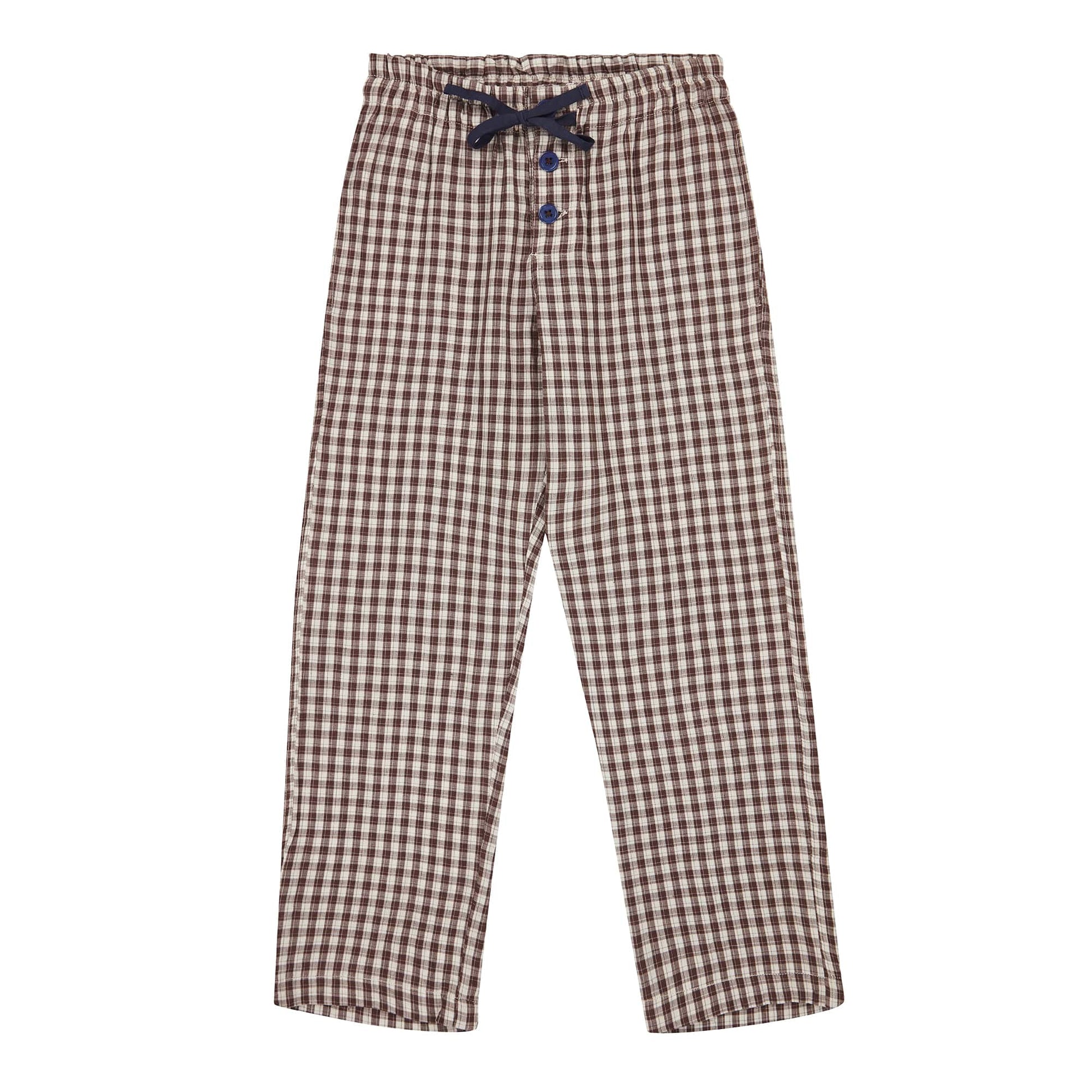 儿童巧克力色格子棉长裤