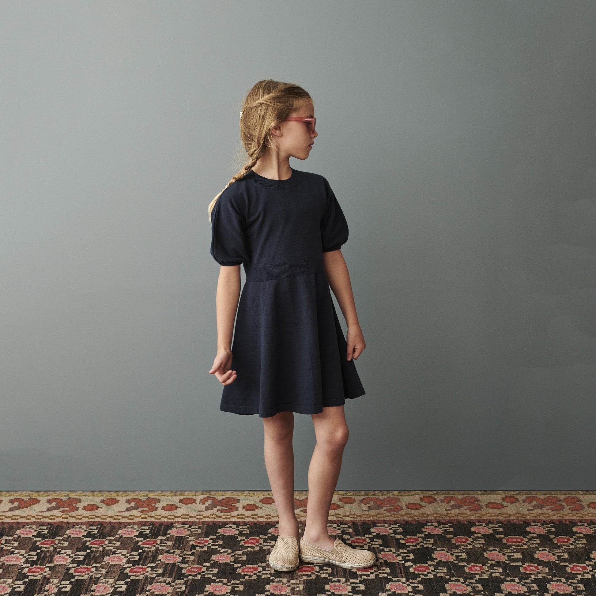 女童藏青色棉连衣裙