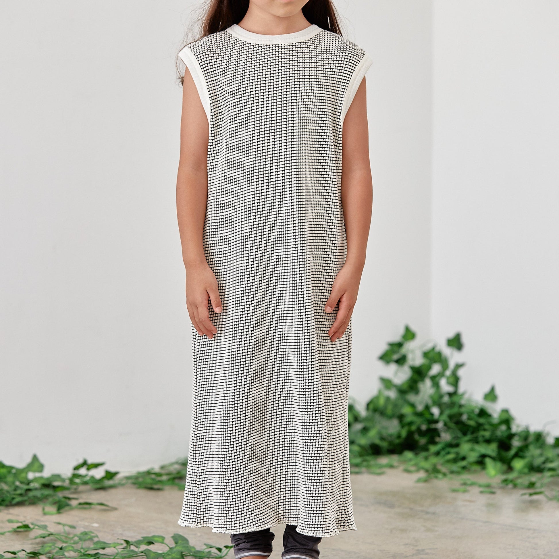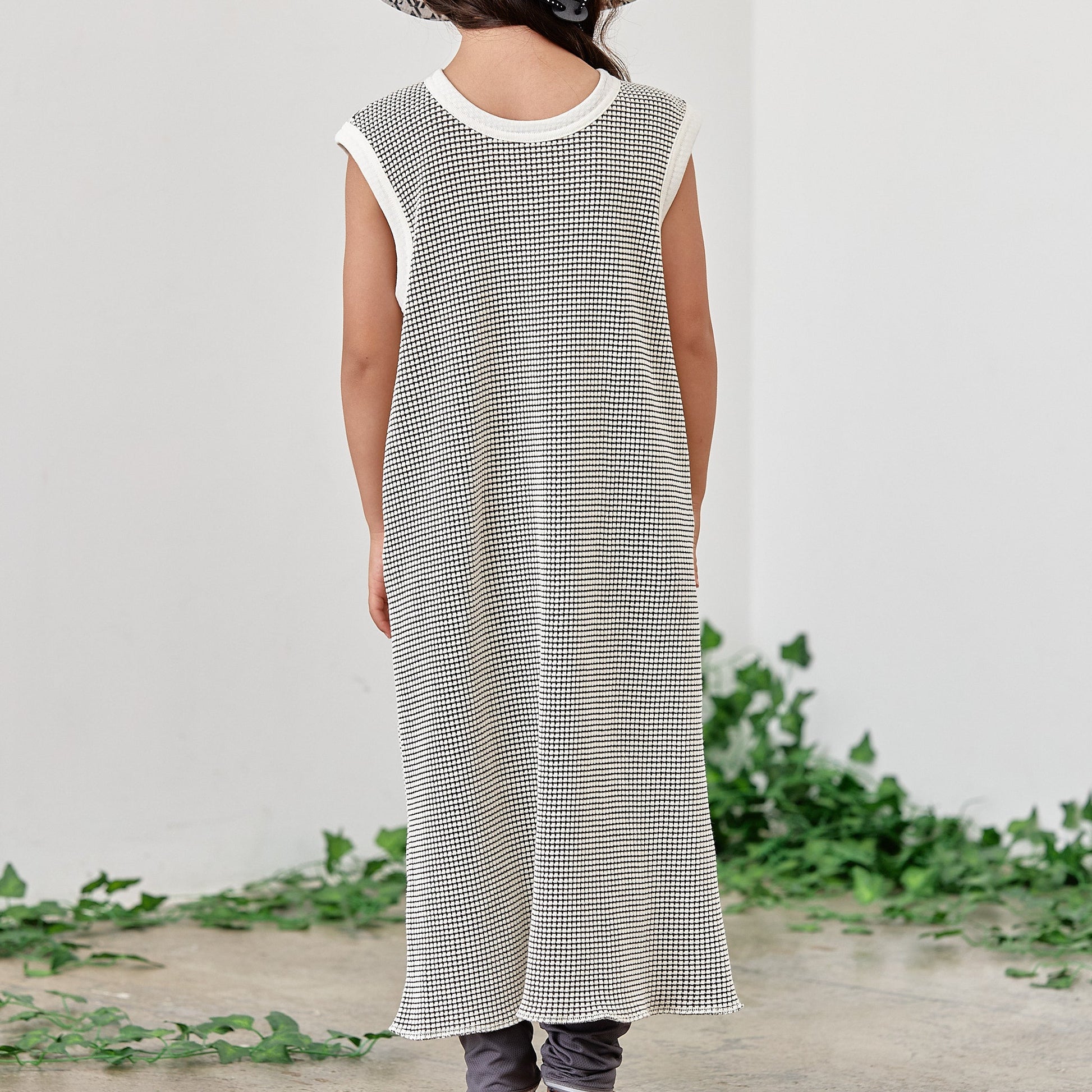 女童白色千鸟格连衣裙