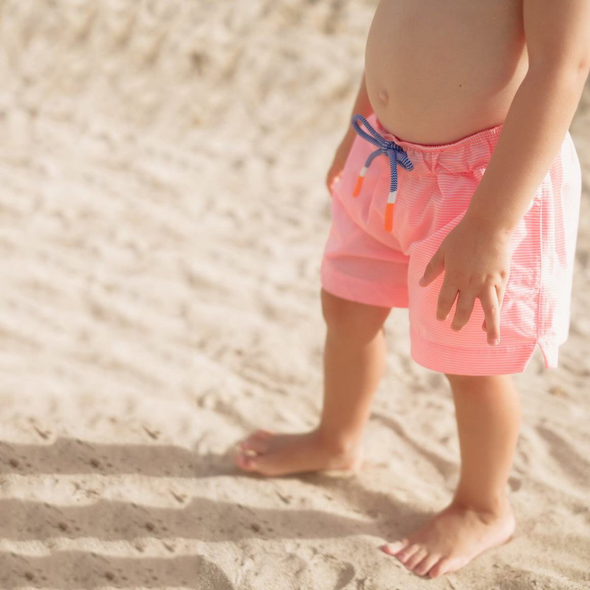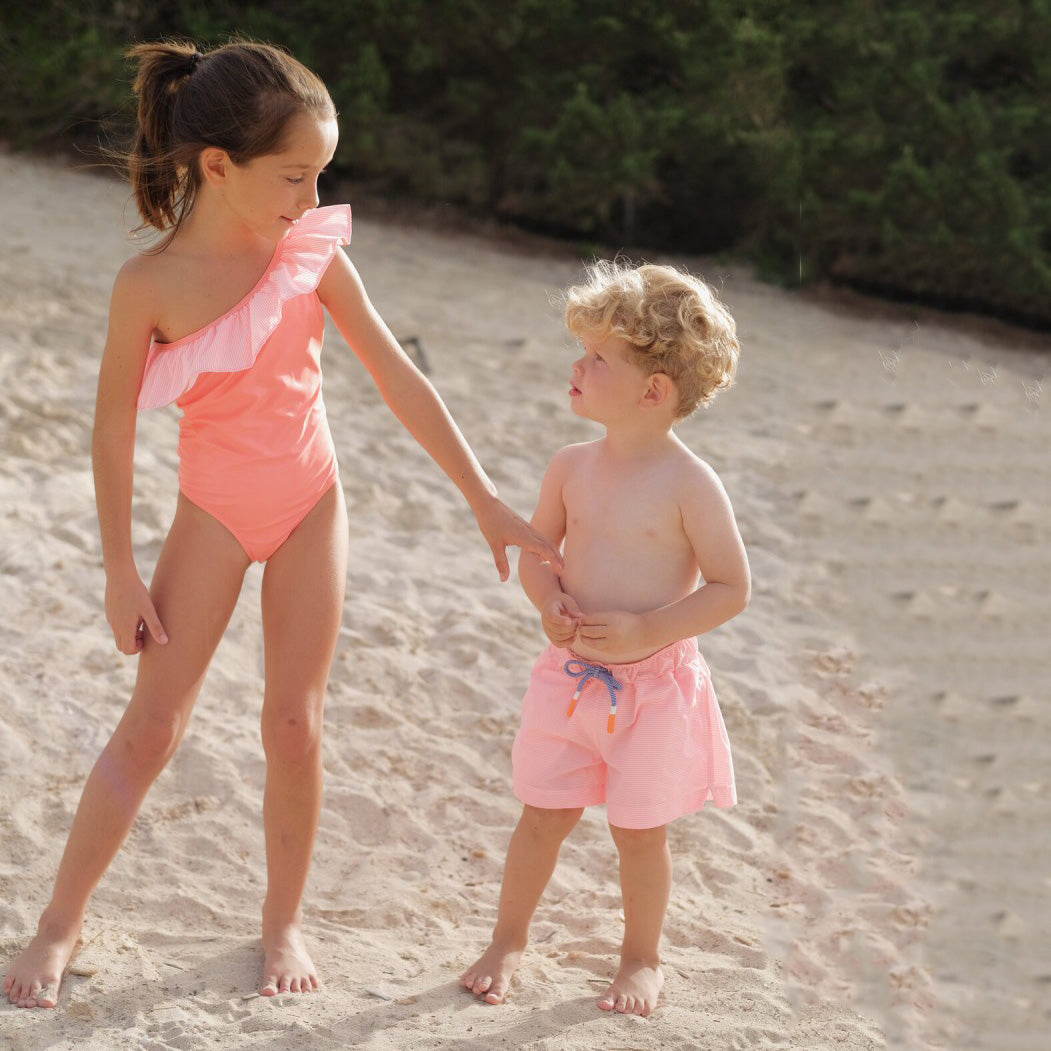 男童荧光橙格子泳裤