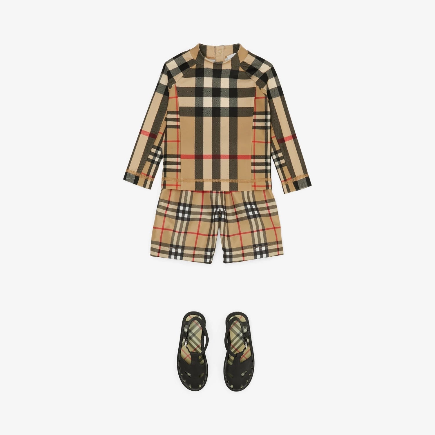 男婴米色格子泳裤