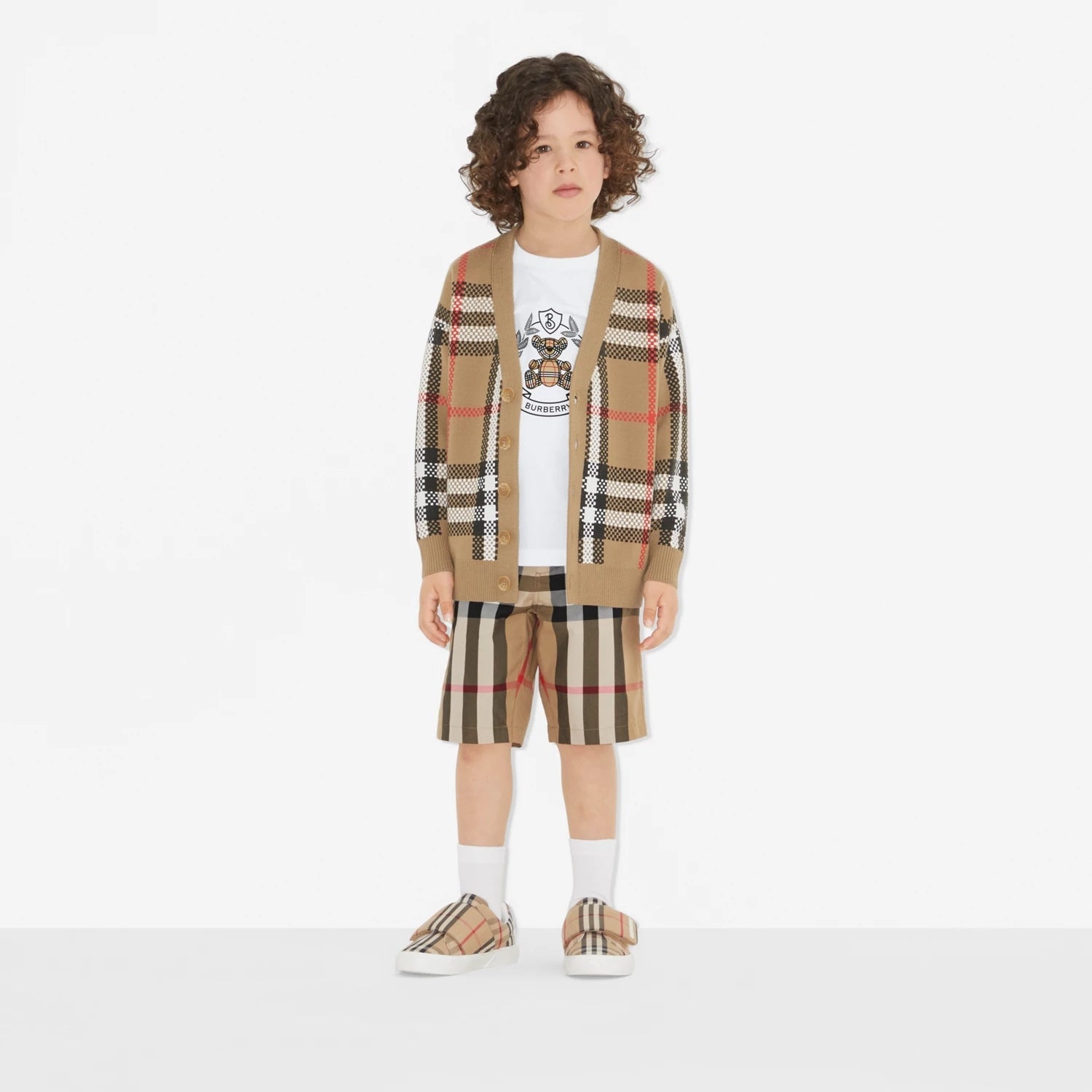 男童米色格子棉短裤