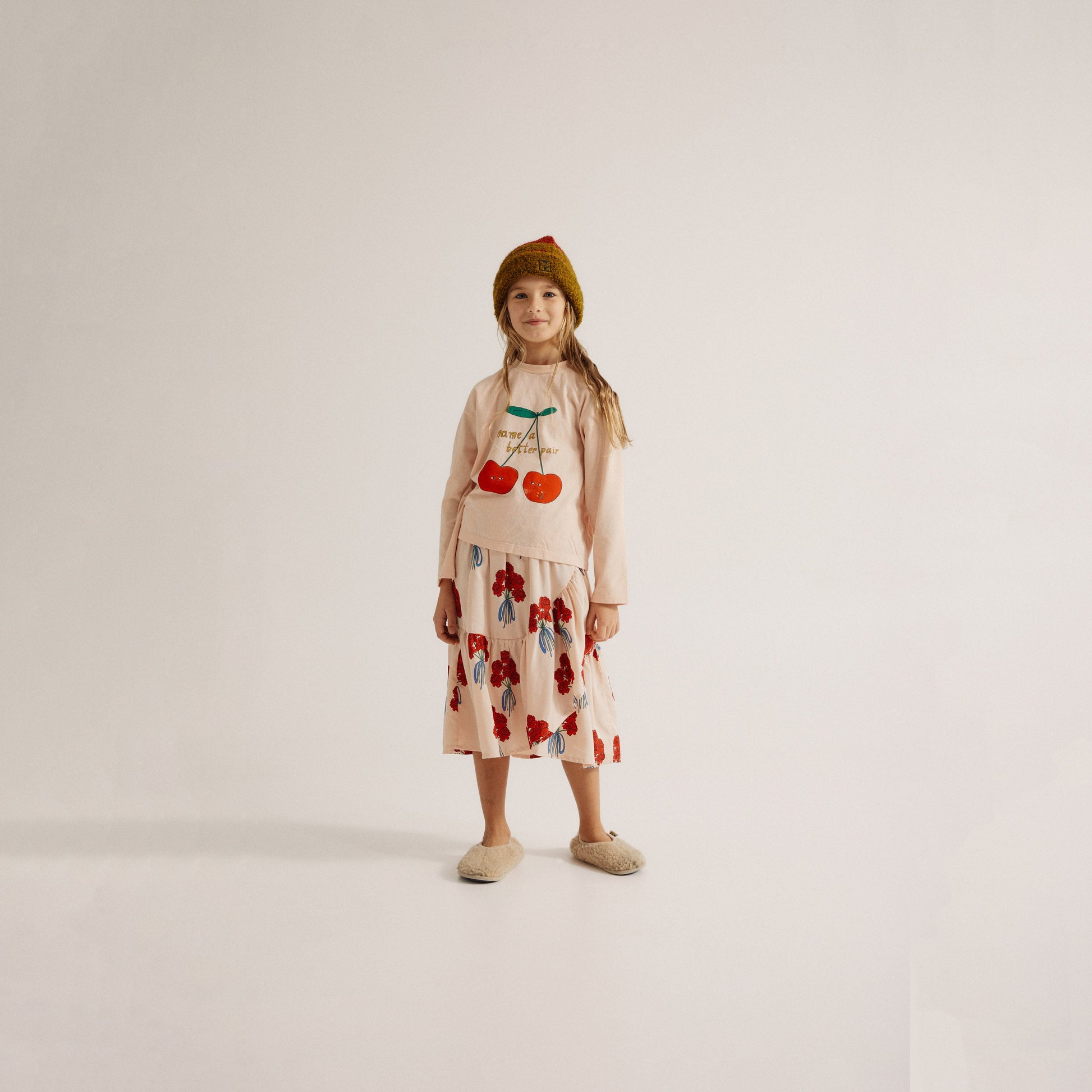 女童粉色花朵短裙