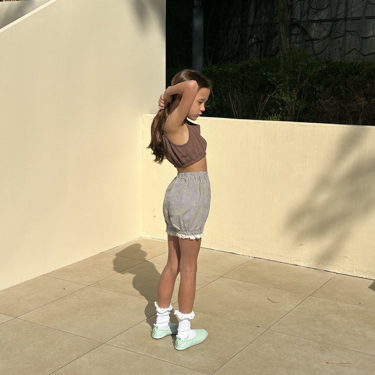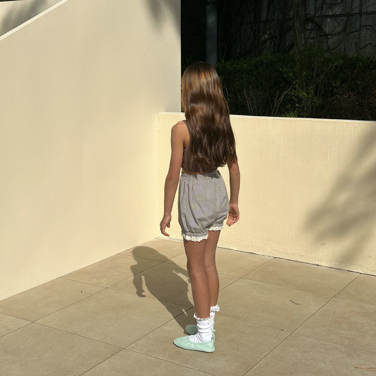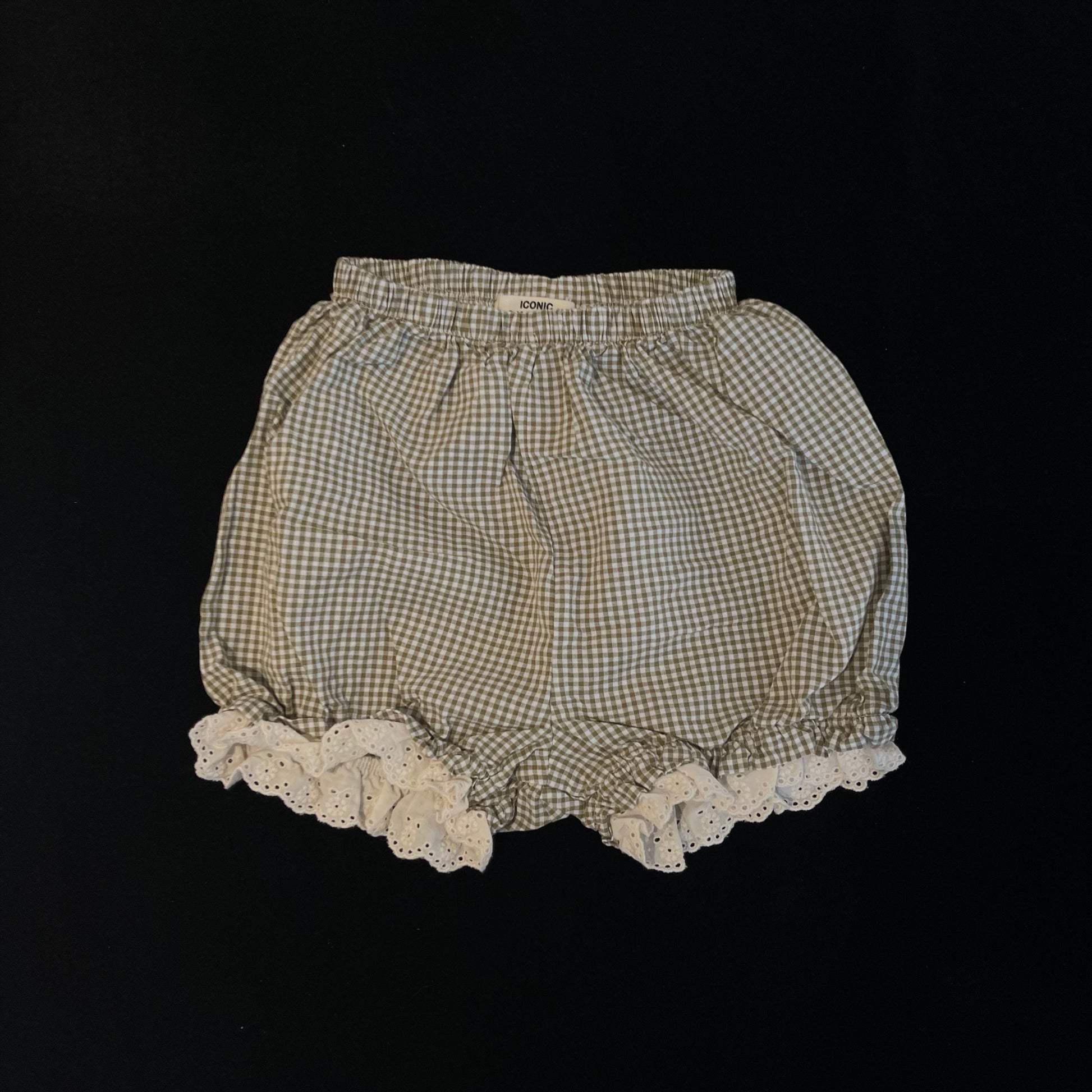 女童浅绿色格子棉短裤