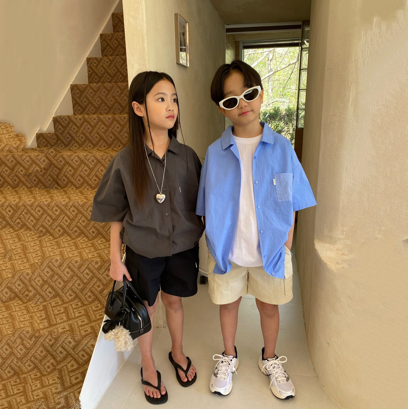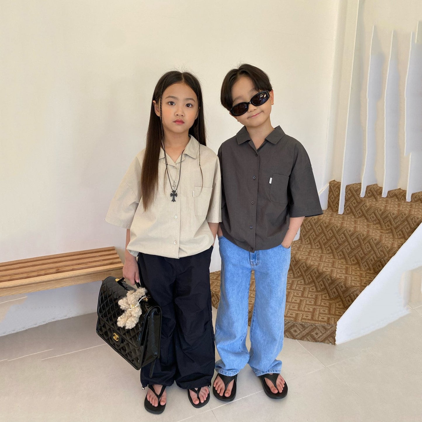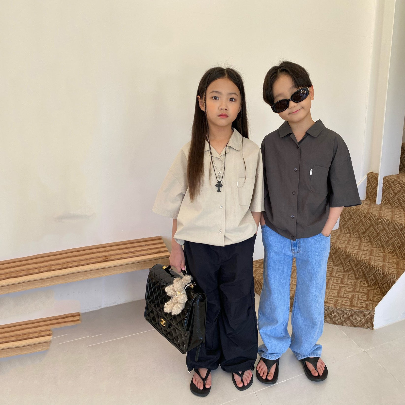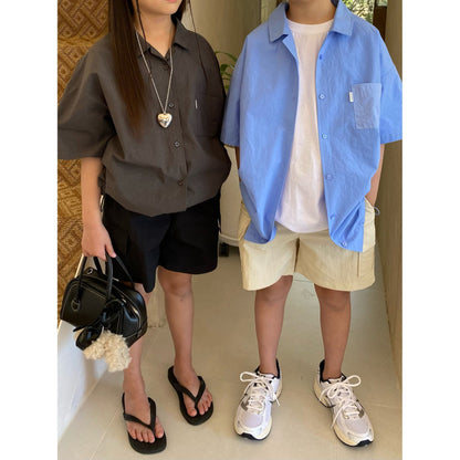 儿童深灰色棉衬衫