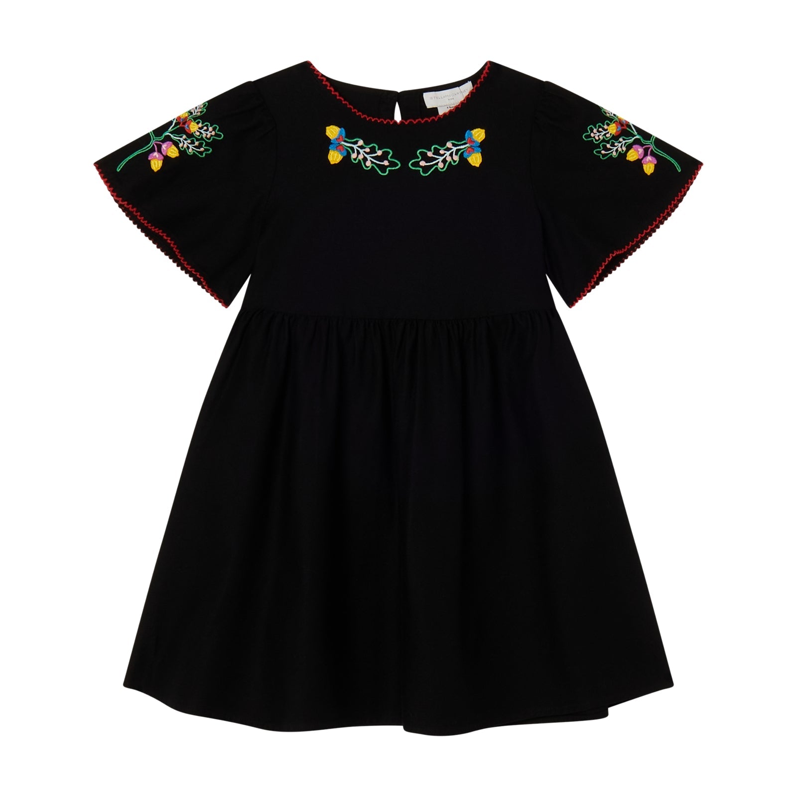 女童深灰色刺绣棉连衣裙