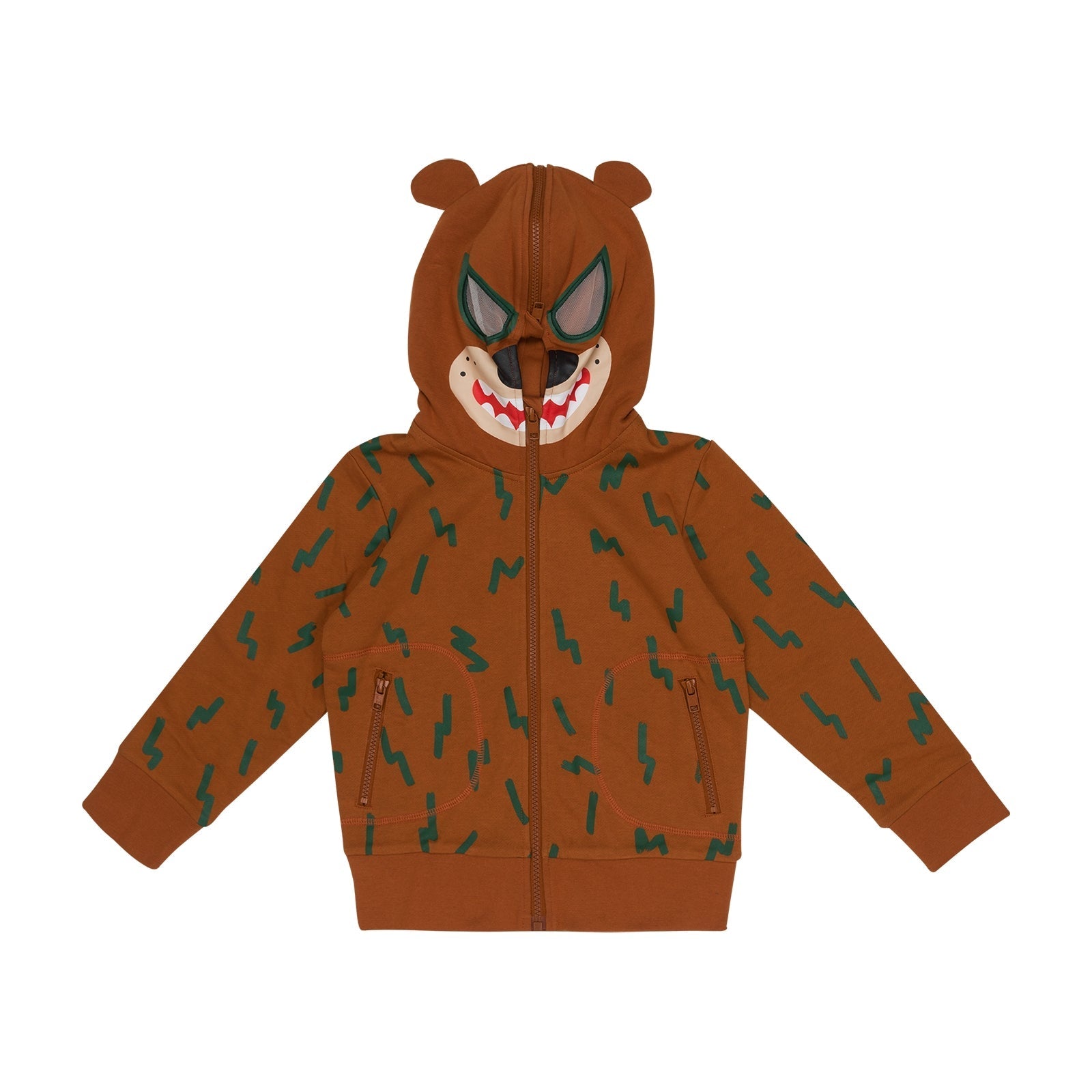 男童棕色印花拉链上衣