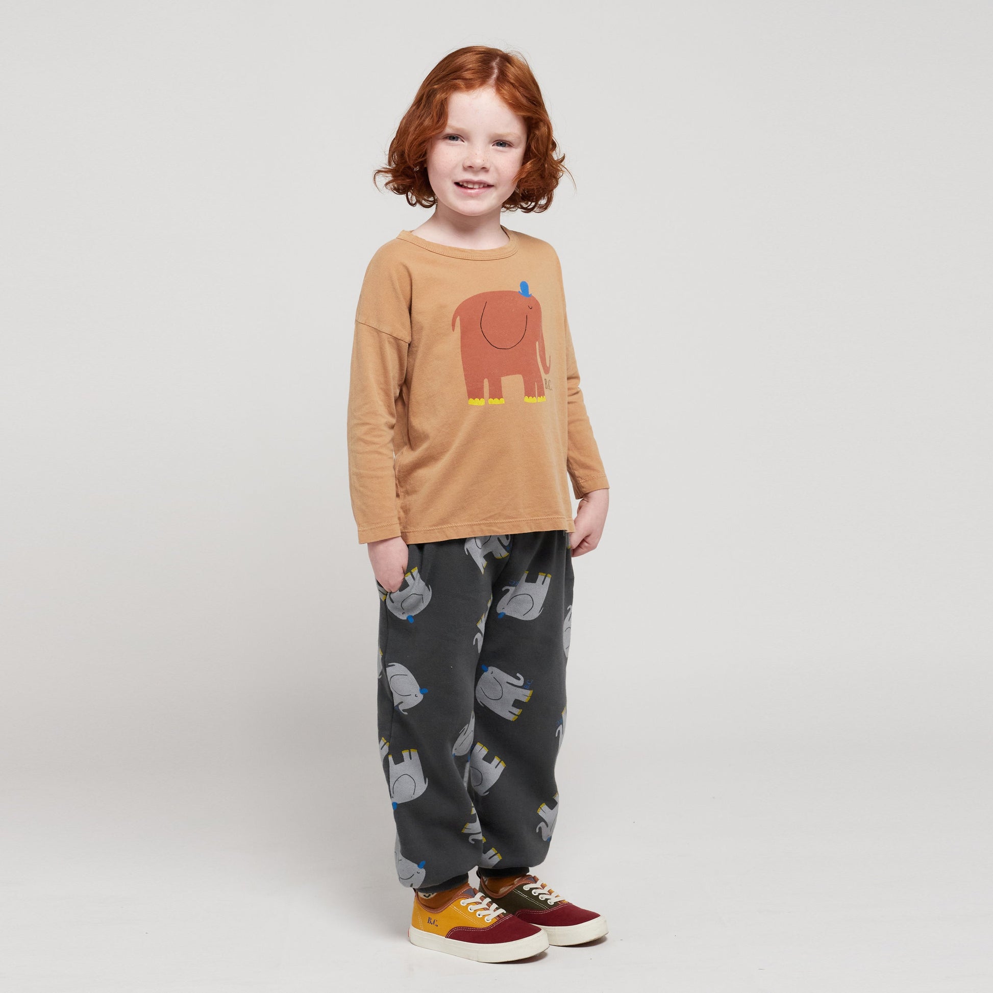 儿童浅棕色印花棉T恤