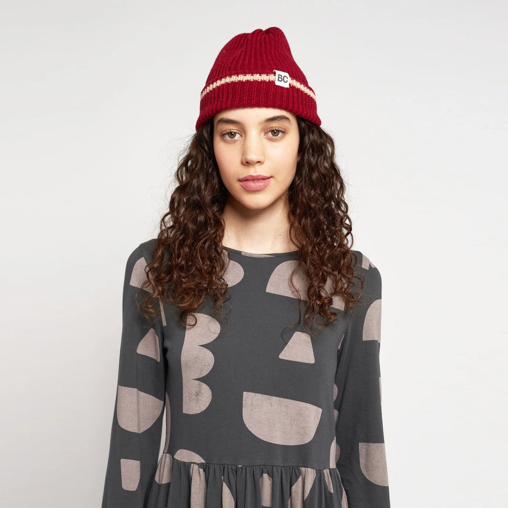 女士红色羊毛针织帽子