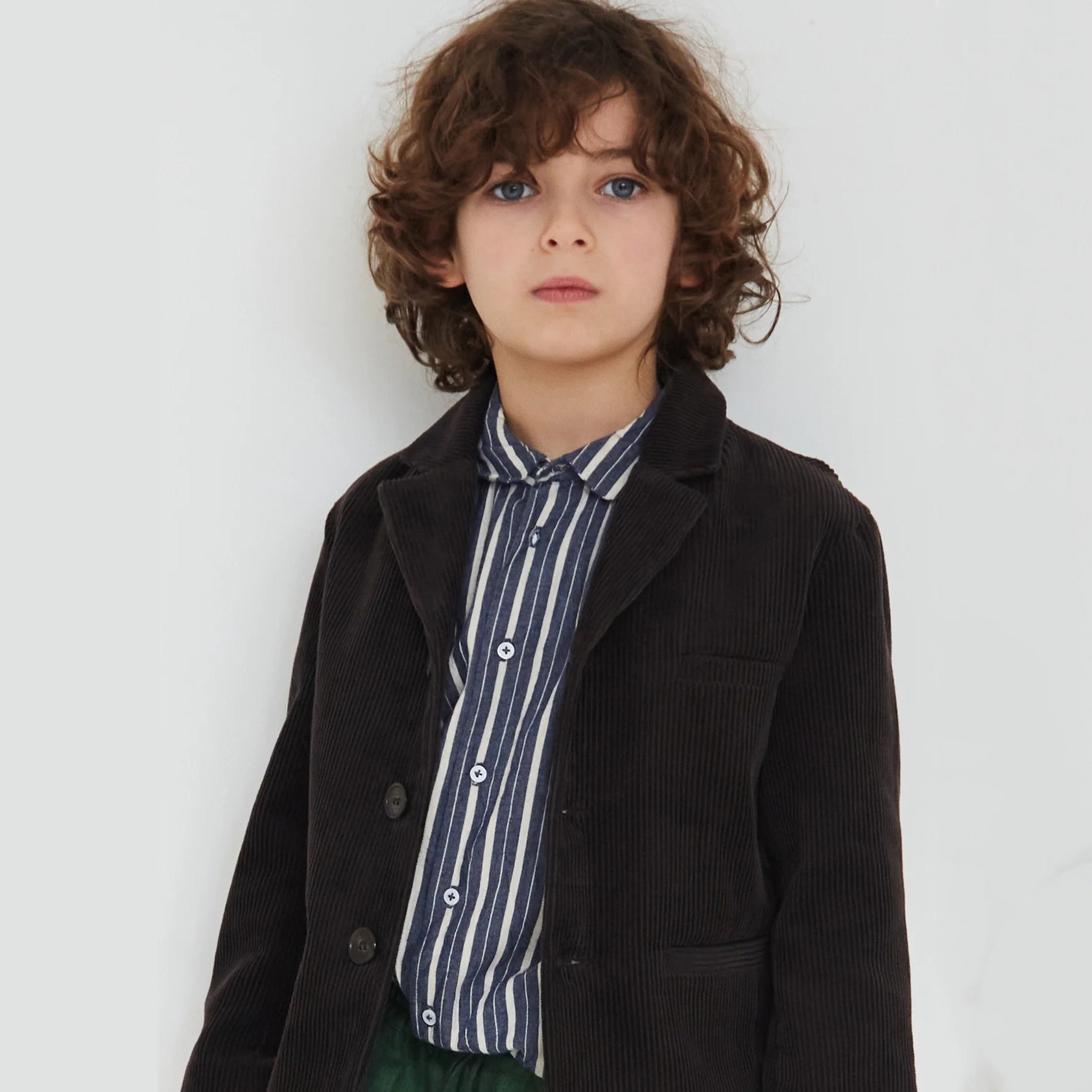男童灰色条纹棉衬衫