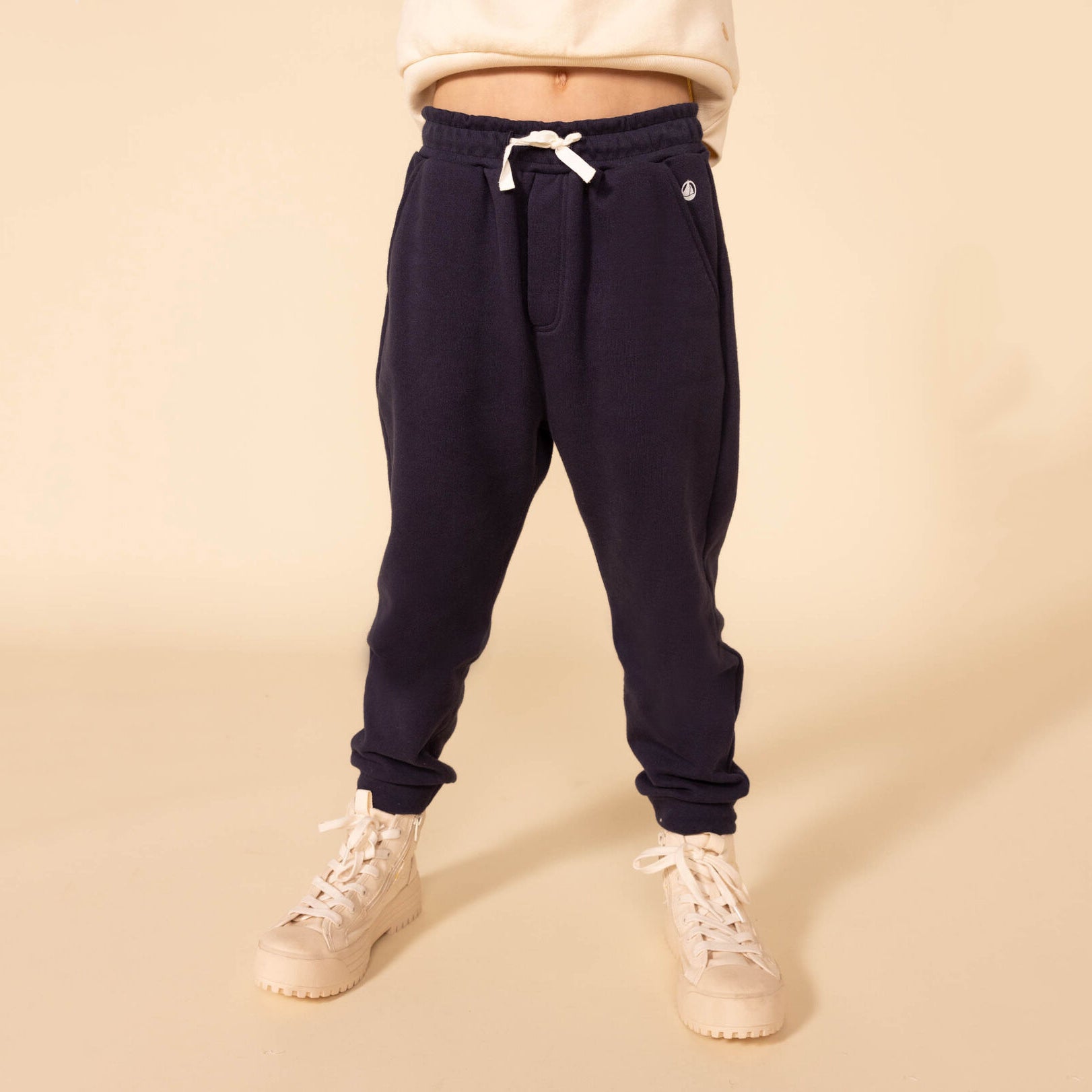 男童藏青色Logo棉长裤