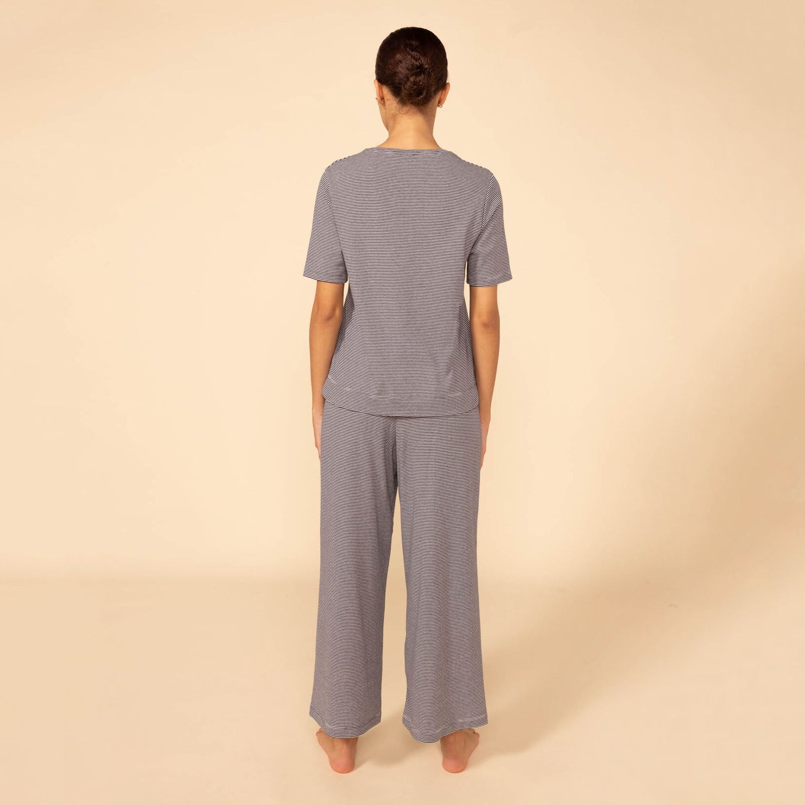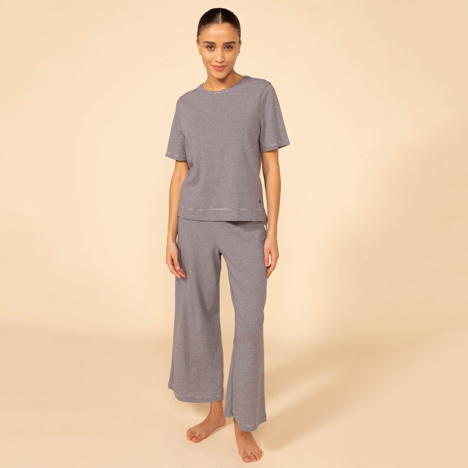 女士黑色条纹棉睡衣套装