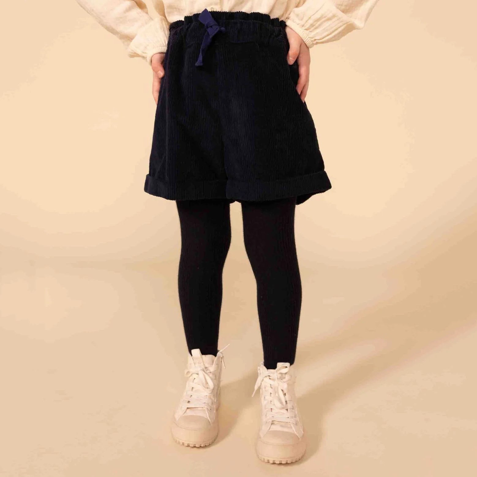 女童深蓝色灯芯绒短裤
