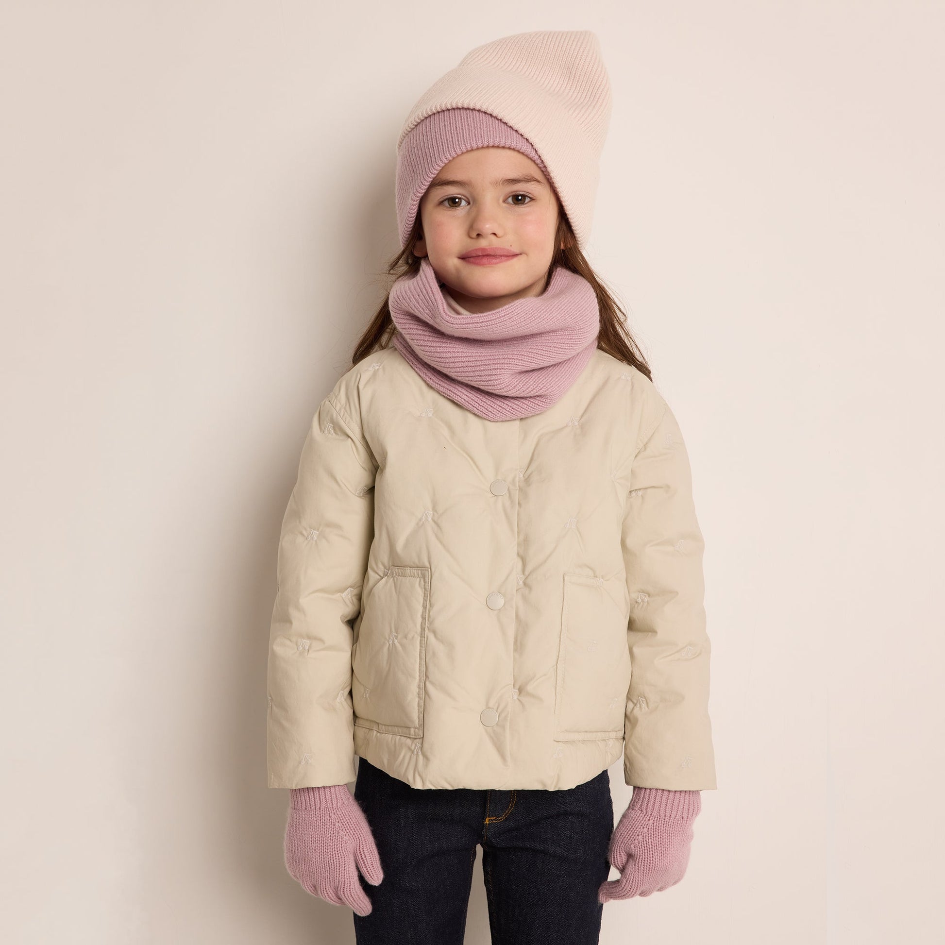 增加 女童浅粉色羊绒帽子 的数量