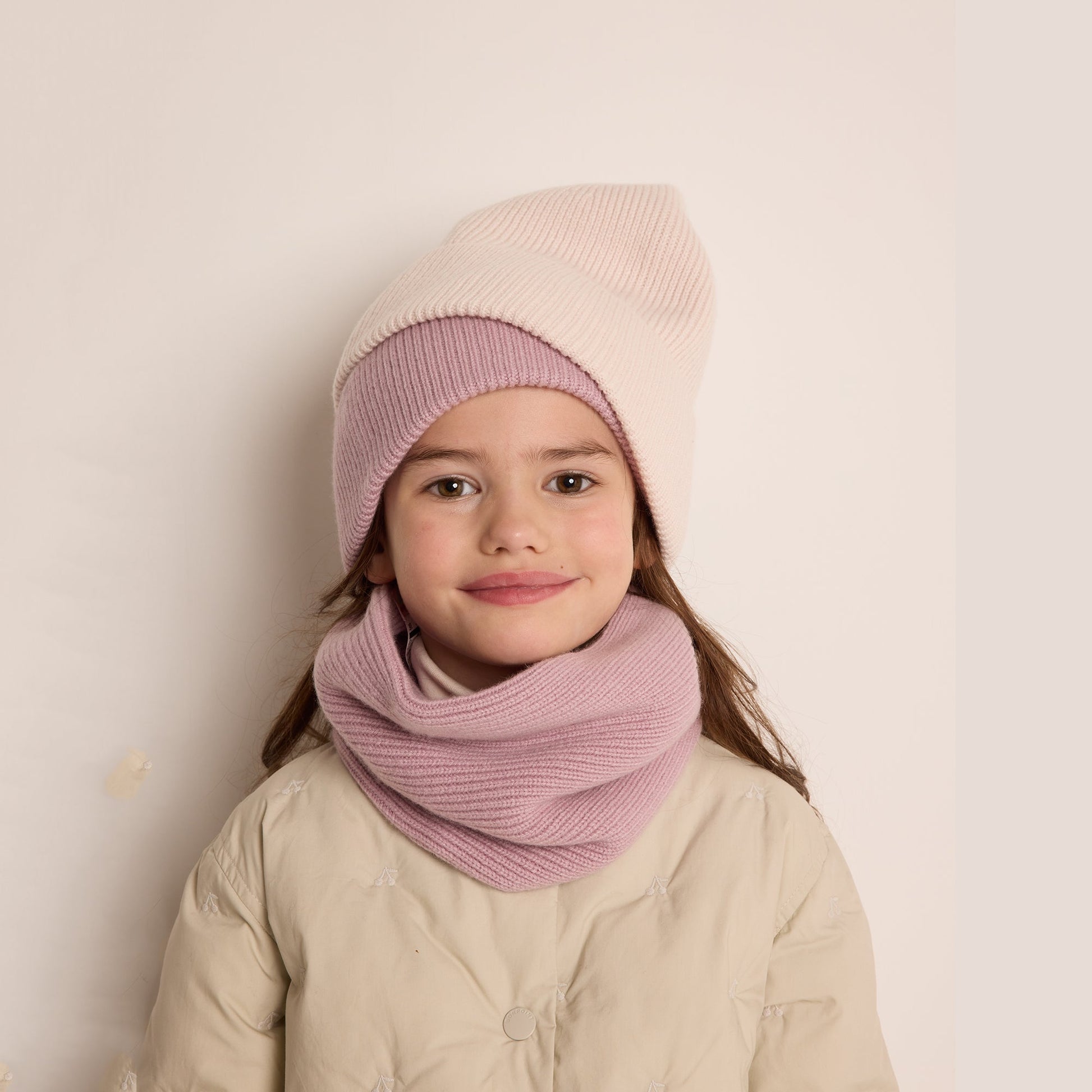 女童浅粉色羊绒帽子