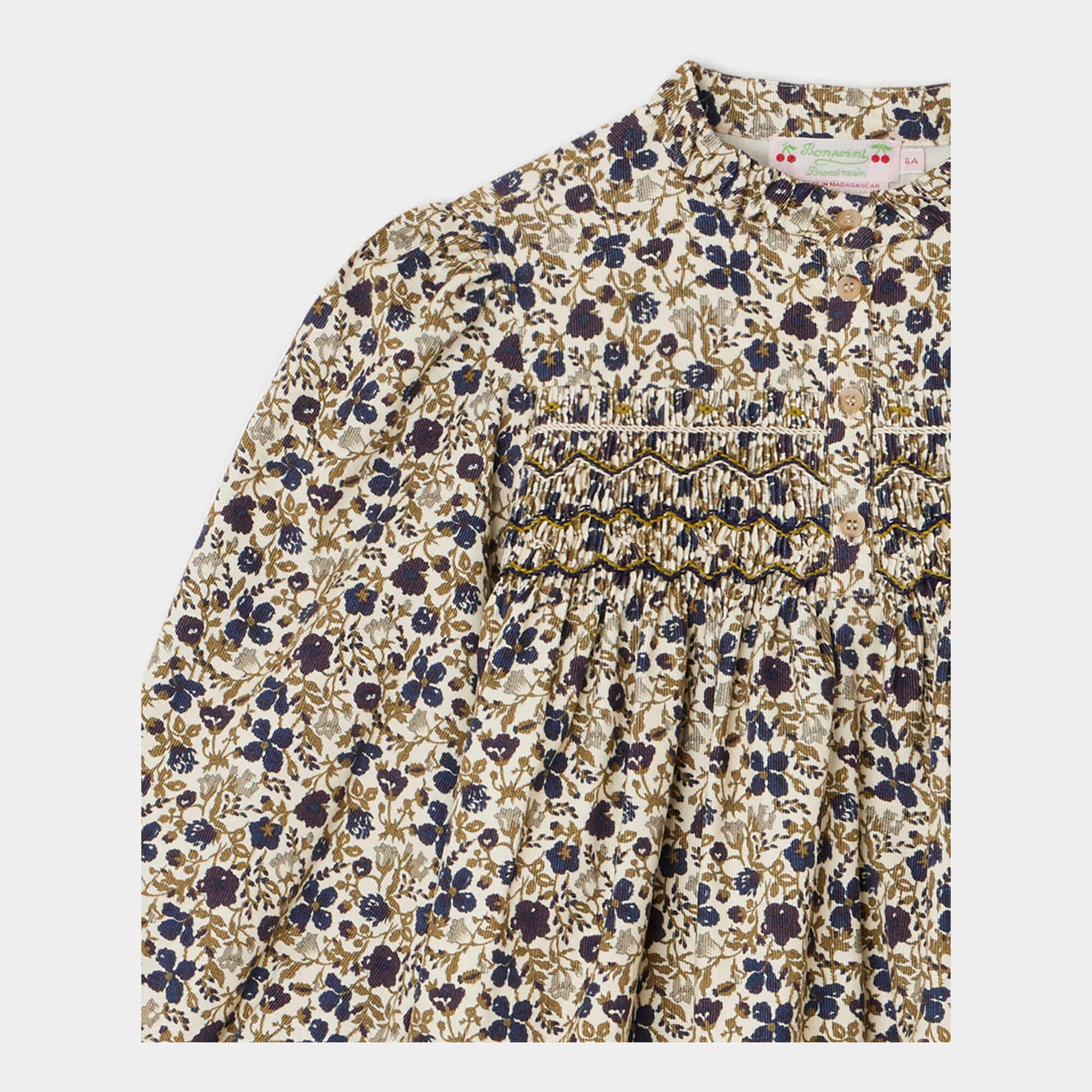 女童米色碎花灯芯绒连衣裙