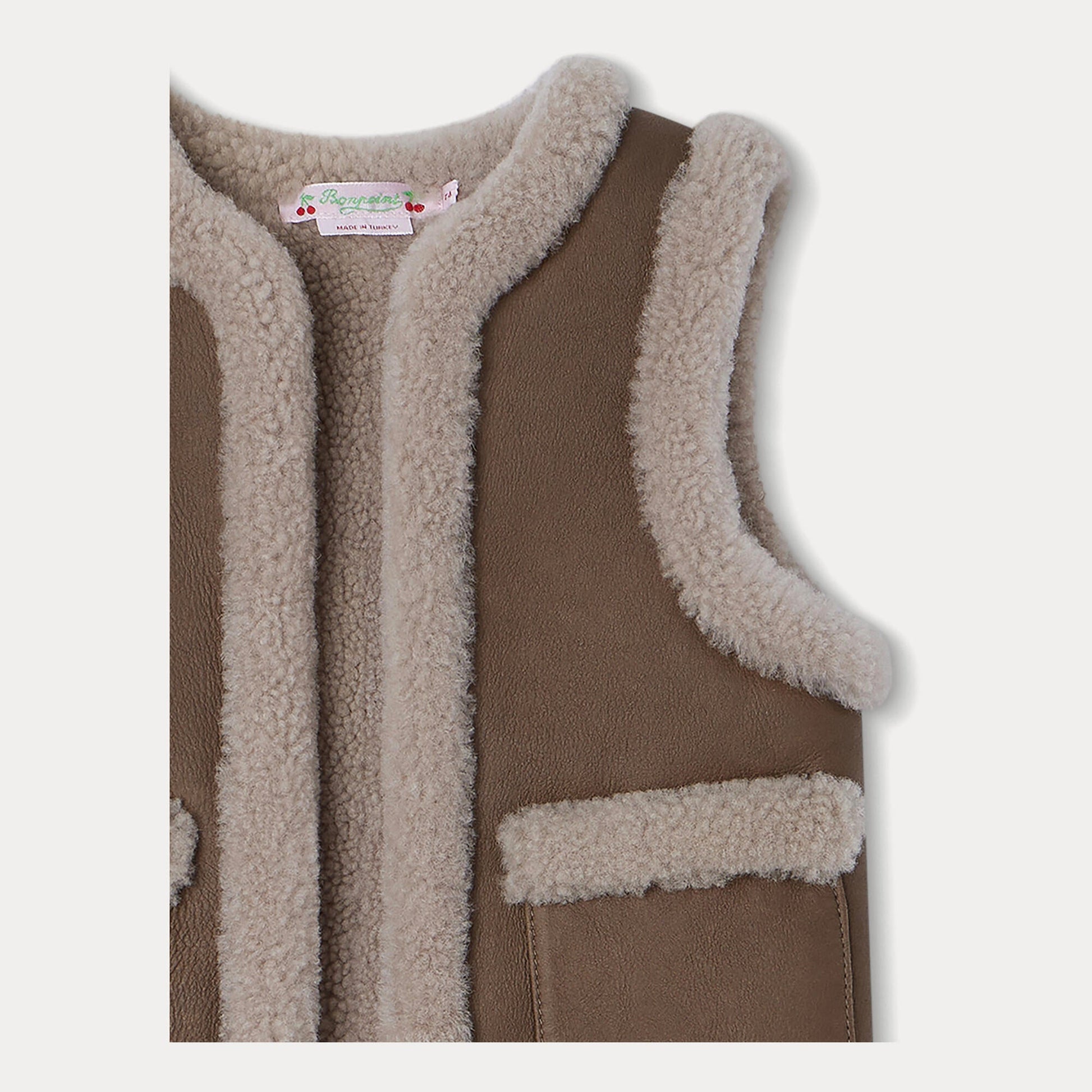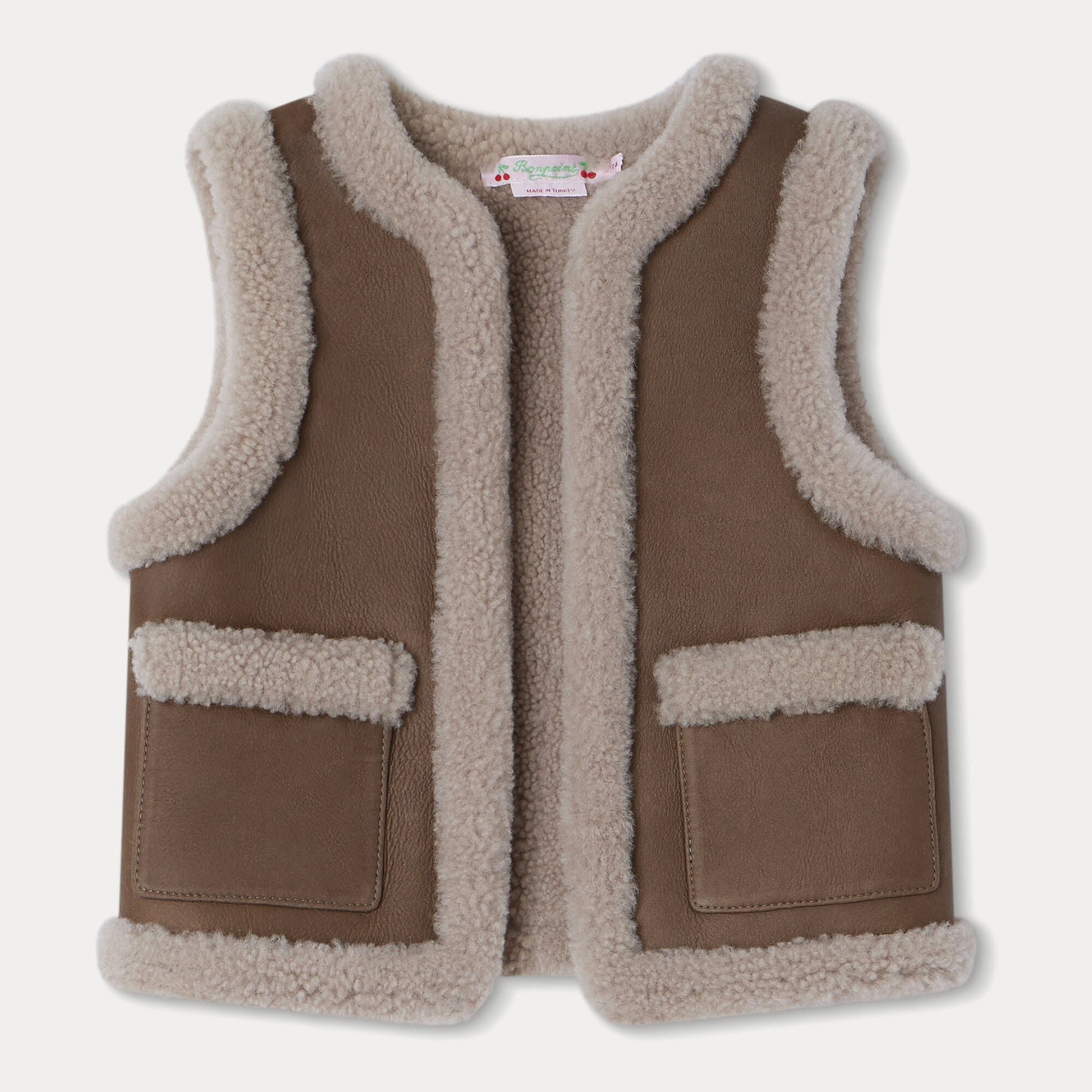 女童卡其色羊皮马甲