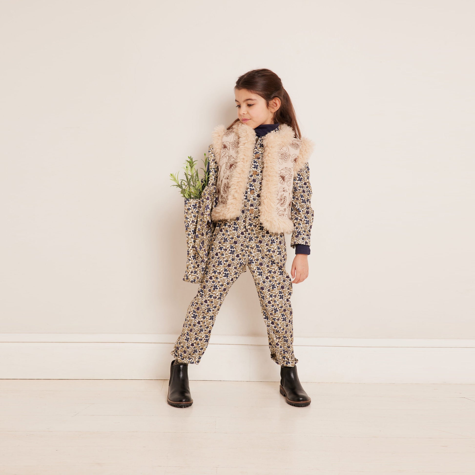 女童米色印花马甲
