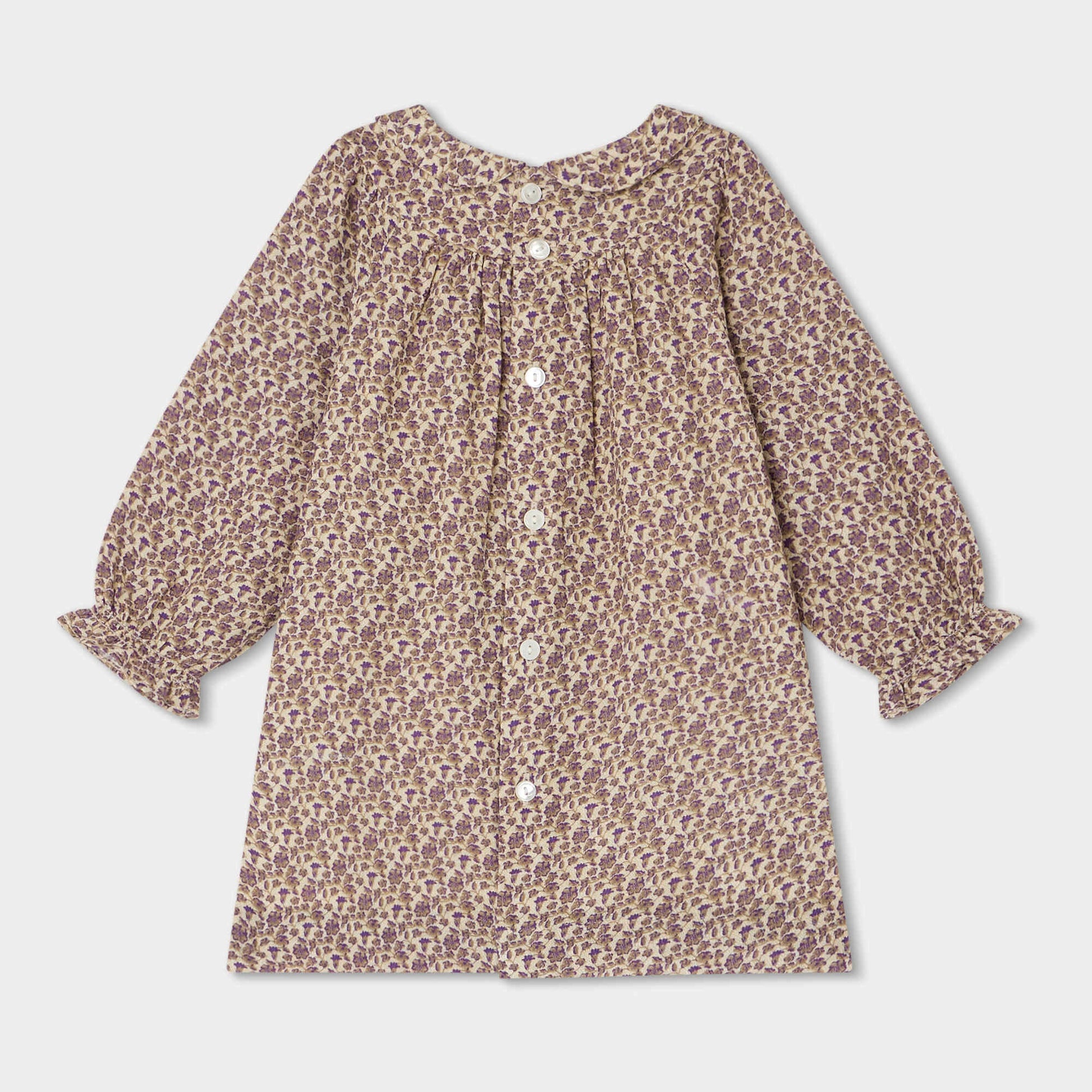 女婴丁香紫碎花棉连衣裙