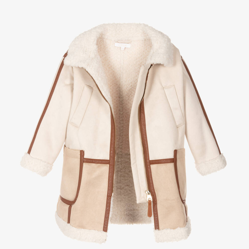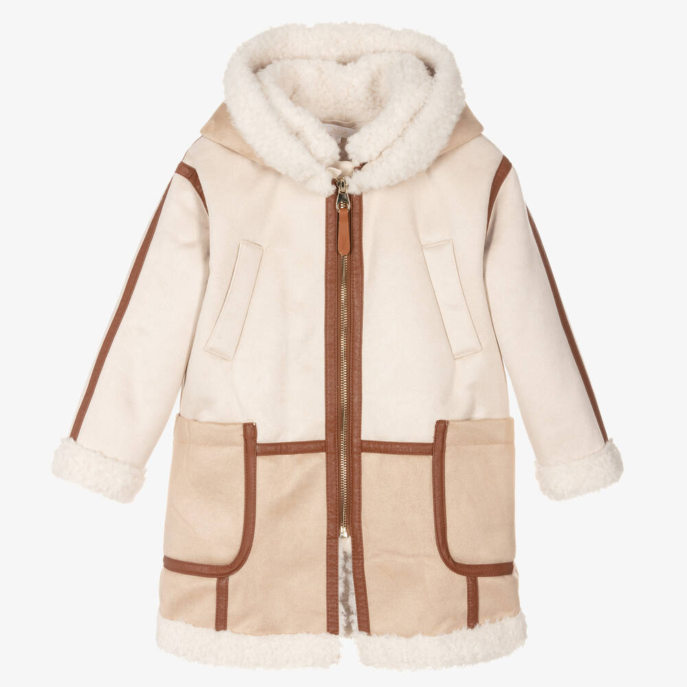 女童米色连帽外套