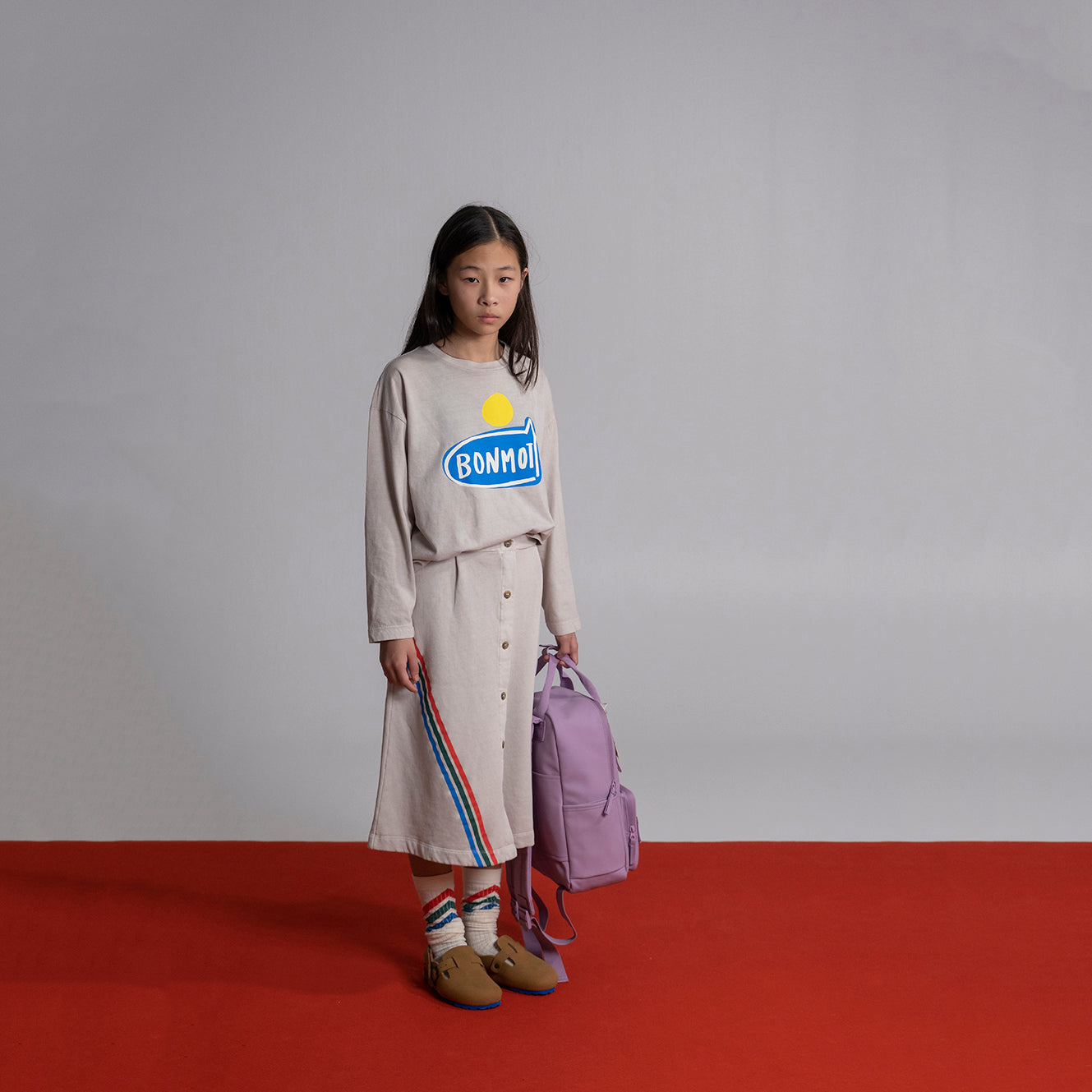 女童灰色Logo棉短裙