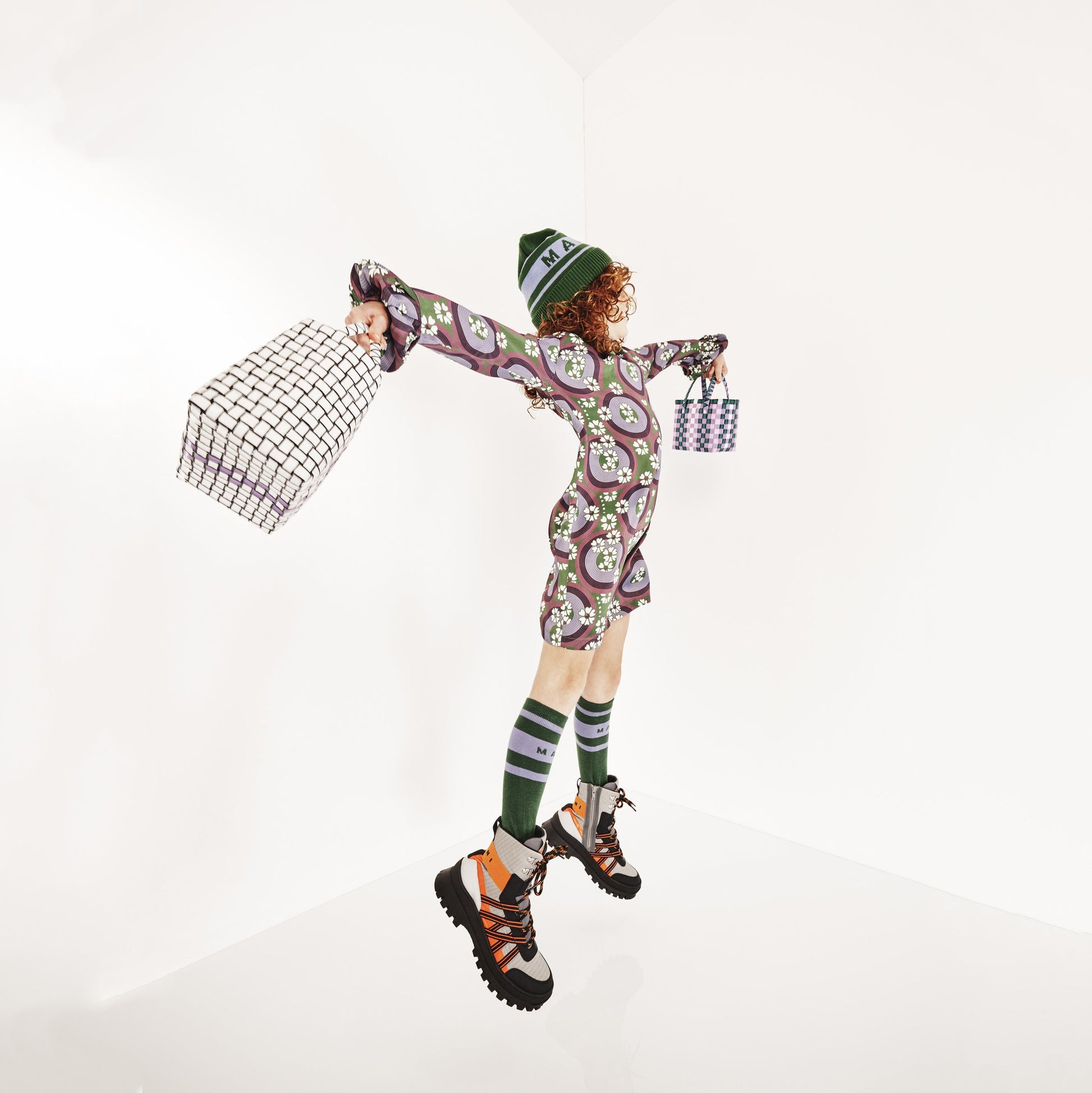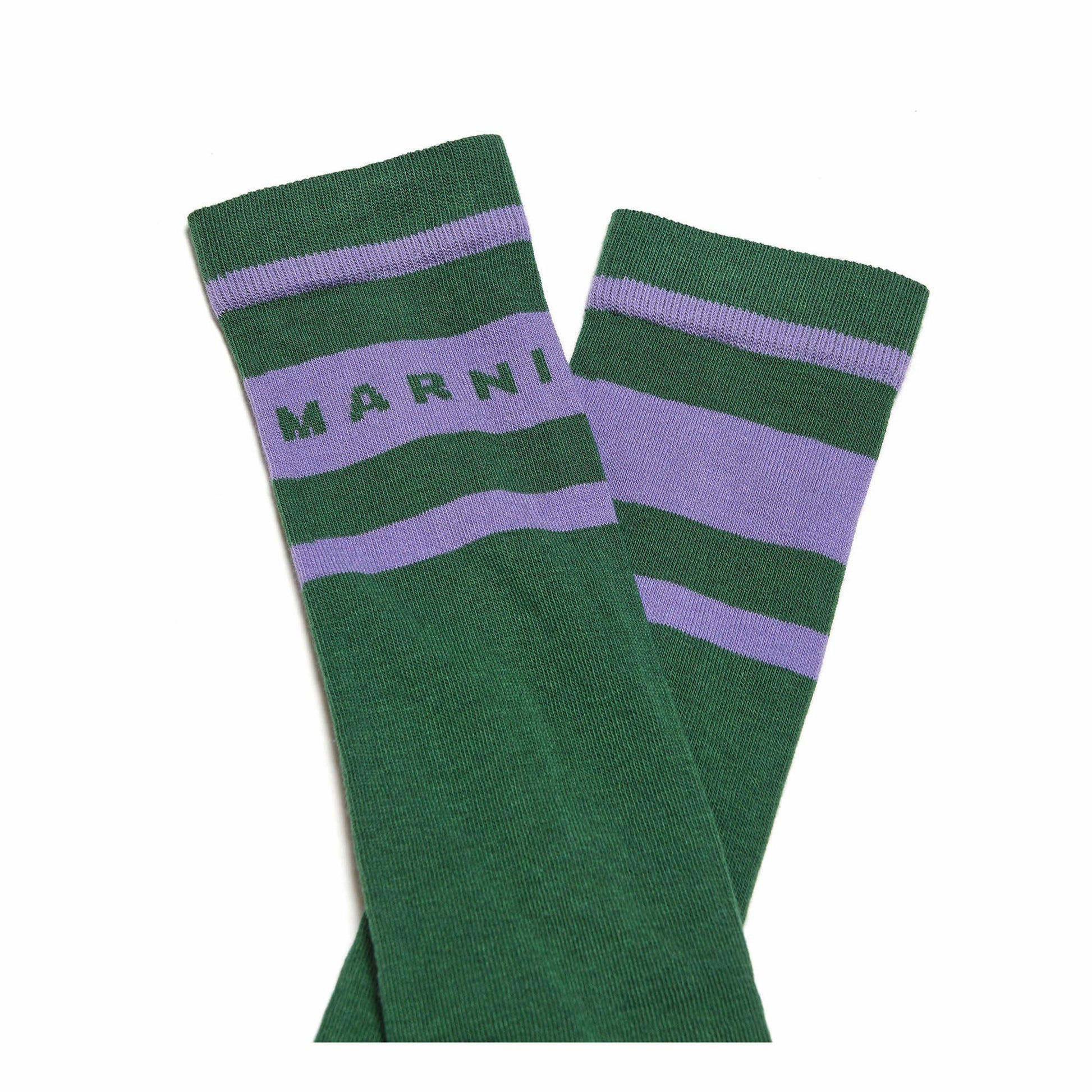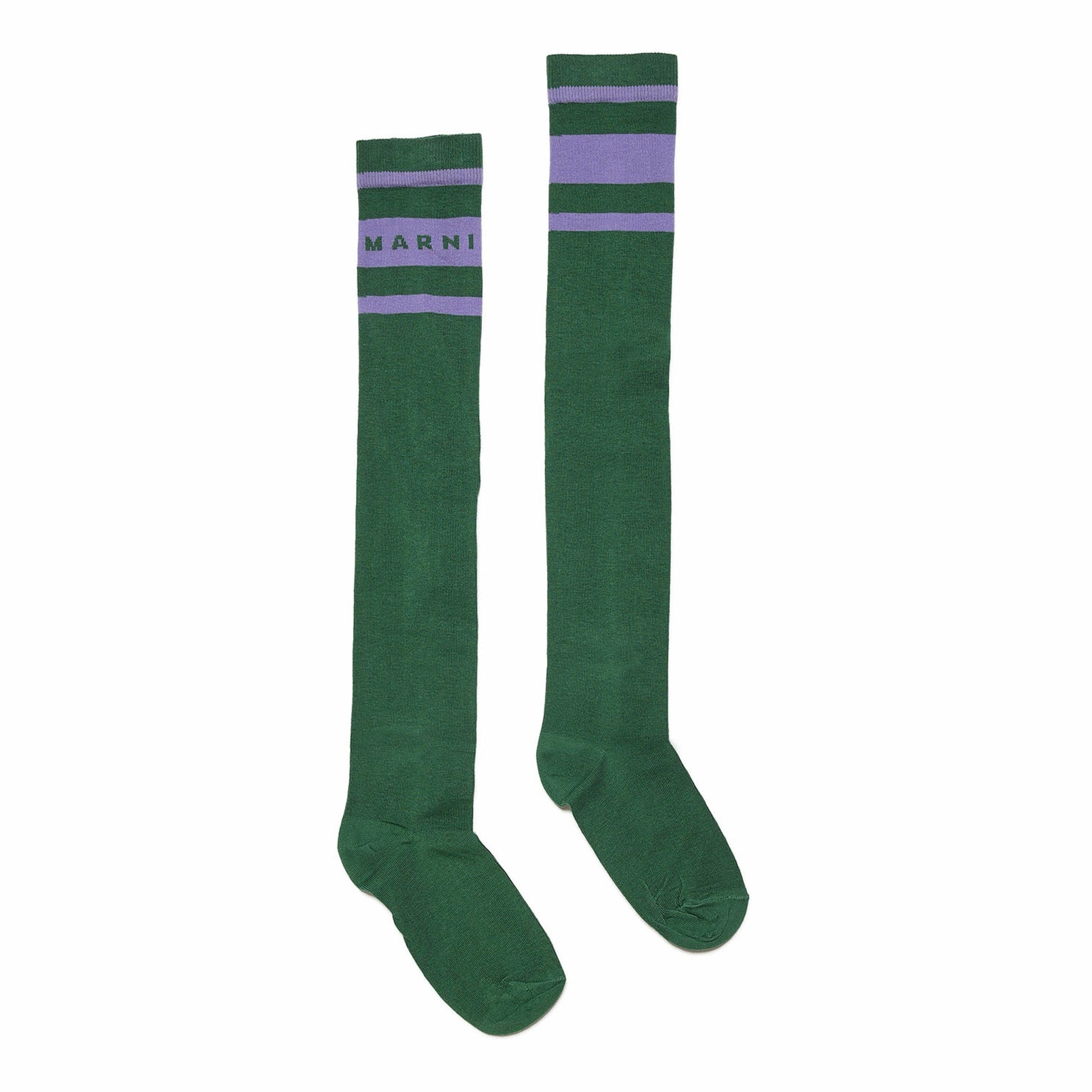 女童绿色Logo棉长袜