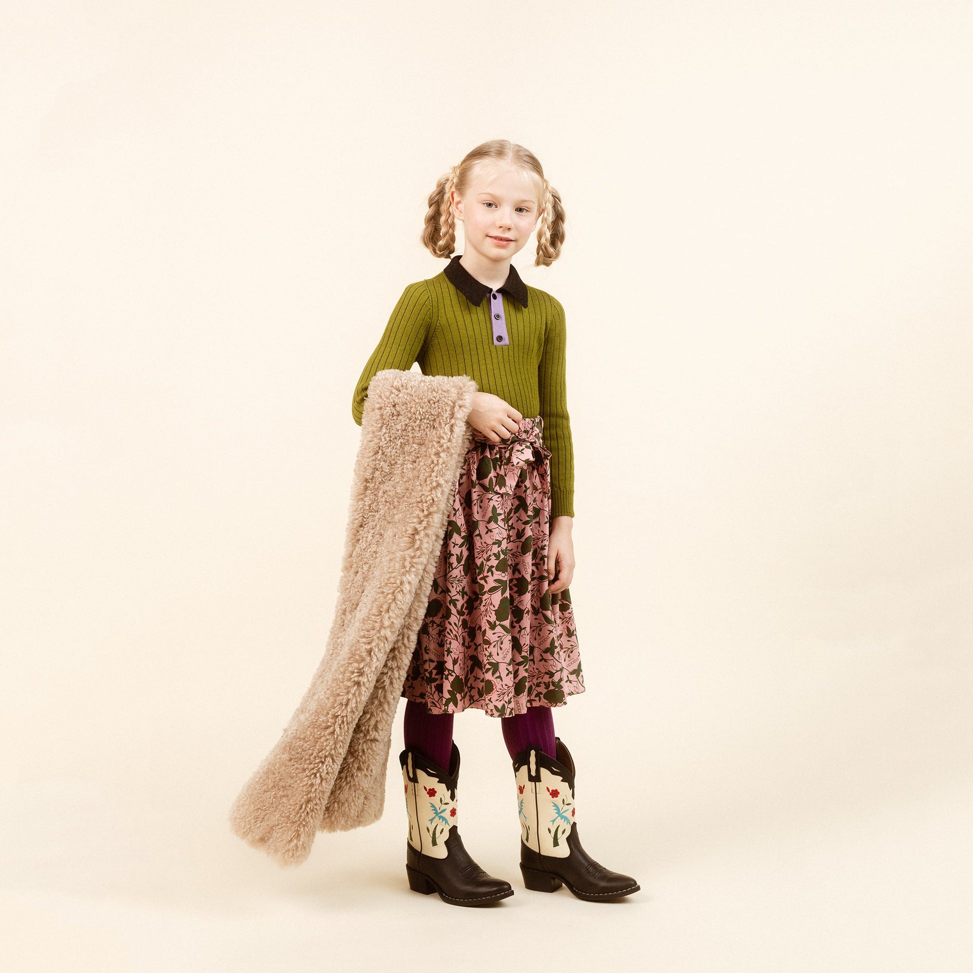 儿童橄榄绿羊毛毛衣