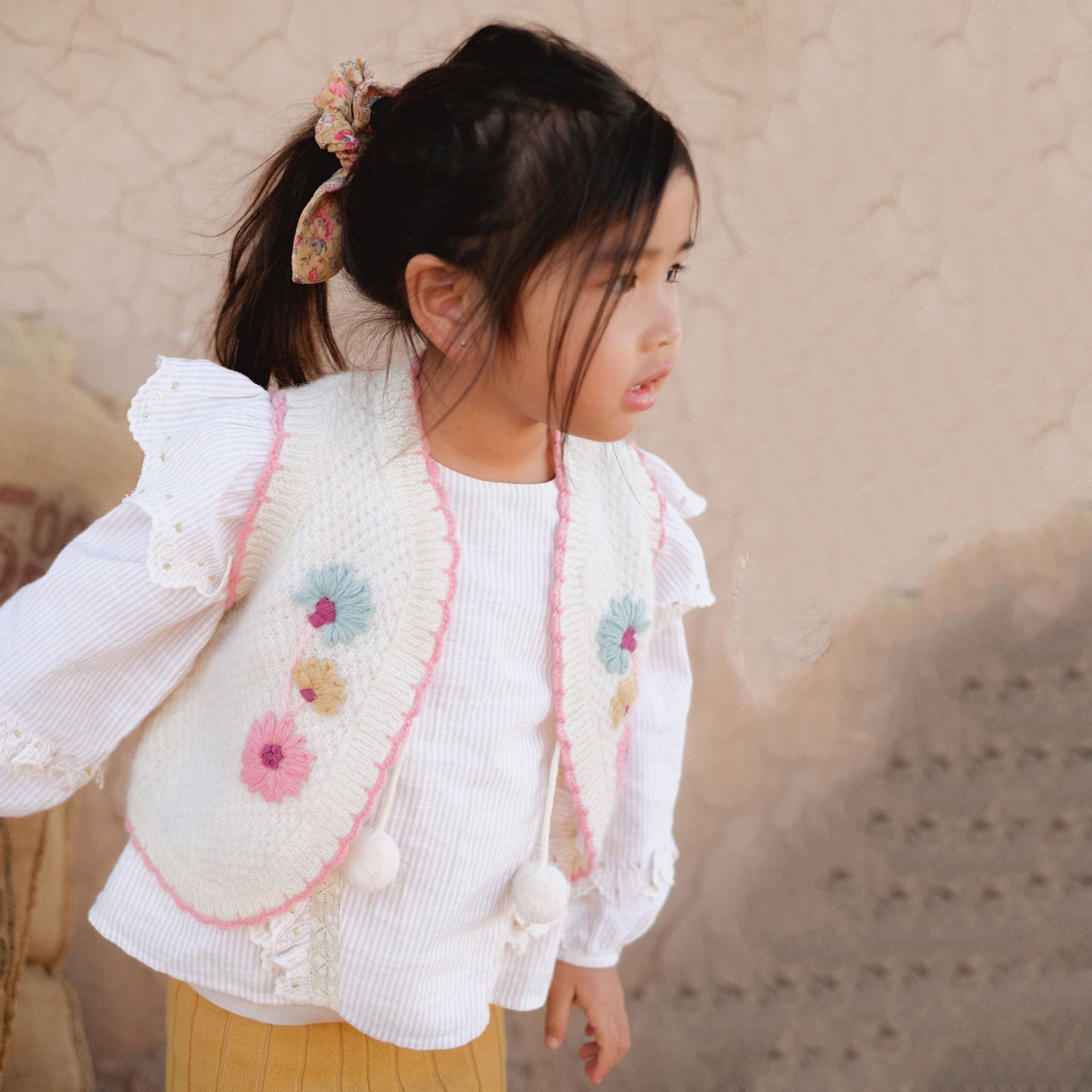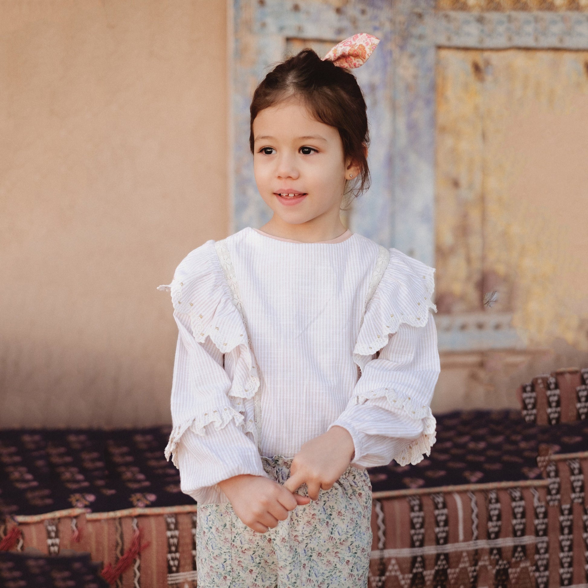 女童浅粉色条纹棉上衣