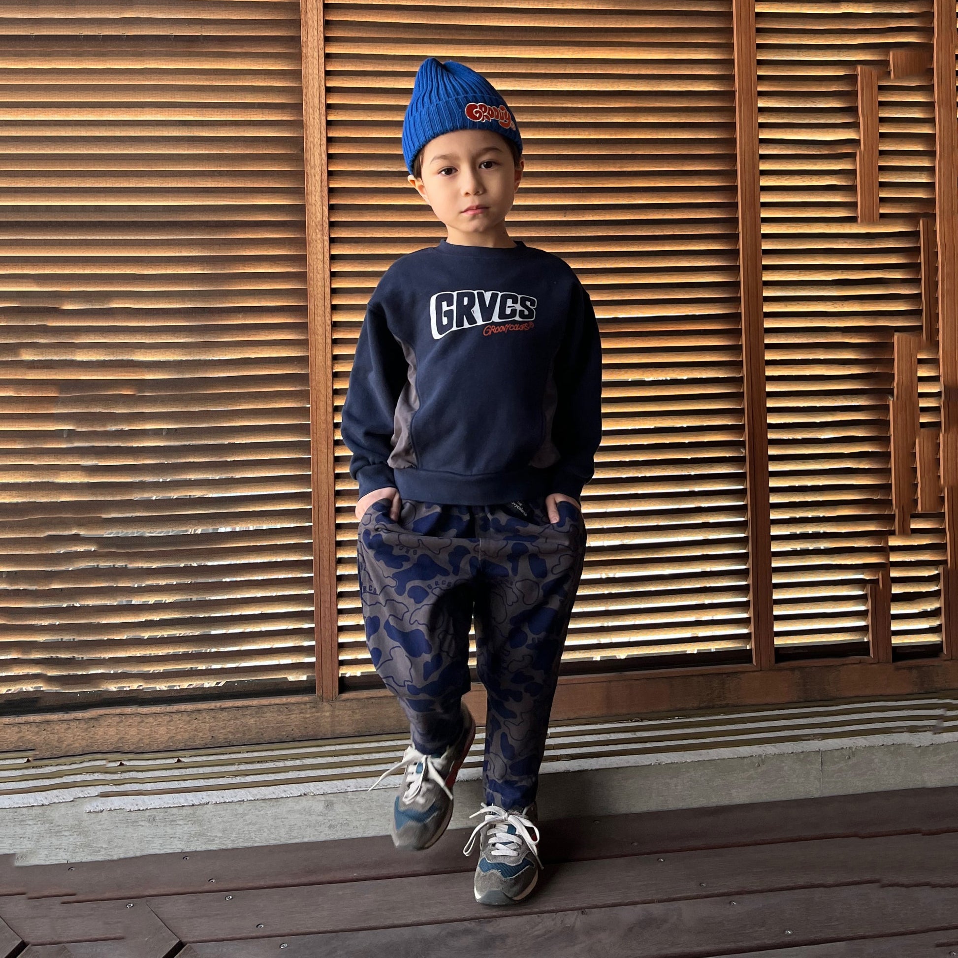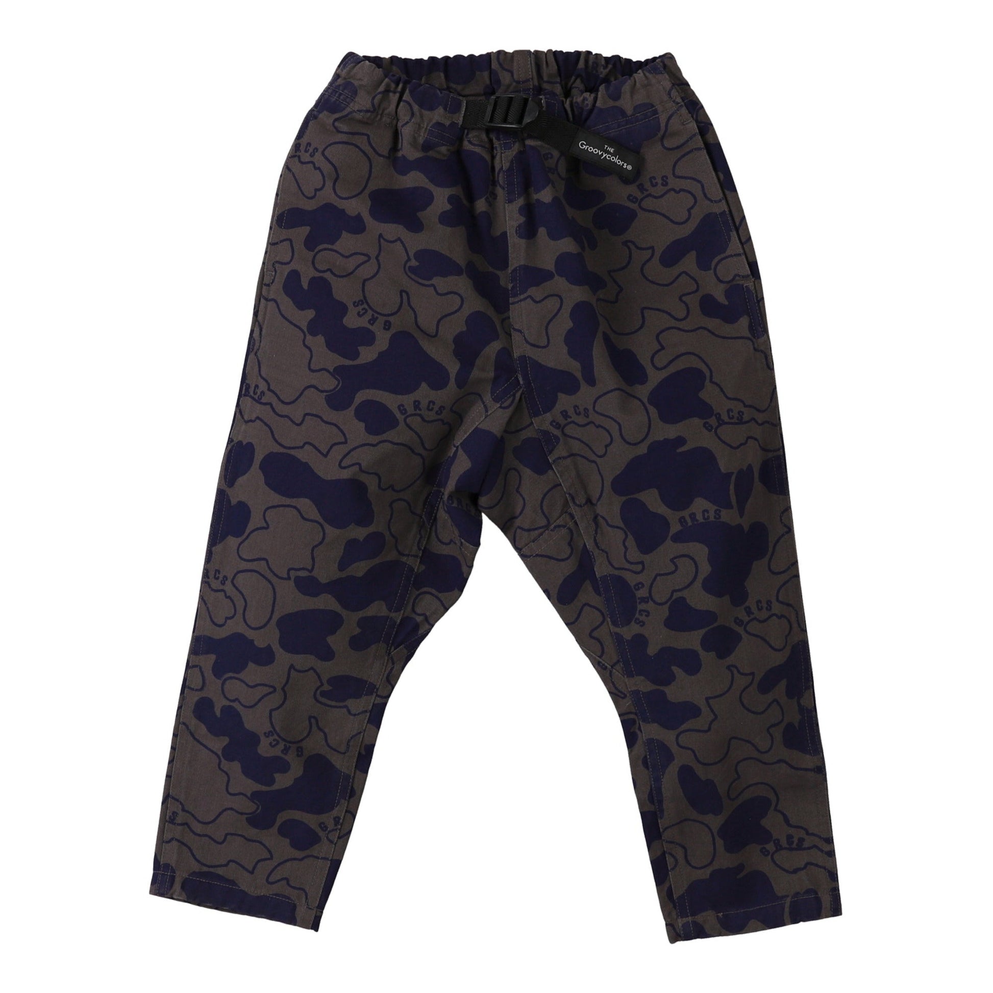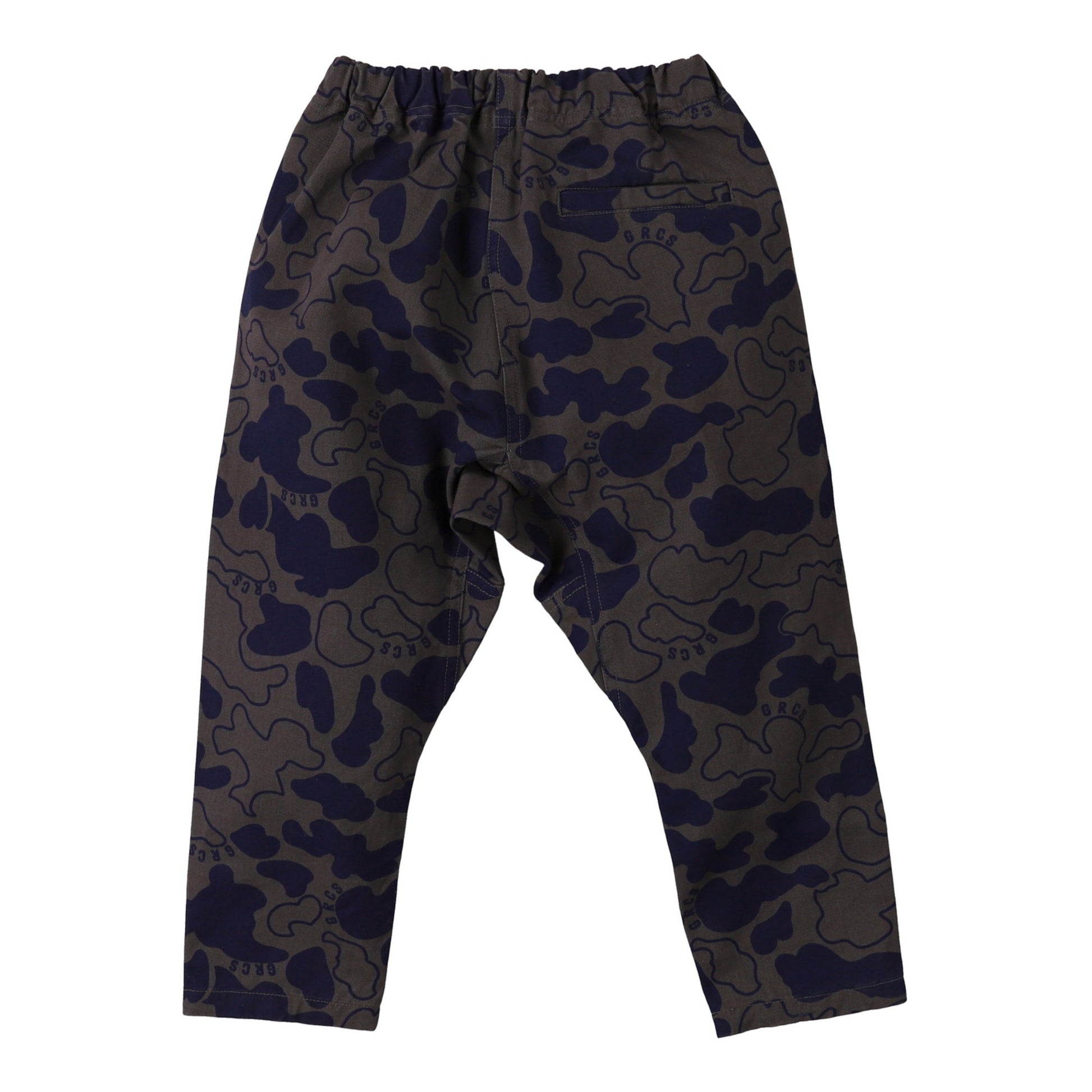 儿童军绿色印花棉长裤