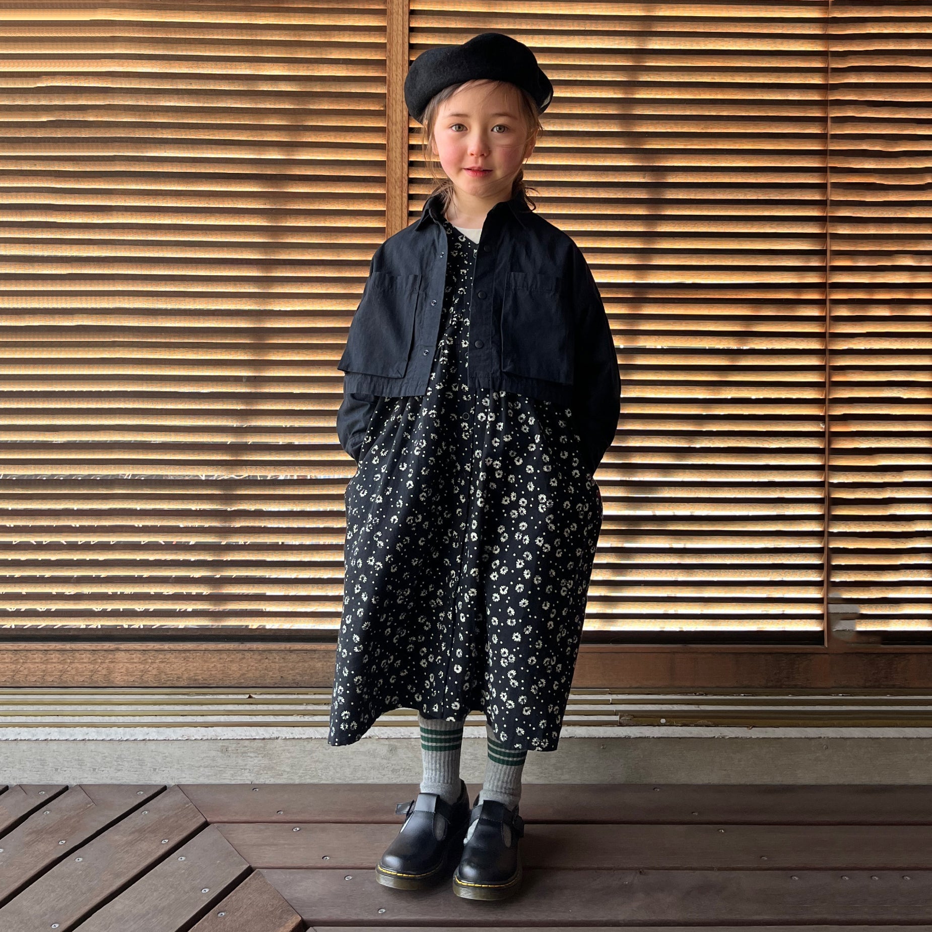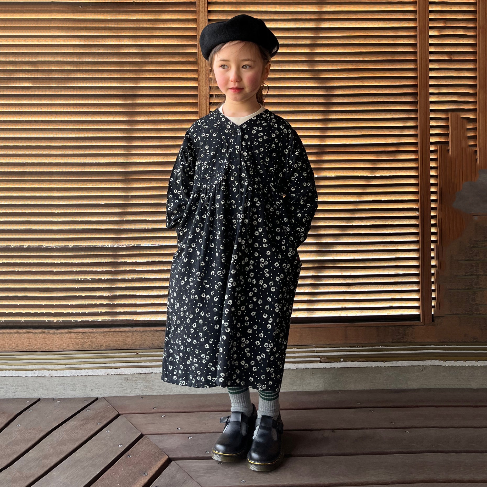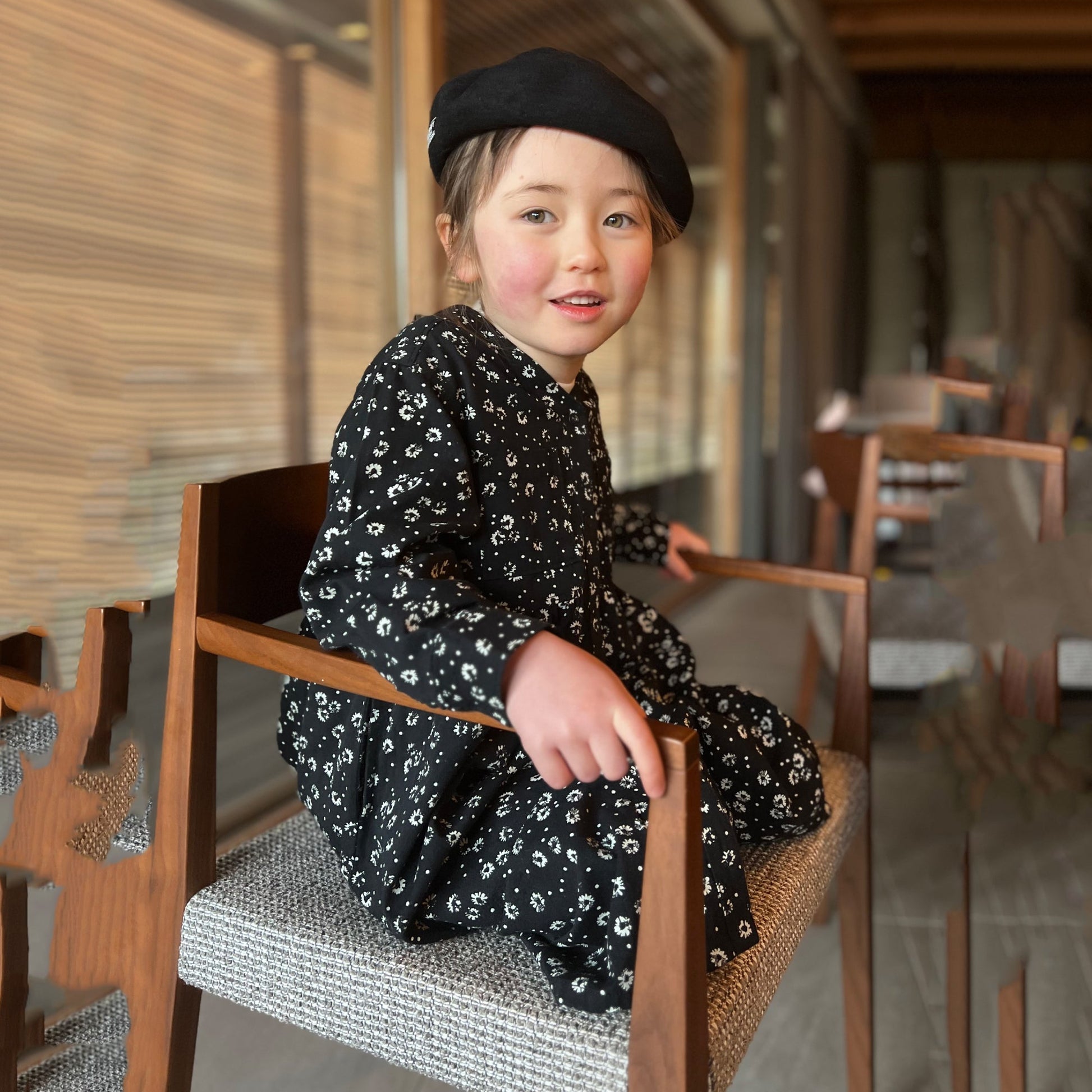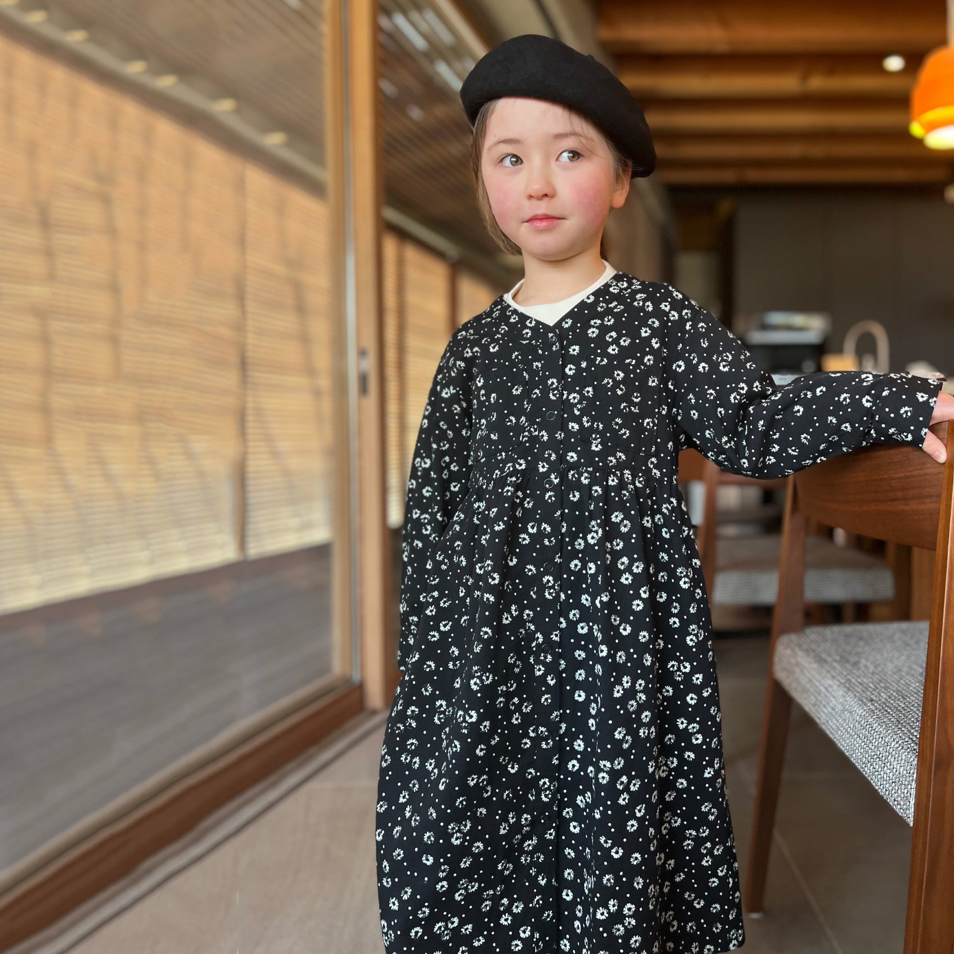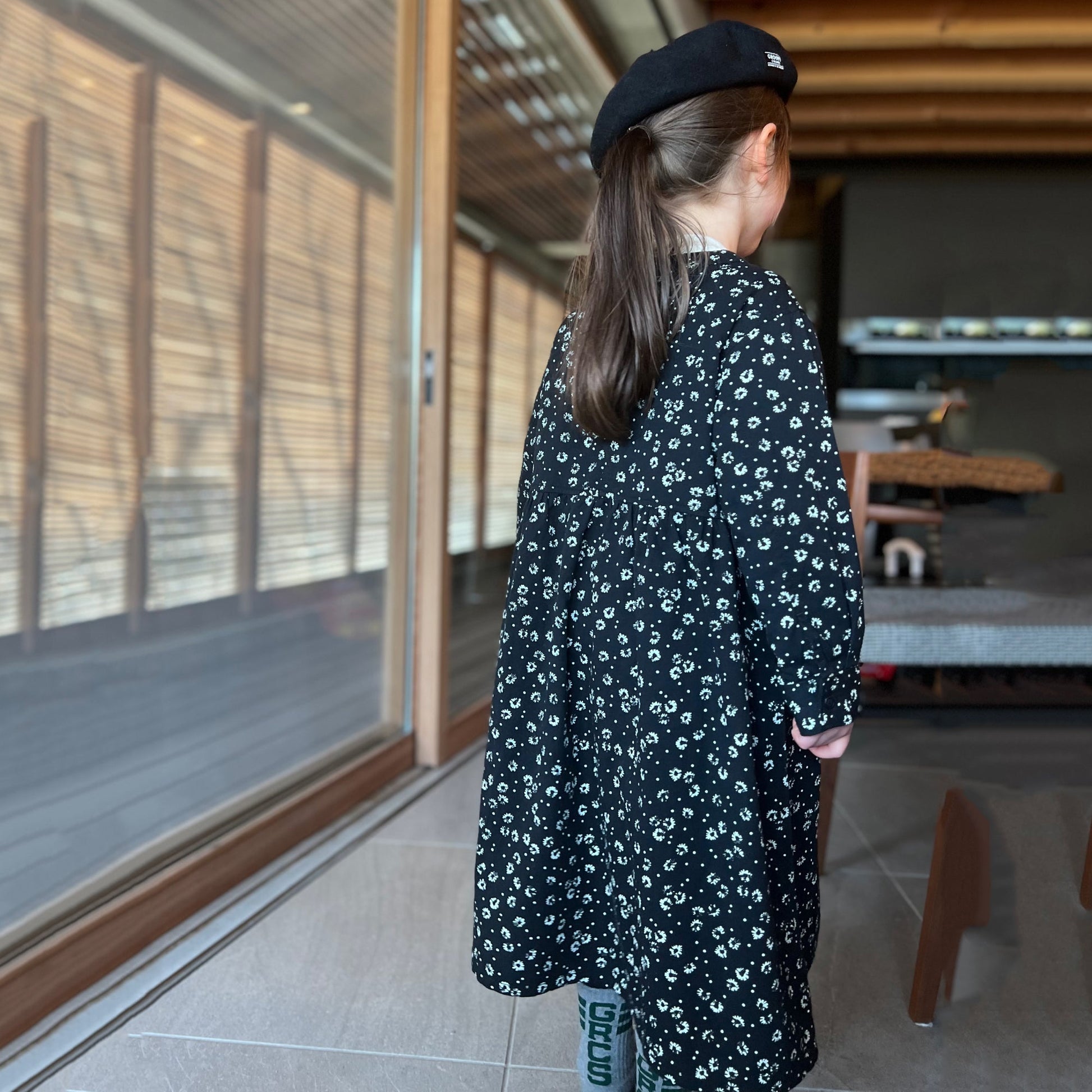 女童黑色碎花棉连衣裙