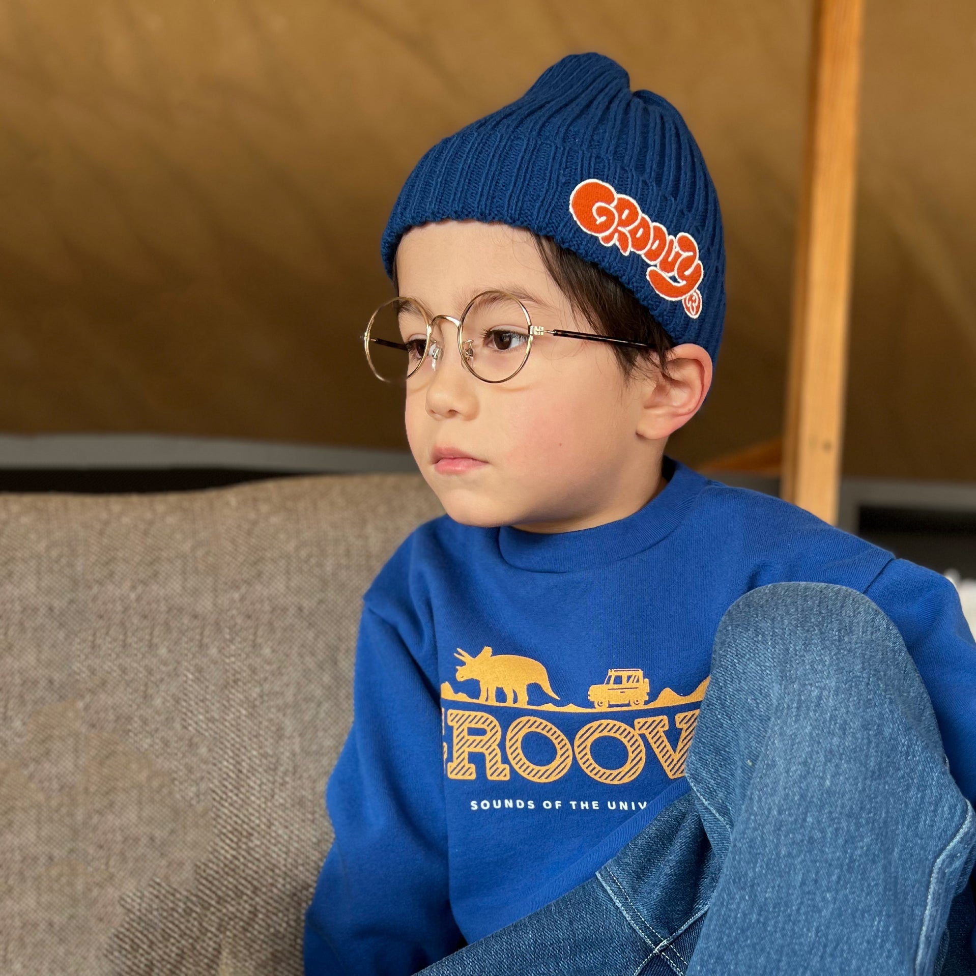 儿童蓝色Logo针织帽子