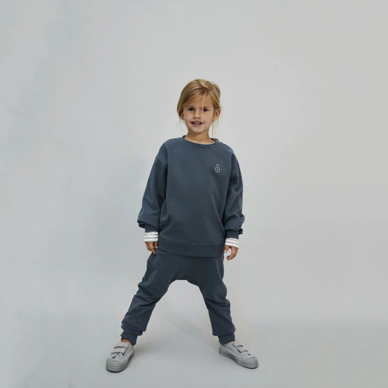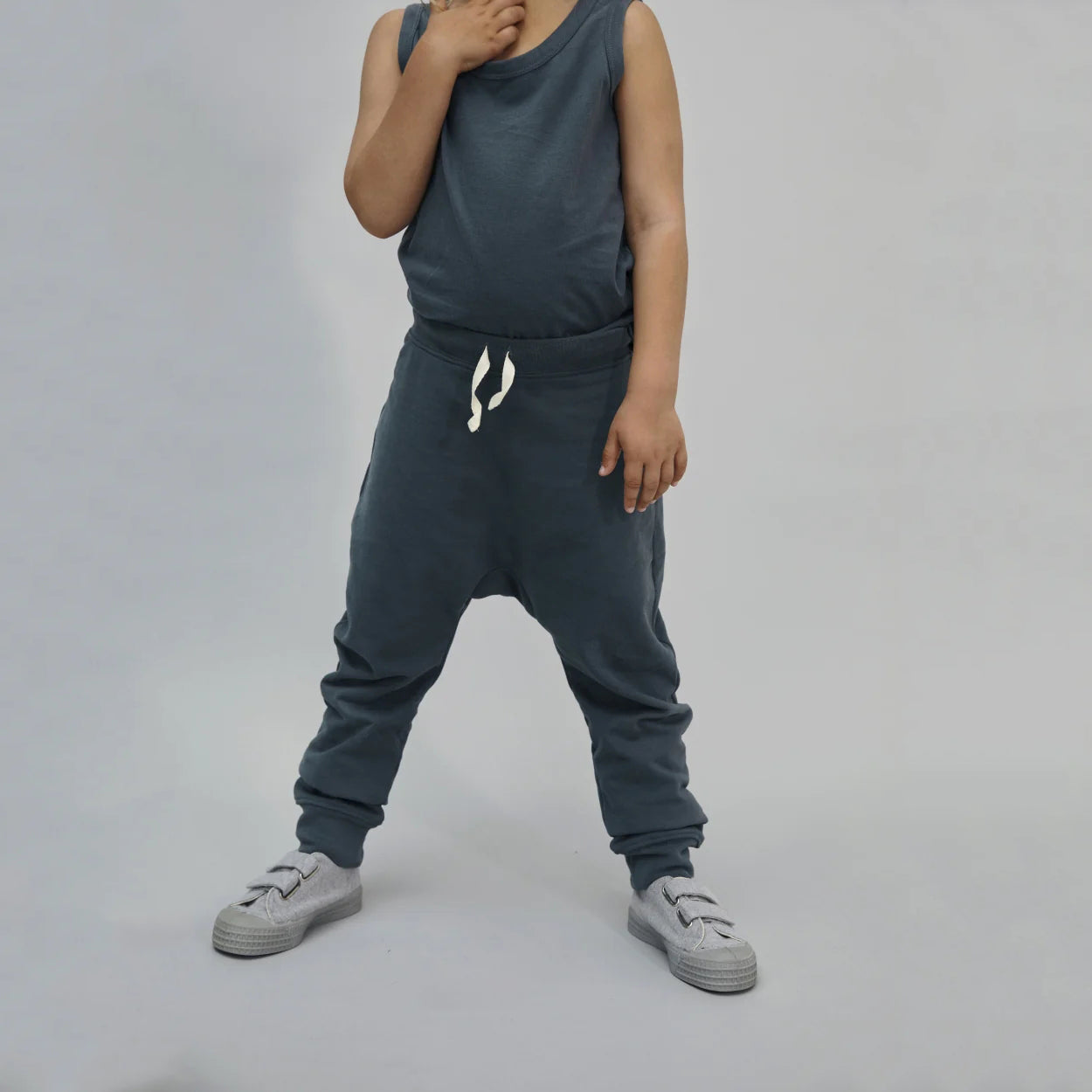 儿童蓝灰色棉长裤