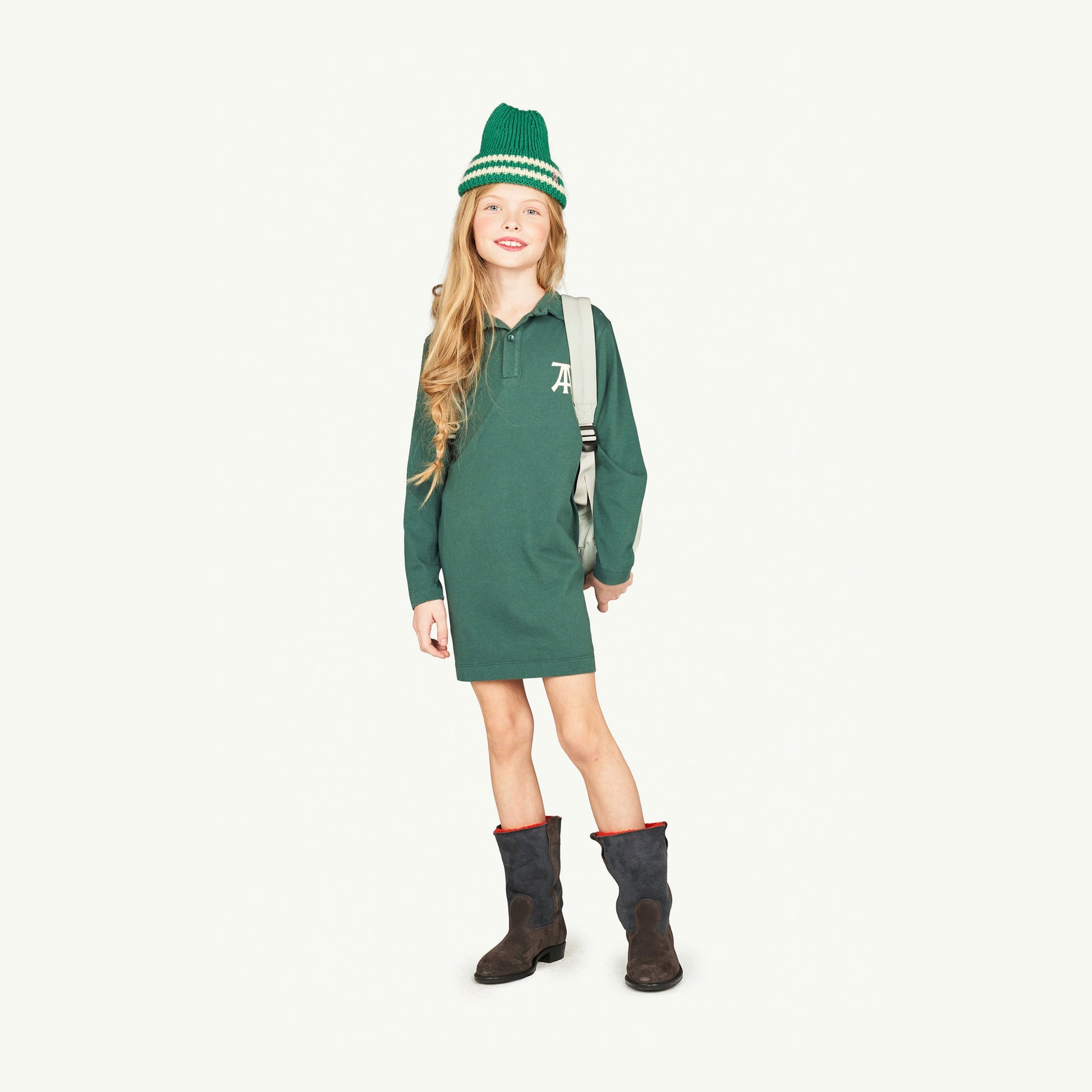 女童绿色Logo棉连衣裙