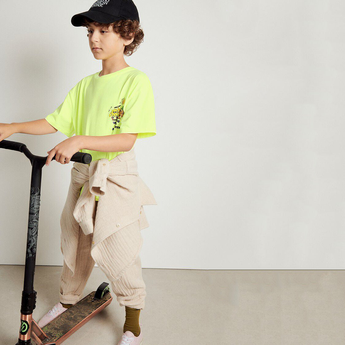 儿童荧光黄印花棉T恤
