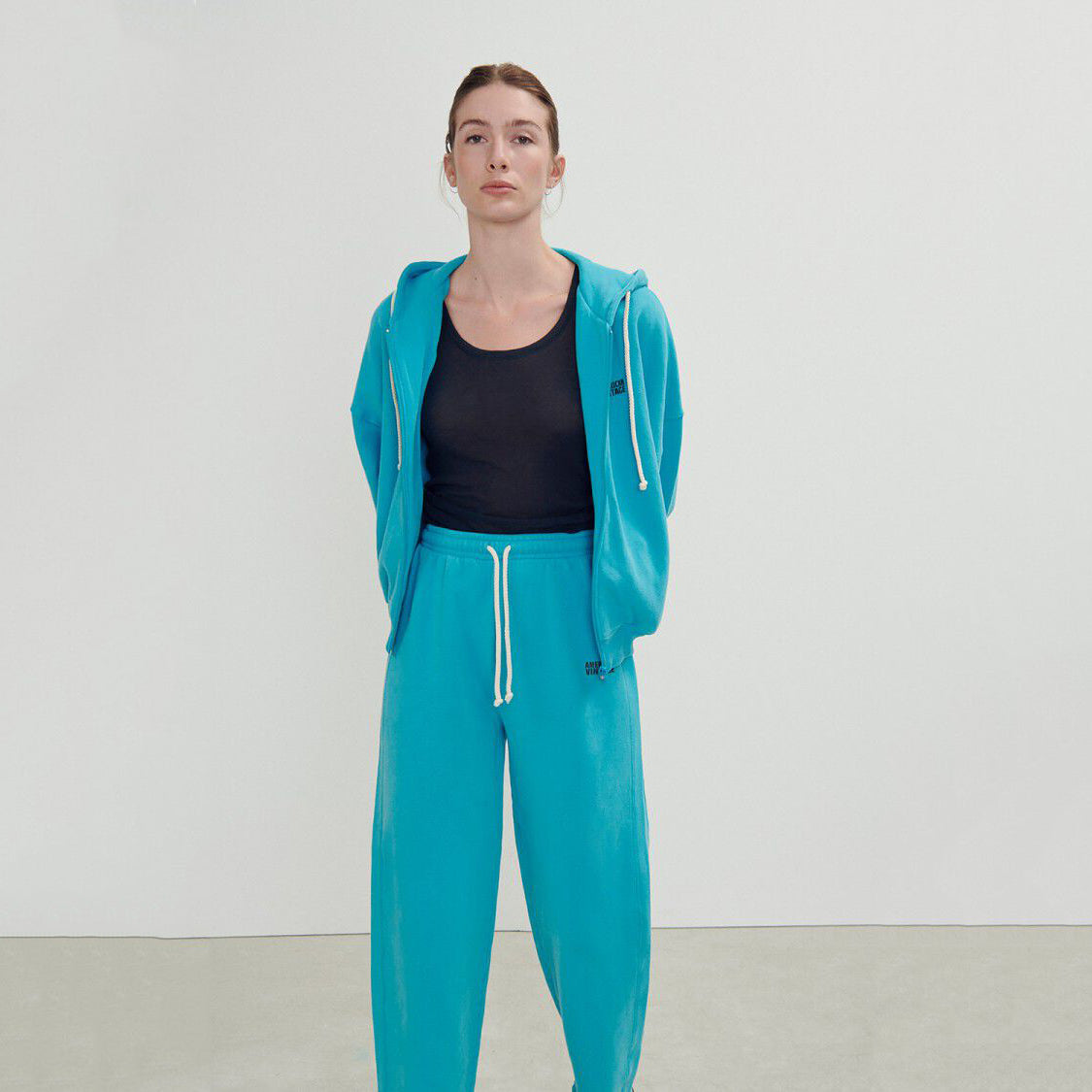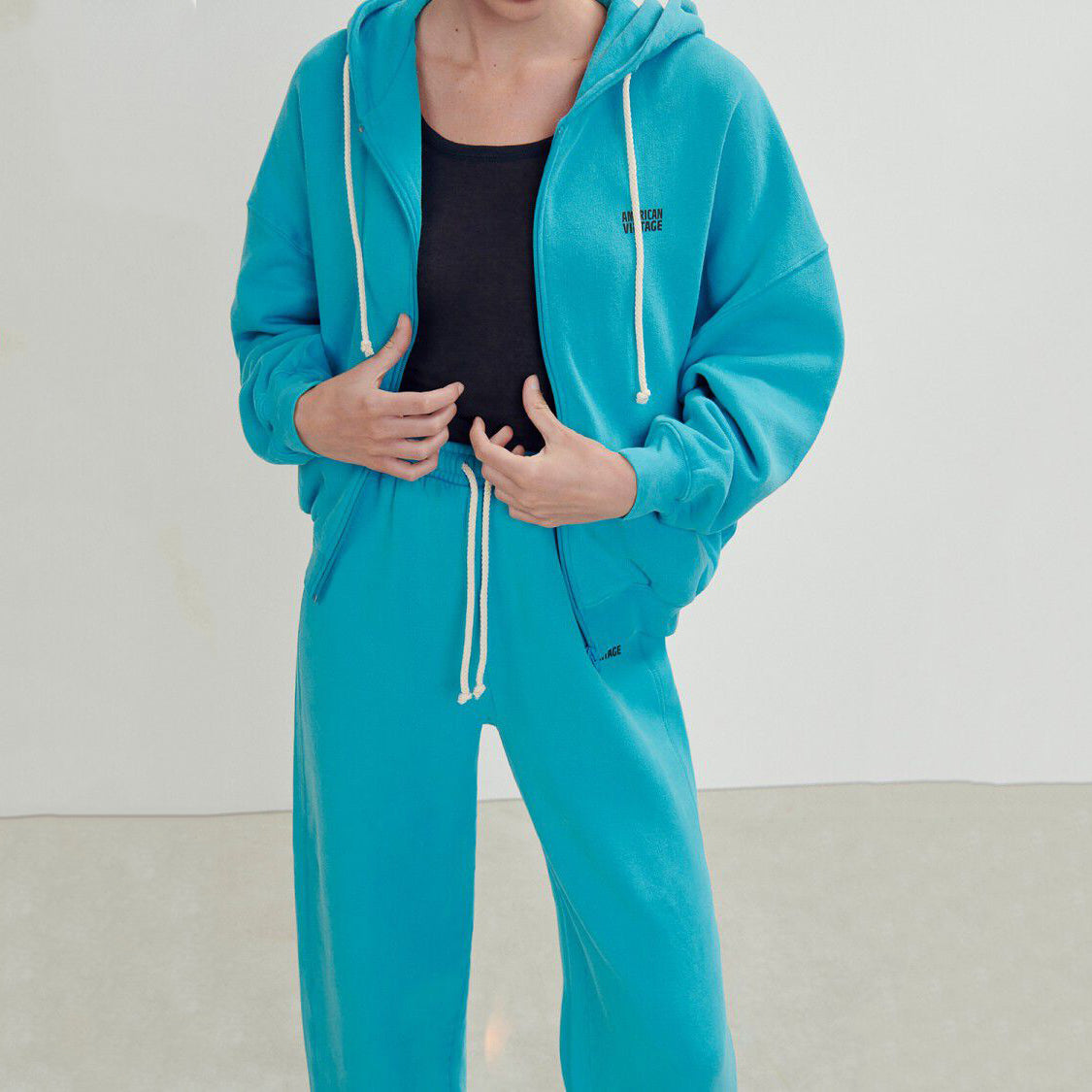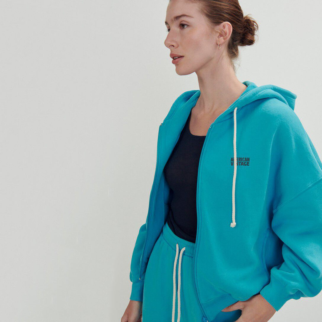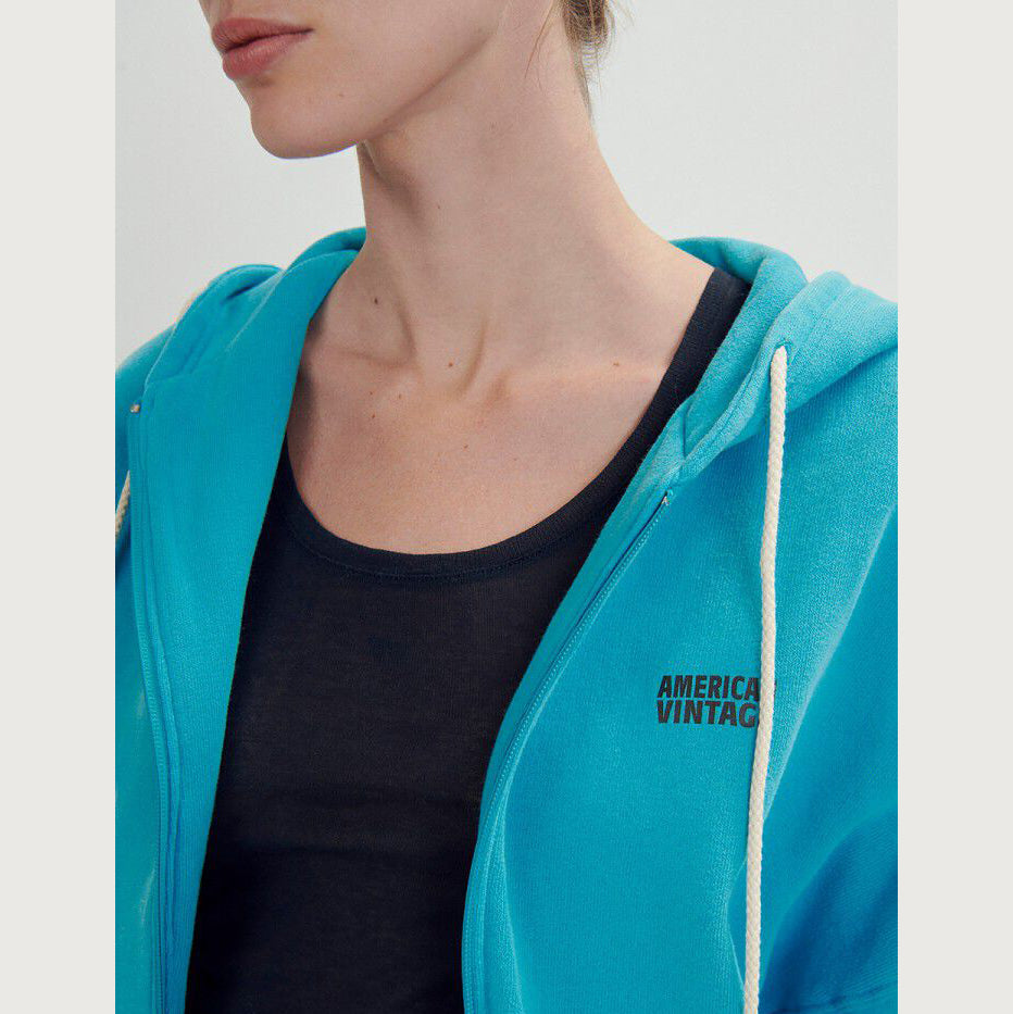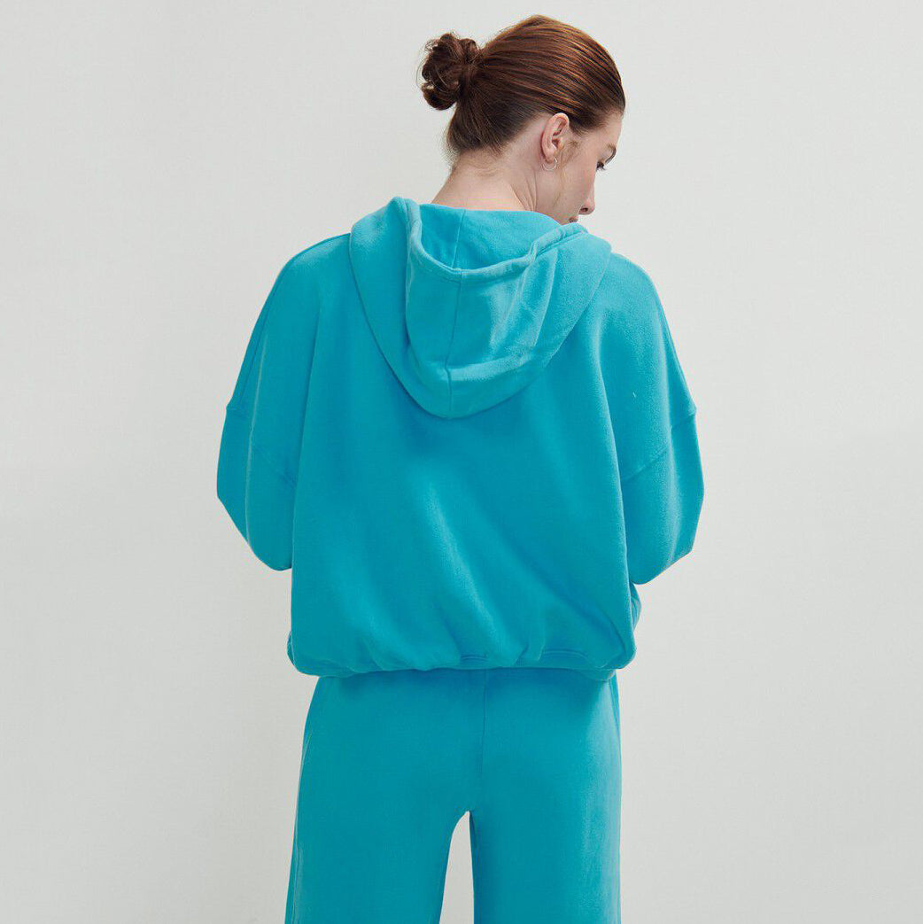 女士蓝色拉链连帽上衣