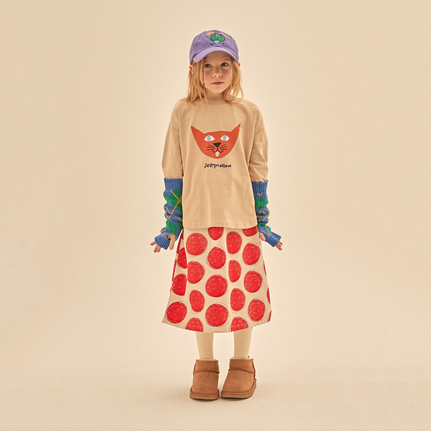 儿童米色印花棉T恤