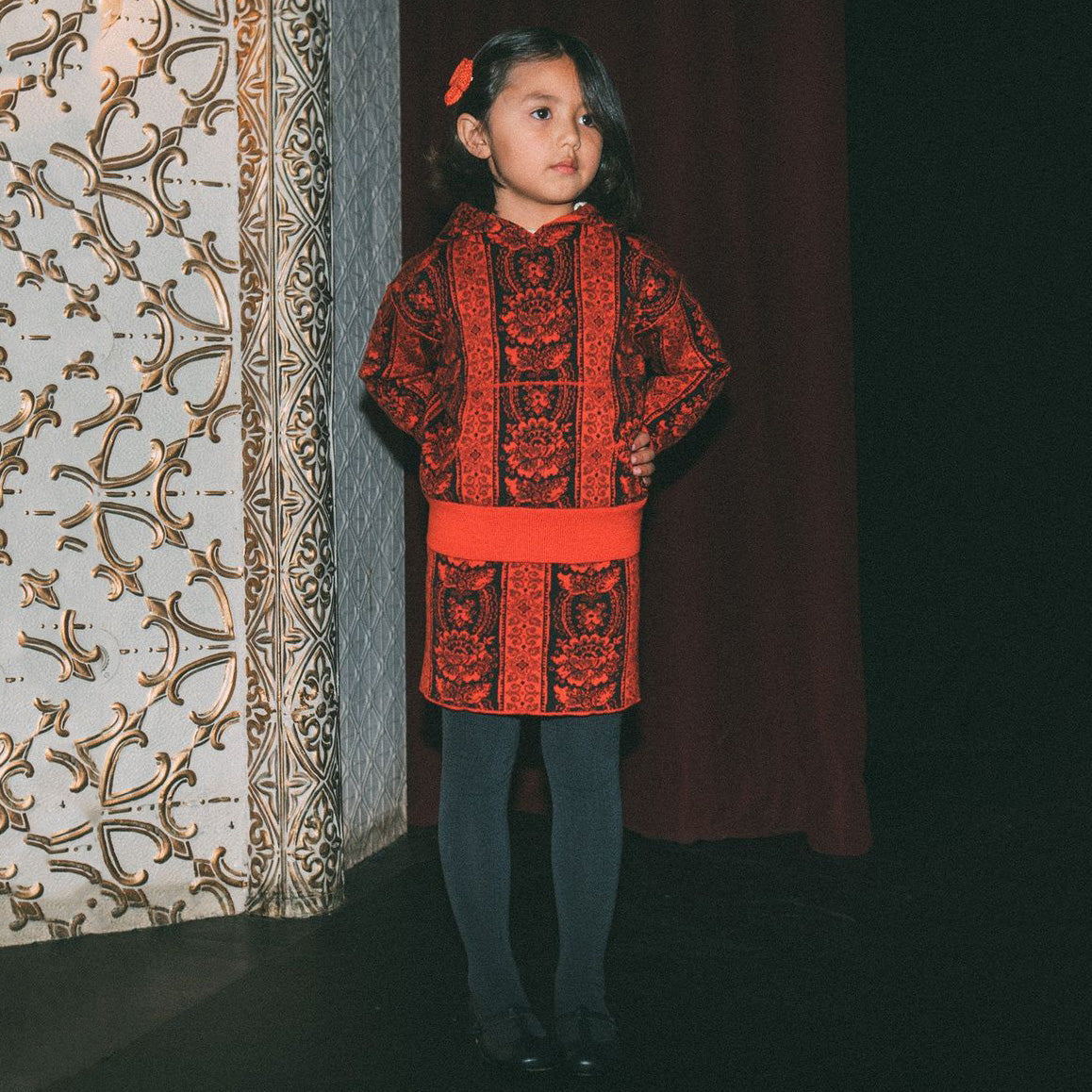 女童红色蝴蝶结发夹