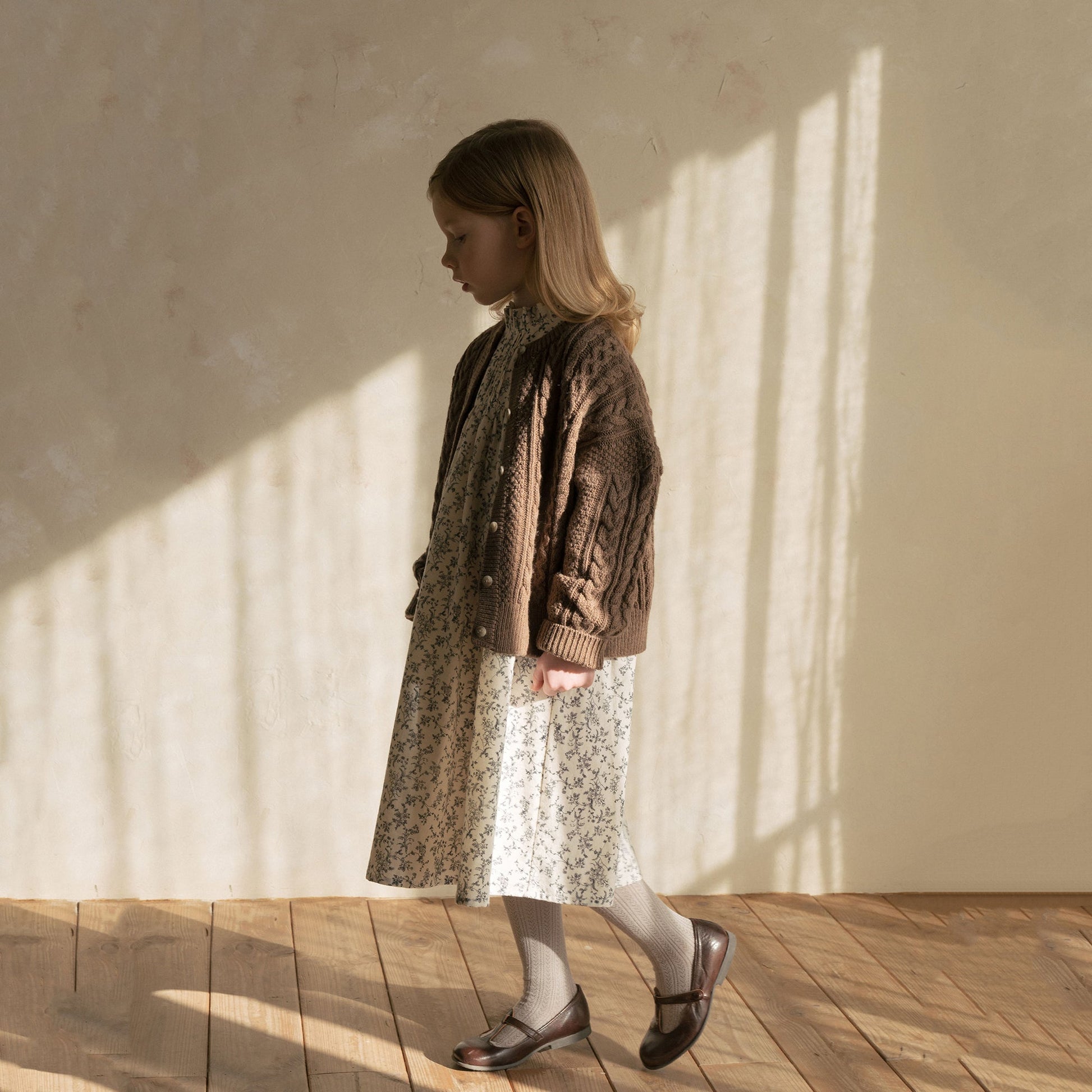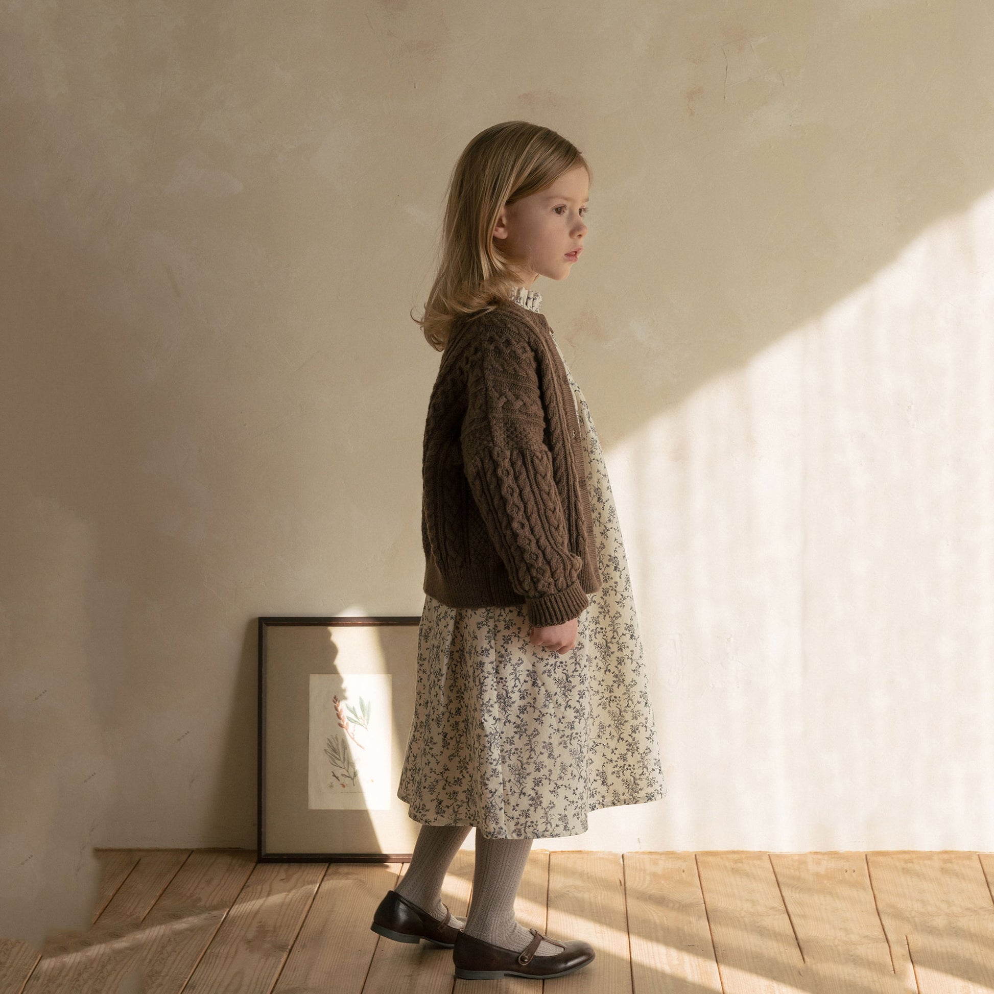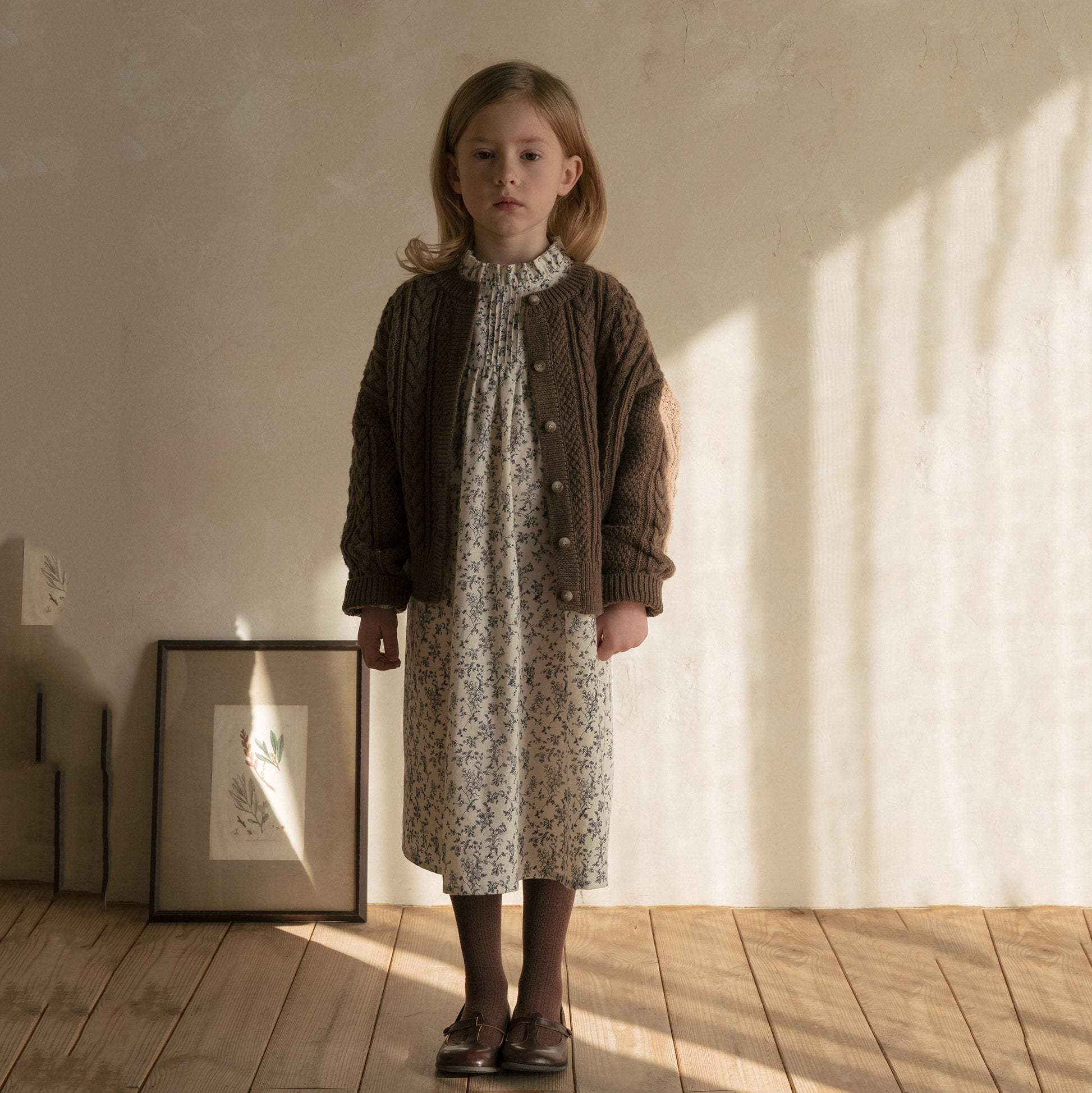 女童粉色花朵棉连衣裙